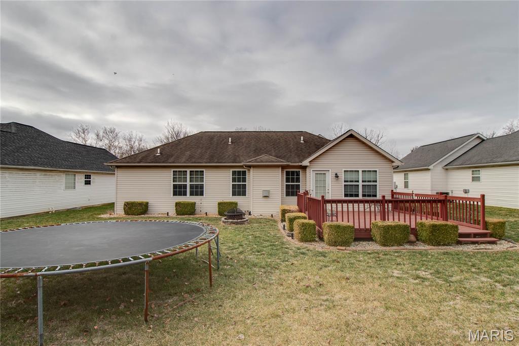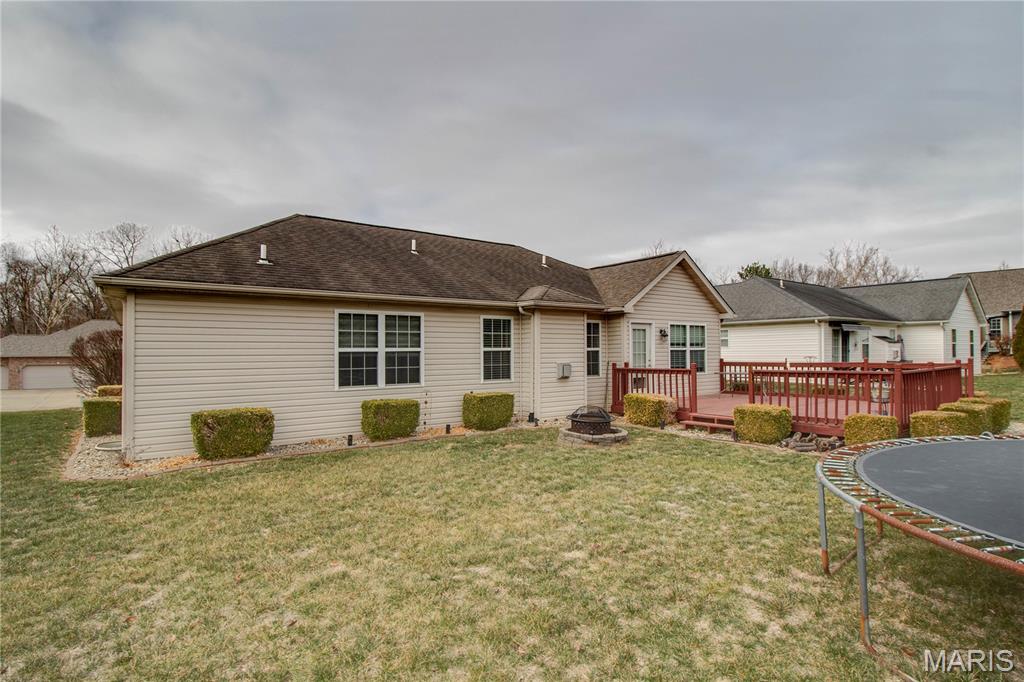 This inviting ranch-style home in the Savannah Trace subdivision offers classic brick curb appeal and a well-designed layout. A concrete driveway leads to a spacious 2-car attached garage (23x24), while the backyard provides a raised deck, perfect for relaxing or hosting friends. Inside, you’re welcomed by a bright, open living room with vaulted ceilings, hardwood floors, and a gas fireplace framed by large windows that bring in plenty of natural light. The adjoining dining room also features hardwood flooring and opens directly to the deck. Custom window blinds throughout the main level provide both privacy and light control. The kitchen is finished with hardwood floors and includes a breakfast bar, pantry, and a full appliance package: stove/oven, microwave, dishwasher, refrigerator, and disposal. A mudroom offers convenient access to the attached garage, and the main-floor laundry room includes a washer and dryer. The primary bedroom is located on the main level and features a generous walk-in closet and a private ensuite bath with double sinks, a whirlpool tub, and a separate shower. Two additional bedrooms and a full bathroom complete the main floor. Downstairs, the full unfinished lower level offers poured concrete walls, abundant open space, a sump pump, gas furnace, and electric water heater, providing excellent potential for future living space or storage. Schedule a showing to explore the space and possibilities this home offers, or join us for an open house on Sunday, January 18 from 12 to 2 PM.