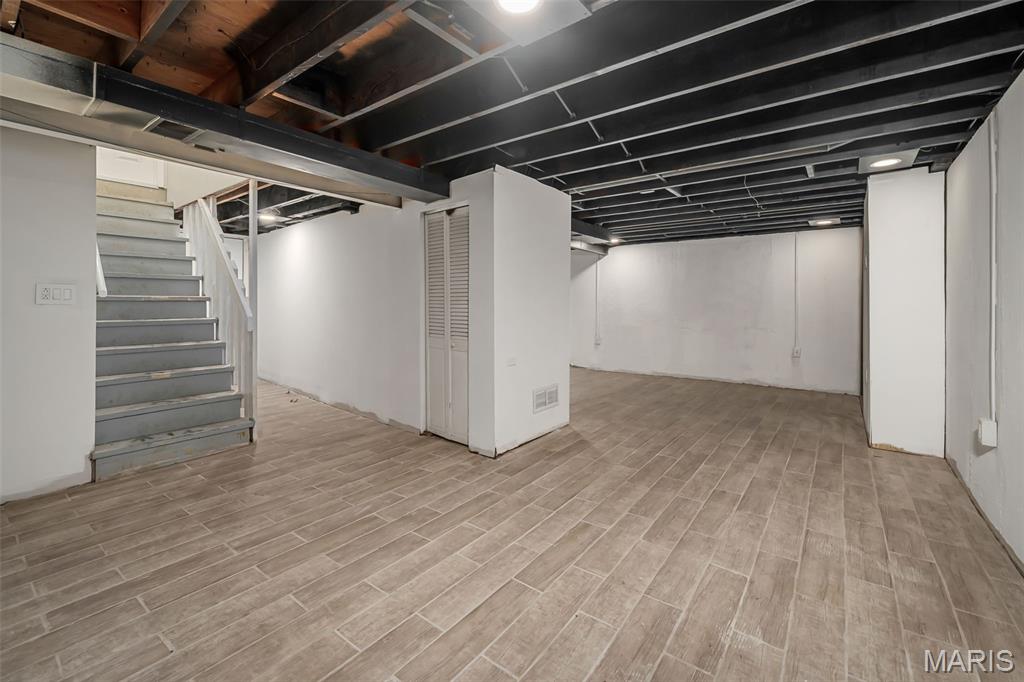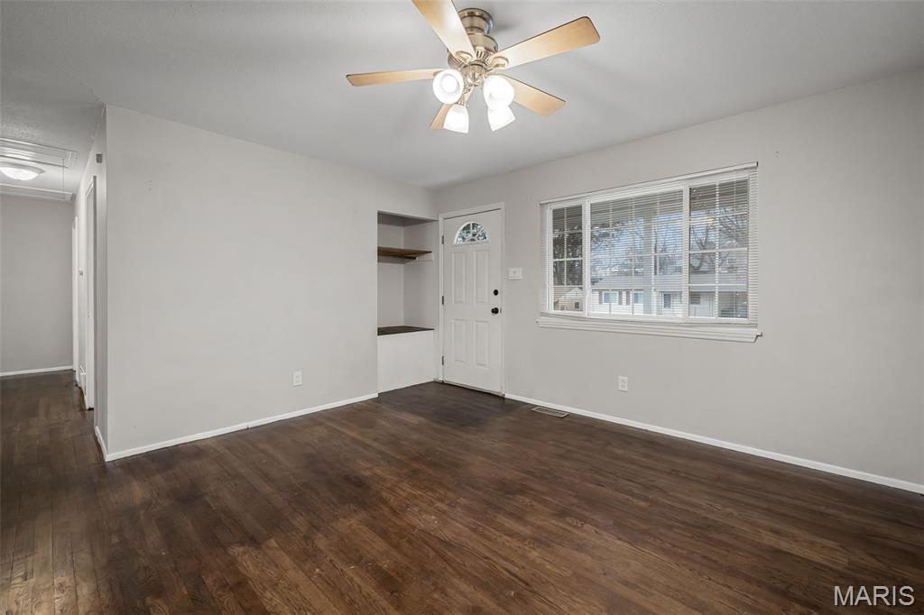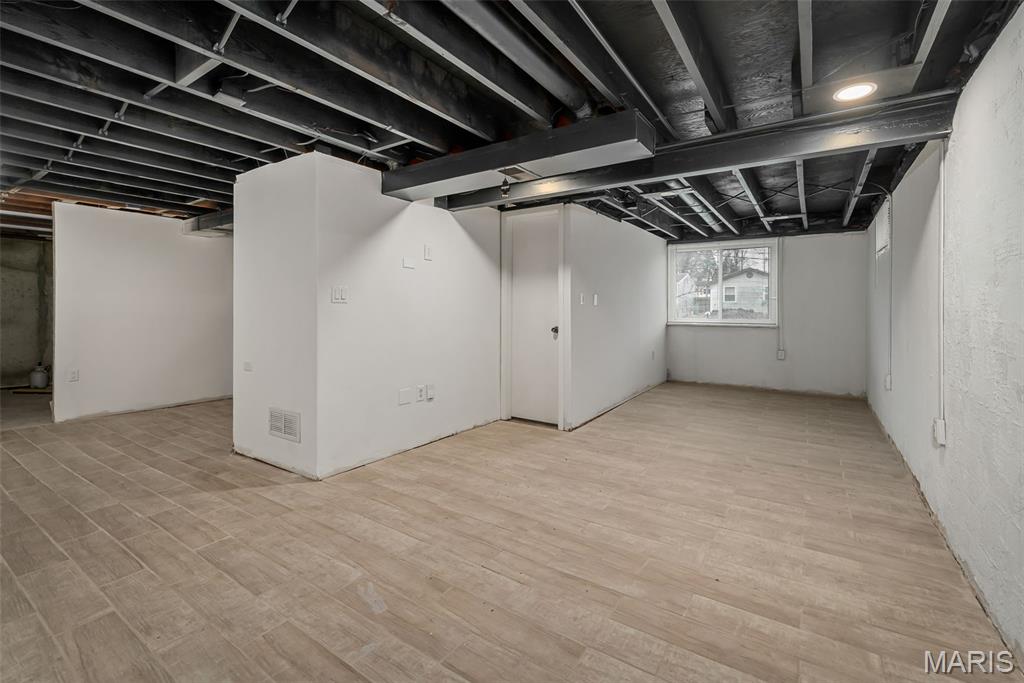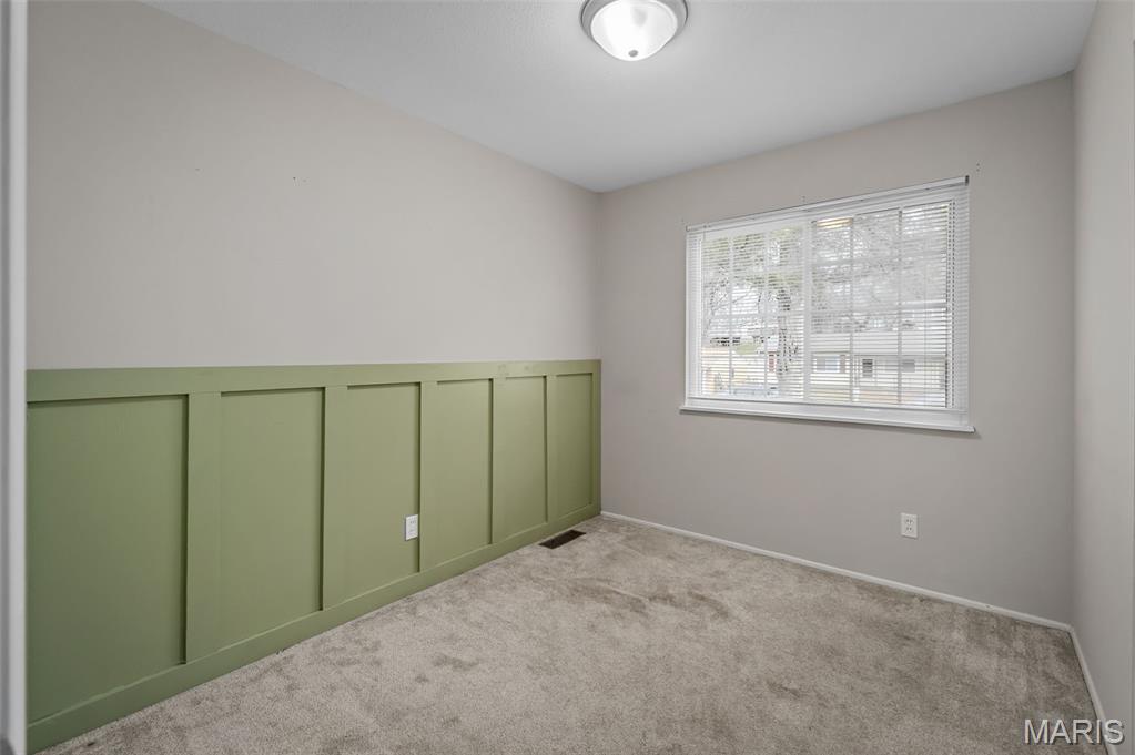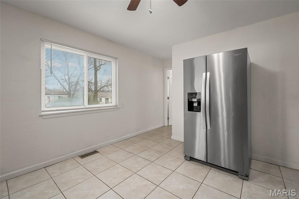 Move-in ready ranch home with updated kitchen and bath, located in a quiet, established neighborhood with easy access to Highways 270, 370, and 70. The home features a bright, open floor plan with fresh paint, updated six-panel doors, and three spacious bedrooms, perfect for families, home offices, or guest rooms. The updated kitchen includes stainless steel appliances, a gas range, included refrigerator, under-cabinet lighting, and tile flooring. A large window in the kitchen fills the space with natural light and provides a view of the fenced backyard. The bathroom has ceramic tile flooring and a modern vanity for a stylish, move-in-ready finish. The walkout lower level offers roughed-in plumbing for a future bathroom and an egress window, ideal for a recreation room, home gym, or additional living space. Outdoors, enjoy the fenced backyard and paver patio with a fire pit. Parking is easy with an oversized driveway and carport that can fit up to six vehicles. Additional features include a whole-house water filtration system and a security camera system for peace of mind. This ranch home combines style, convenience, and functionality, offering everything you need for modern living. Don’t miss your chance to call this beautifully maintained, move-in ready home your own!