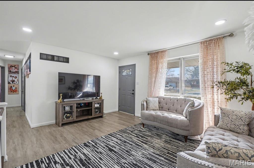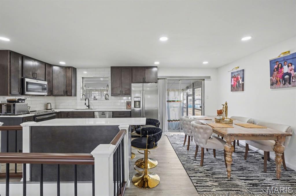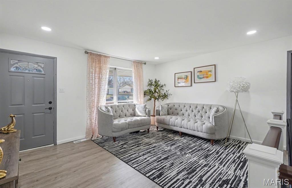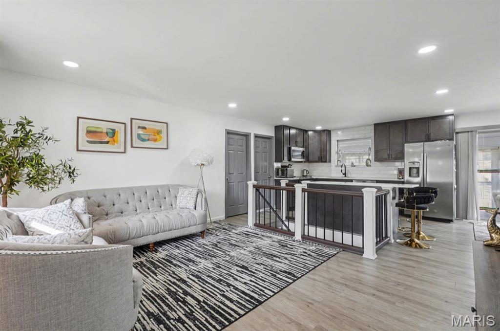 Spring is in the air, Bloom Here! This 4 bedroom 2 1/2 bath (all on main level) rare in community. Step into all updated open floor plan on LVP flooring on main level. Right away notice beautiful spindles in the balusters and railing to stairway downstairs. Living Rm, Kitchen, & Dining all open with recessed lighting. All updated kitchen, 42" gray cabinets, 4"x12" large white subway tile backsplash, matte black hardware & large faucet. Beautiful veining in the Quartz countertop, sink over window, stainless steel appliances, built in microwave, and very large island. Primary has ceiling fan and recessed light, attached bath has spacious walk in shower (subway tile & hexagon floor tile), newer light fixture, big vanity cabinet. Bedroom 2 has 1/2 bath attached. Beds 3 and 4 have full hall bath which has large soaking tub, subway tile and ceramic floor tile. Lower has Family Rm, Office, Full bath. Vinyl floor greats you in basement and recessed lighting, sellers are leaving a fridge in basement. Office and full bath in basement, bath has updated ceramic tile floor, shower with penny round base. Space does not end there. Off of dining, head out to sunroom that's over 9.5'X18.5' in size. Ceiling fan helps with using the space longer. Backyard entertainment can begin with firepit, level and fully fenced. Nov '25 New Roof and gutters. Updated electrical panel happening before closing. Can't beat all this, Fresh Start & Fresh Price. Make an appointment today to view This Home!