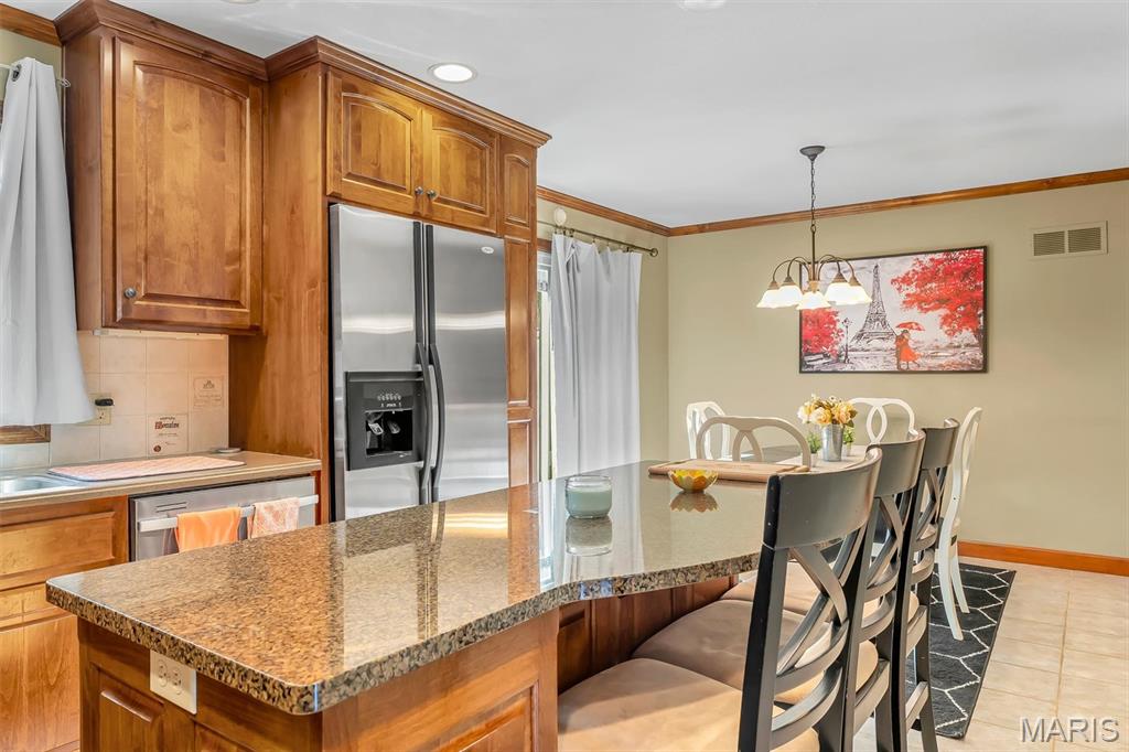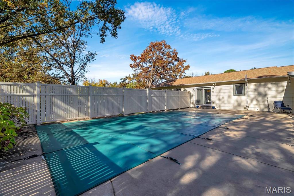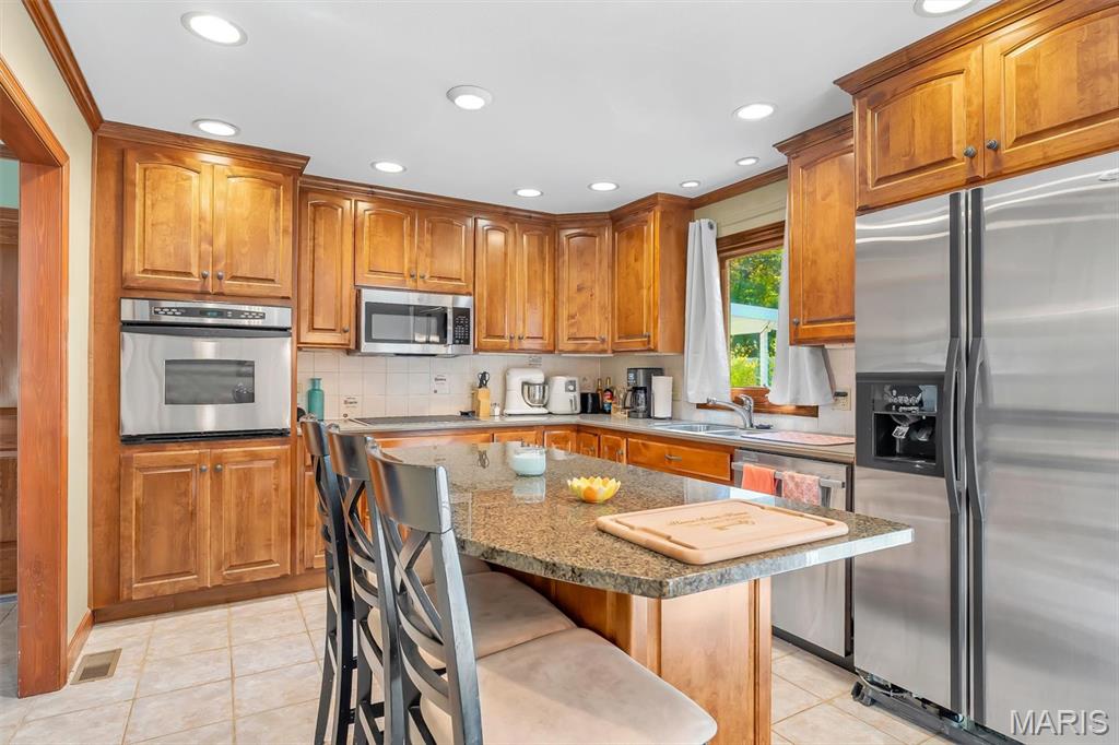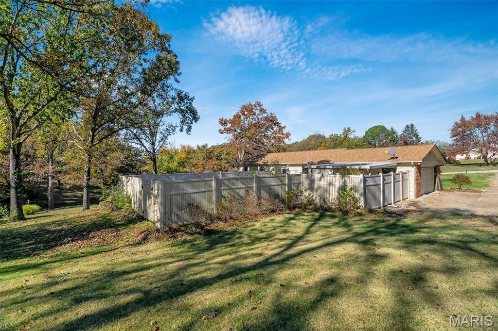 Beautiful Ranch in the Heart of Hillsboro! Nestled on over a half-acre lot surrounded by mature trees,and offers more space than meets the eye. Featuring 3 bedrooms, 3 baths, and a thoughtfully designed floor plan, this home combines comfort and function in an ideal location. The inviting living room showcases stunning hardwood floors, rich wood crown molding, and elegant accents. The updated eat-in kitchen is a chef’s dream with custom cherry cabinets, granite island, ceramic flooring, stainless-steel appliances, and abundant counter and storage space. The main level includes two bedrooms and two full baths, including a spacious primary suite with private bath and walk-in shower. Convenient main-level and lower-level laundry options add flexibility. The finished walk-out lower level provides even more living space, including a third bedroom, recreation room, two bonus rooms, a full bath, and ample storage. Step outside to your private backyard retreat—complete with an in-ground swimming pool, large covered patio, privacy fencing, and a separate fenced area perfect for pets. A detached shed offers extra storage for pool or lawn equipment, and there’s still plenty of yard space to relax and enjoy the peaceful surroundings. With a two-car garage and a prime Hillsboro location close to everything, this home truly has it all!