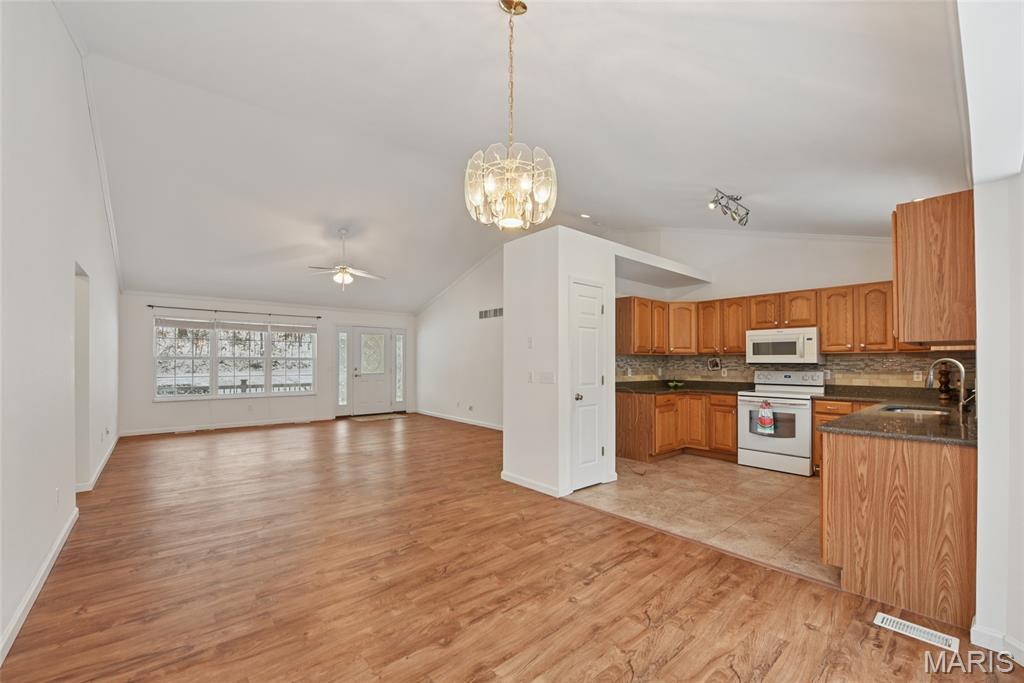Beautiful ranch home offering exceptional privacy and space! This 4-bedroom, 3-bath ranch sits on a gorgeous wooded lot within a wonderful gated community known for its fishing, golfing, boating, and abundant outdoor activities. Enjoy an open, divided-bedroom floor plan with spacious rooms throughout, including a main-floor laundry and an oversized 3-car garage. The primary suite features vaulted ceilings, double sinks, a separate Jacuzzi tub and shower, and a generous walk-in closet—all set apart from the secondary bedrooms for added privacy. The finished lower level provides a fourth bedroom, full bath, and plenty of additional storage. Recent updates include a newer roof (2025), HVAC system (approximately 5 years old), and some newer flooring. With its peaceful setting, thoughtful layout, and fantastic amenities, The community of Raintree has 4 lakes, golf course, beautiful beach and picnic area.