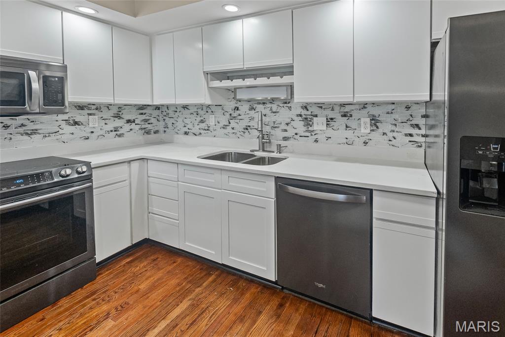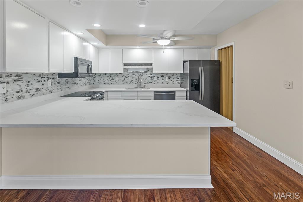 New furnace! New hot water heater! Easy living in this convenient, renovated villa! Tons of natural light, hardwood and marble floors, open kitchen with quartz breakfast bar, stainless appliances, vaulted ceiling, intricate mantle on wood burning fireplace, and even built in display shelves are all extras here! Featuring plenty of space with 3 bedrooms and 3 full baths, including a primary bedroom with en suite and large walk in closet! The open floor plan affords so much living space and even features a new deck off the dining area. The full walkout basement is perfect for entertaining, large rec area, wet bar, and ample storage including a cedar closet and a fantastic patio! The third bedroom and full, updated bathroom complete the perfect guest space in the amazing lower level. This property also boasts a two car attached side load garage! Perfect location close to everything! NO HOA. Newer roof and windows, newer appliances, new carpet, trim work and deck! Code compliant and ready for its new owner!