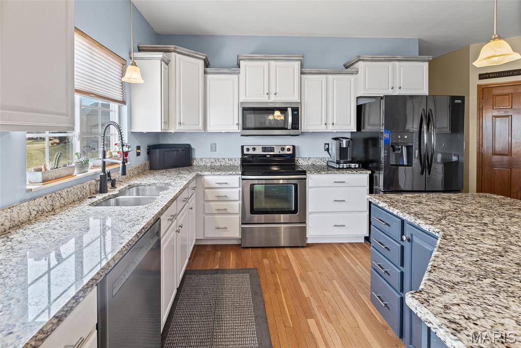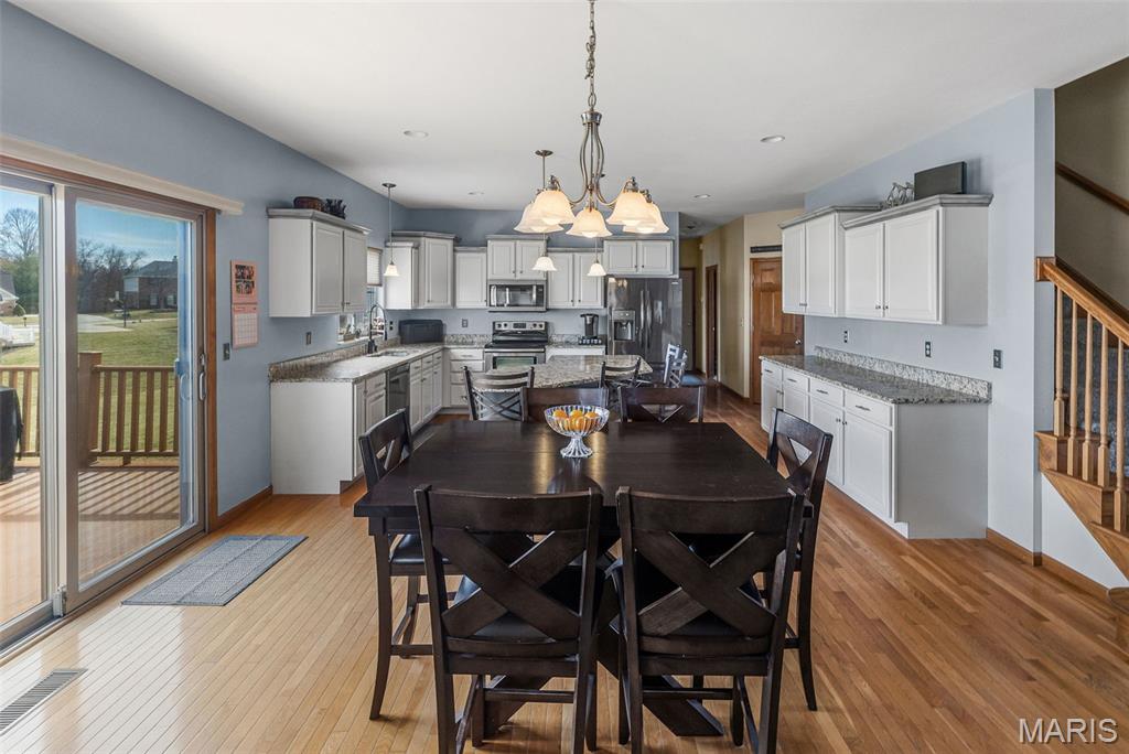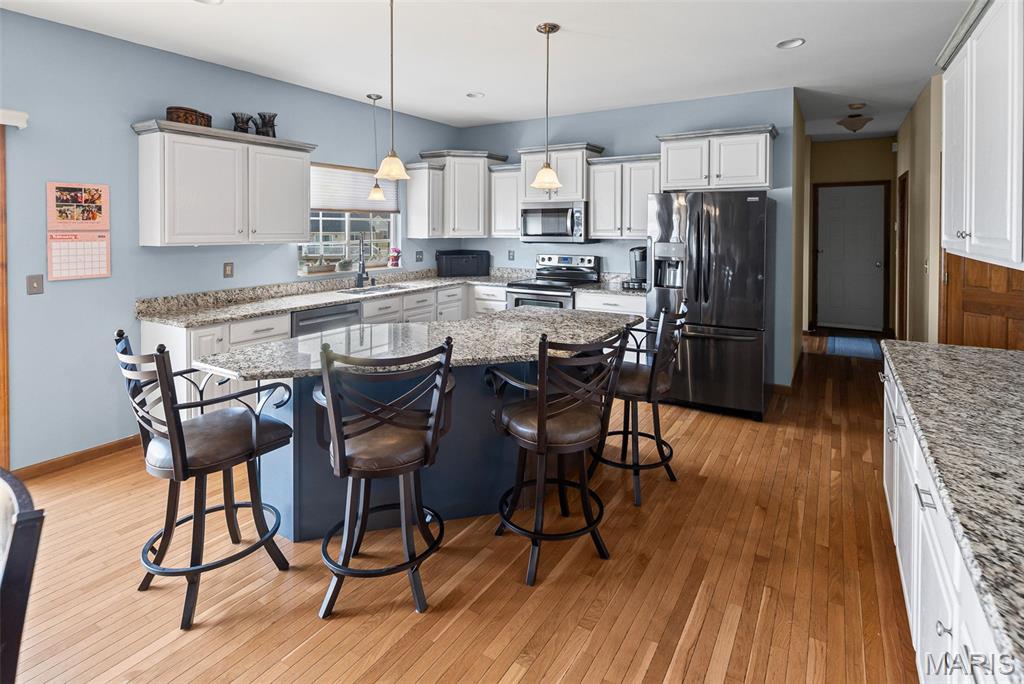 Nestled on a quiet cul-de-sac in the desirable Wolf Branch School District, this breathtaking 2-story home offers the perfect blend of luxury, comfort, and functionality. With 4 bedrooms, 5 baths, and a 3-car side-load garage on a generous 0.79-acre lot, it's ideal for entertaining, family living, and creating lasting memories. Enter the inviting foyer leading to the living room w/French doors (currently used as an office) and formal dining room, perfect for cozy gatherings. The heart of the home is the family room with newer carpet, a gas fireplace and fan, flowing seamlessly into the gourmet eat-in kitchen featuring granite countertops, a large center island/breakfast bar, stainless steel appliances, walk-in pantry, and abundant cabinet space. Adjacent to the kitchen, a main-level game room offers flexible space for play, hobbies, or a second office. Enjoy the convenience of a main-floor laundry area and guest half bath. Outside, enjoy the composite deck or the walk-out basement patio to soak in the tranquil setting of the spacious backyard. Upstairs, the primary suite is a serene retreat with vaulted ceilings, French doors, a spacious walk-in closet, and a spa-like ensuite bath with double vanities and sit-down shower. Three additional generous bedrooms with walk-in closets, a full bath, and a Jack-and-Jill bath provide comfort for family and guests. The finished walk-out basement is perfect for entertaining, featuring a wet bar w/TV, electric fireplace, full bath w/steam shower, bonus room, and ample storage, with easy access to a concrete patio - ideal for entertaining, relaxing, and enjoying the outdoors in any season. Bonus room in basement (currently used as a workout space) features carpet flooring, a door for privacy, and a potential closet area. This flexible space offers multiple use possibilities. Hunter Douglas window treatments throughout the home. Additional highlights include a prime cul-de-sac location and thoughtful design for work, play, and relaxation. Roof - 2025. Tankless water heater - 2020. HVAC (dual system) - one unit new in 2024. Living room (currently used as an office) & dining room carpeting - 2026. This home blends style, function, and seasonal charm. Sellers are offering a $10,000 flooring/decorating allowance with an acceptable offer. Don't miss your chance to enjoy the charm and comfort of Woodfield Lake Estates and make this incredible home your own! Close to Swansea Conversation Park and nearby biking and recreational trails - perfect for outdoor enthusiasts. Plus, you're just minutes from great dining, shopping, and everyday conveniences. CODE COMPLIANT.