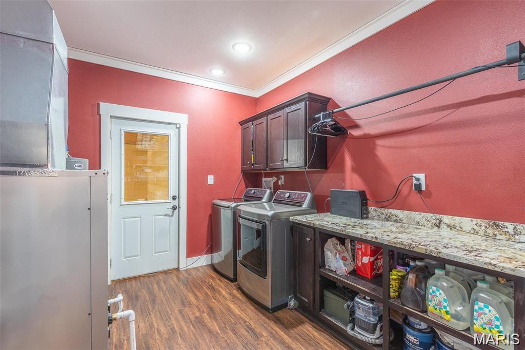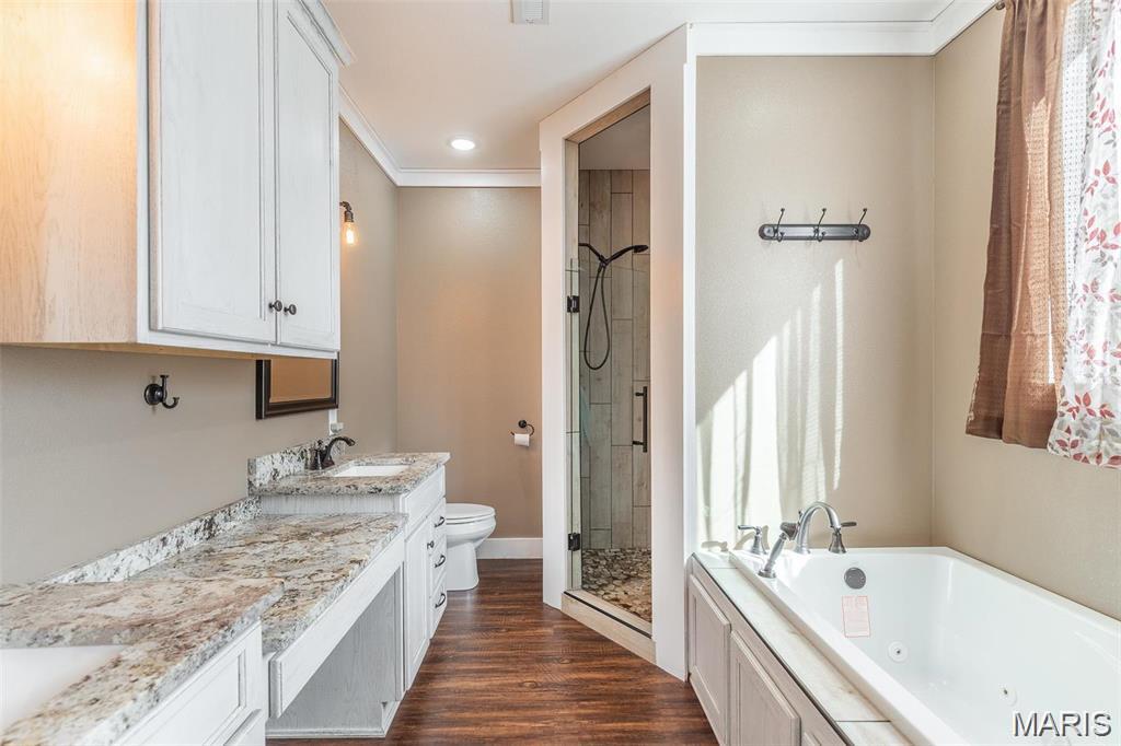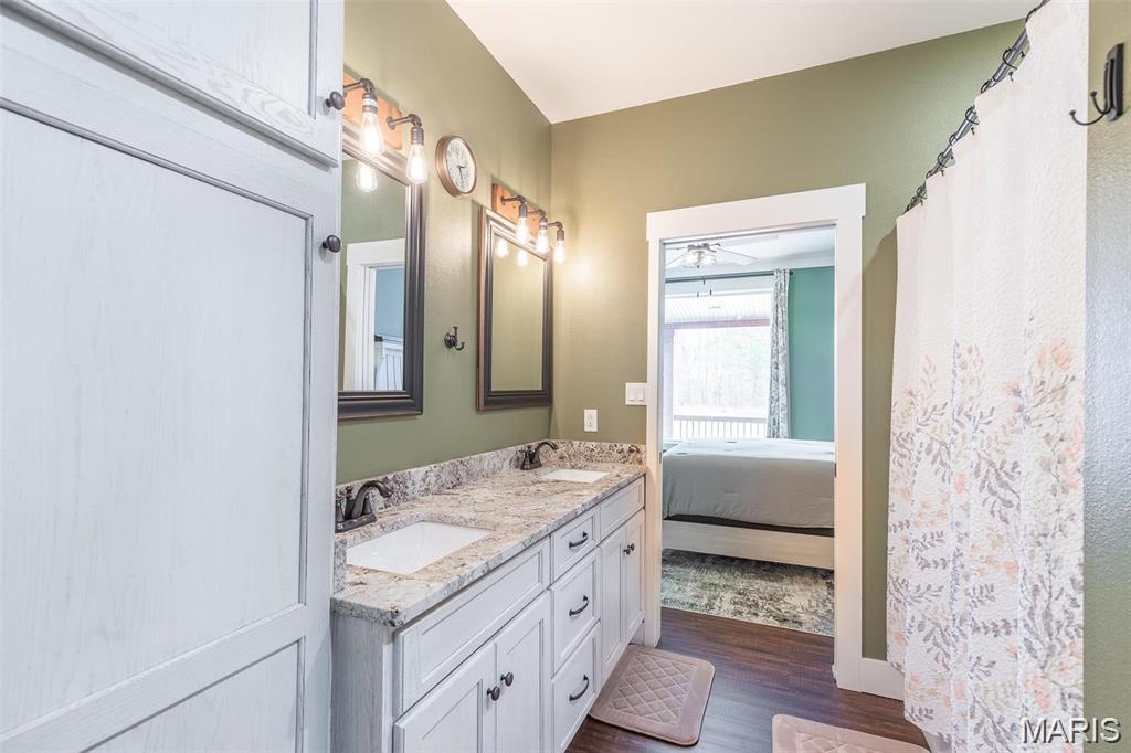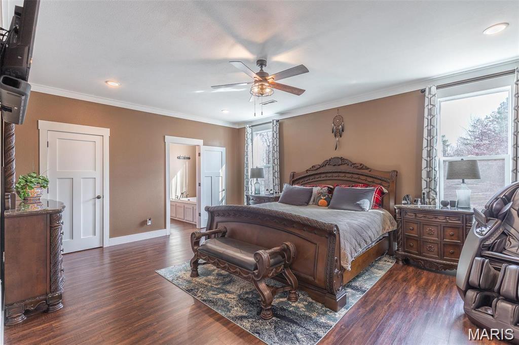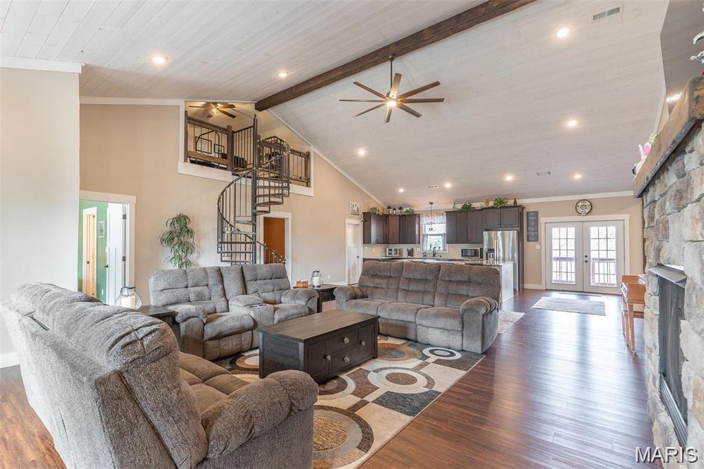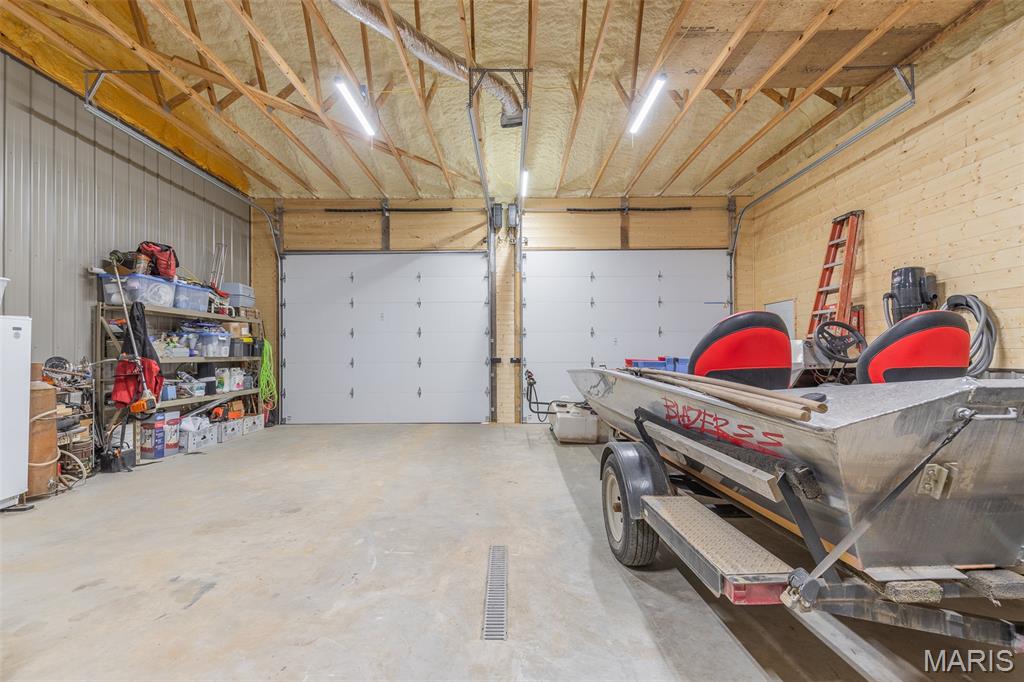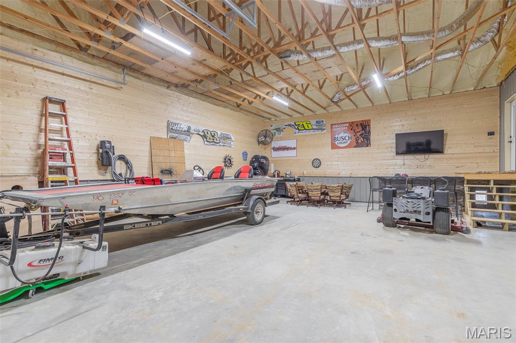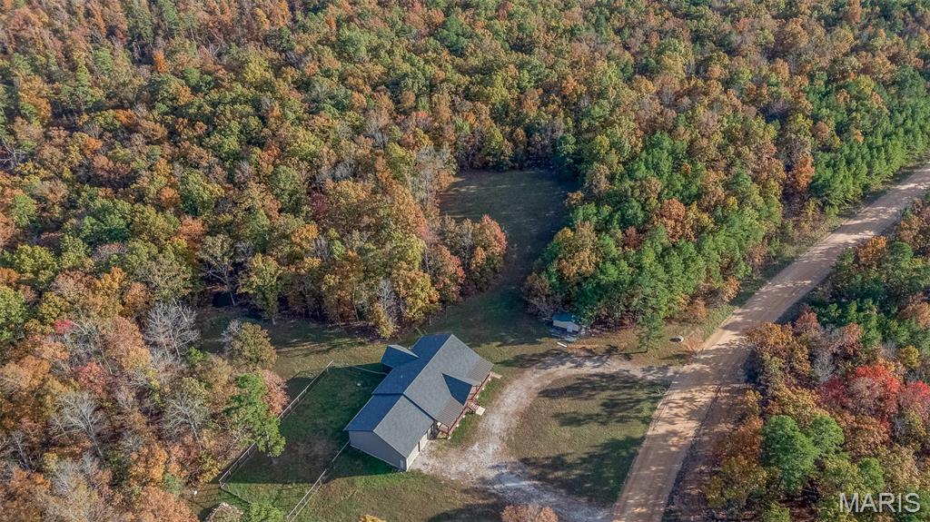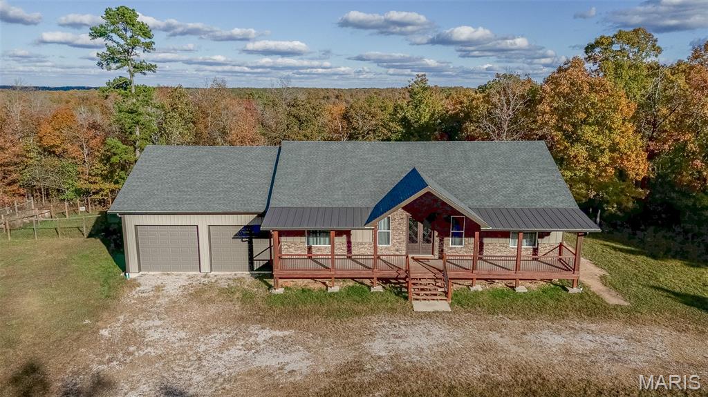 Welcome to your own slice of paradise! This stunning home with 40 +/- acres of land offers rural living with modern/updated conveniences. The interior is pure luxury with a spacious open floor plan with vaulted ceilings, shiplap and rustic wood beams, stone fireplace in living area, kitchen with custom cabinets, stainless steel appliances with hard surface countertops, and don’t forget ceiling fans in every room! The divided bedroom plans offer spacious rooms; the primary bedroom boasts a roomy walk-in closet, large windows and recessed lighting. Inside the primary bath you'll find double vanities, jetted bath tub, and walk-in tile shower. The additional bedrooms share a Jack-and-Jill bathroom and each offer ample storage. Up the spiral staircase you will find a loft area ideal for a home office, additionally spare room or just a cozy hangout. The house is equipped with a geothermal heating/cooling system which is efficient, economical, and keeps the house, as well as the temperature regulated garage, comfortable all year round. The oversized garage also features two large bay doors, high ceilings, and insulation. The garage can also be utilized as a “man cave” or entertainment space as it has a built-in bar area as well! Enjoy relaxing evenings on the covered back deck that overlooks your wide open yard and land adorned with trees, while the fence offers opportunities for kids or pets to play. You can enjoy the outdoors on your 40 acres for hunting, expanding, or just soaking in the beauty of rural living. The amenities go on and on, you don’t wanna miss out on this fantastic home! Currently listed BELOW appraisal value due to seller's relocation!