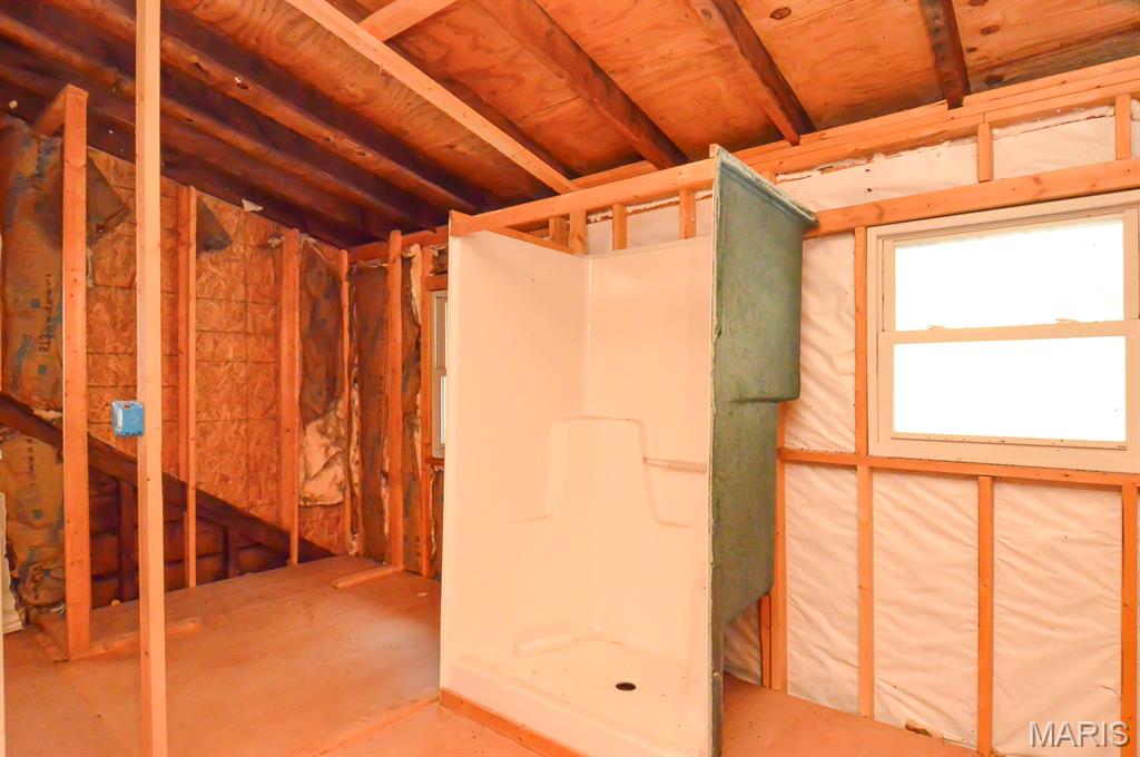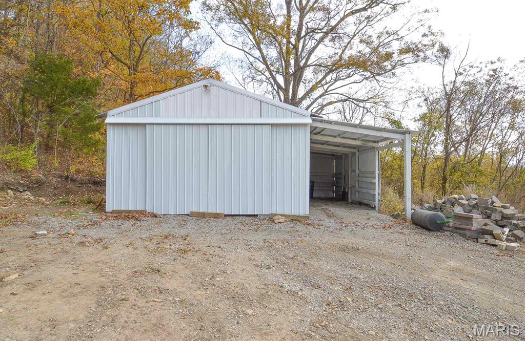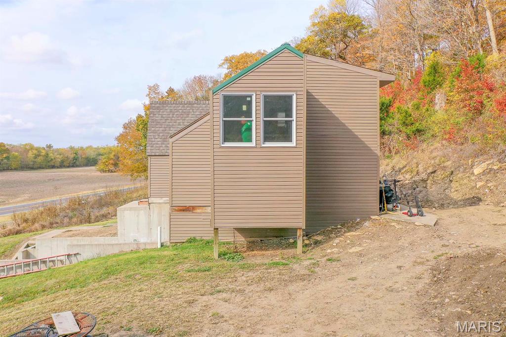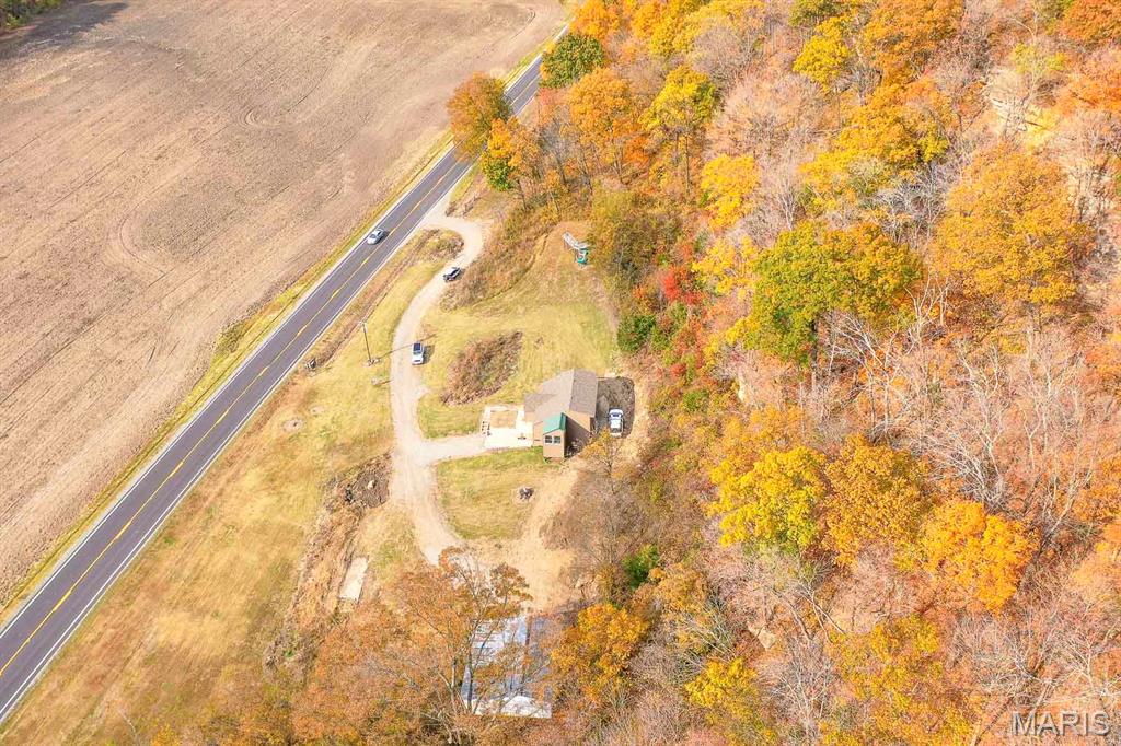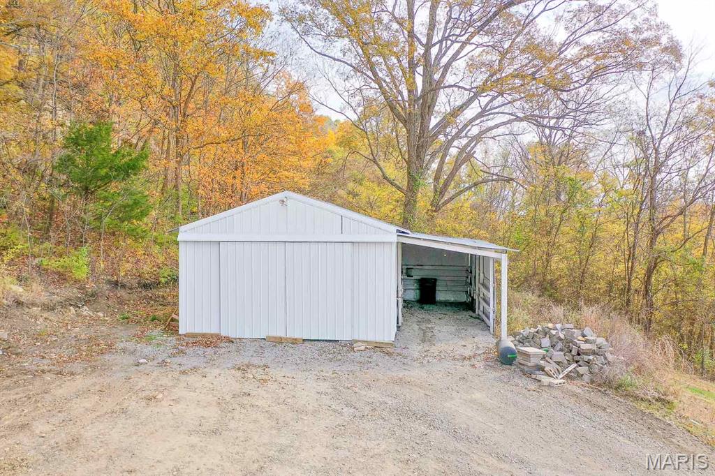 Semi-Secluded 1 bedroom country retreat on 4.1 acres backing to Scenic bluffs, minutes to Kinkaid Lake. Experience the perfect blend of privacy and convenience in Rockwood, IL, where this unique one-bedroom, one-bath home sits on approximately 4.1 acres of mature timber and gently backs into scenic bluffs. A gravel drive leads to a welcoming entrance and a living room flooded with natural light through large windows. The roughed-in kitchen invites you to design a culinary space that reflects your style, while a tucked-away laundry nook and a full bath serve the main living area and large primary bedroom. An upstairs framed half-story offers potential for additional bedrooms or a creative retreat and awaits finishing by the new owner. The full unfinished basement provides generous storage and convenient walk-out access to the driveway. Outside, a well-maintained pole barn with an attached lean-to offers secure boat or RV storage and additional workspace. This property delivers quiet country living with easy access to Kinkaid Lake, local schools, and amenities in nearby Chester, making it ideal as a private homestead, weekend getaway, or hobby-focused property. ** Property lies within a 100 Year AE-Flood Zone** Property is selling As-Is. Seller will not make repairs and priced as such. Tax amount and acreage listed reflects both parcels selling as one.