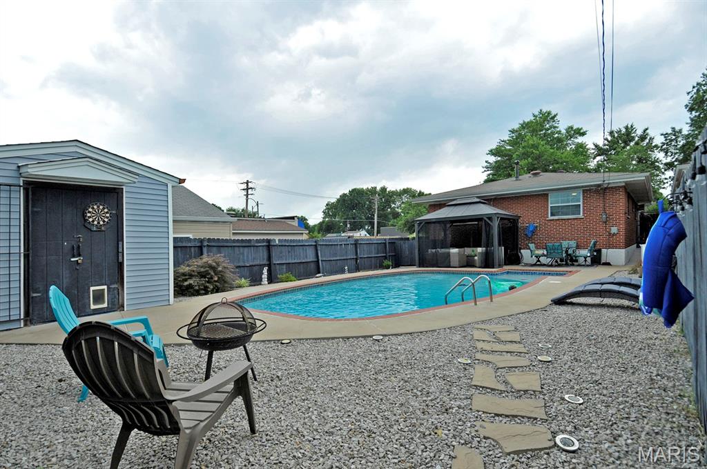 Welcome to a beautifully maintained brick ranch in the heart of Lindenwood Park, offering spacious living, modern upgrades, and an incredible outdoor oasis. Inside, you'll find 3 bedrooms and 2 full bathrooms on the main level, paired with a fully finished basement that adds an extensive bonus living space, including a half bath and dedicated laundry room. Washer/dryer is included with the home. The kitchen is a standout, featuring granite countertops, ample cabinetry, and a seamless flow into the living room, perfect for everyday living and entertaining. The remodeled basement provides flexible space for a home gym, rec room, office, or guest area, with stylish finishes and plenty of storage. While the rooms downstairs are not included in the official room count due to being below grade, the quality and function speak for themselves. Step outside and discover the showstopper backyard, a huge in-ground pool, surrounded by a fenced yard and patio, offering a private retreat for summer relaxation and hosting. An additional shed for storage and parking spot behind the fenced yard is also included! This home is ideally located just minutes from Webster Groves, Ted Drewes, Francis Park, and Lindenwood Park, with quick access to I-44 and the Shrewsbury-Lansdowne MetroLink station — perfect for commuting, weekend adventures, and enjoying the best of St. Louis. You'll love the neighborhood's walkability, charm, and unbeatable convenience. Craving custard? Ted Drewes is just a short walk away!