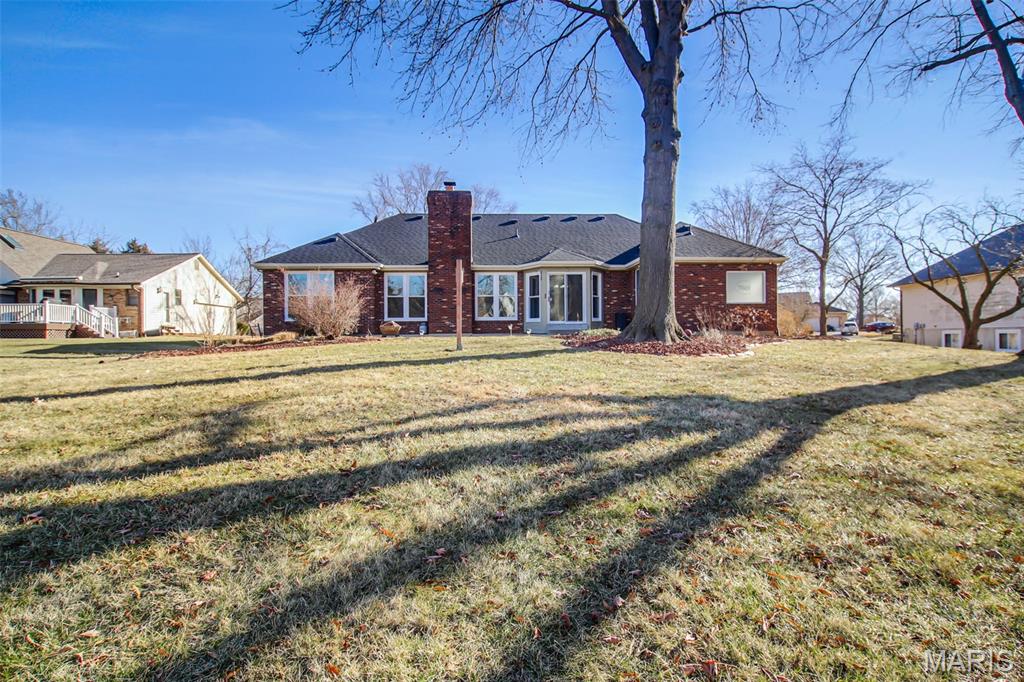 Pride of ownership shines throughout this beautifully maintained 3-bedroom, 2-bath full brick ranch, lovingly cared for by the original owners for over 30 years. Set on a level lot over a half acre in a sought-after Oakville location, this home offers timeless quality, thoughtful design, and inviting spaces for everyday living and entertaining. The expansive living room is the heart of the home, featuring tall ceilings, abundant natural light, plantation shutters, and a cozy wood-burning fireplace—perfect for relaxing evenings or gathering with family and friends. A separate dining room provides an ideal setting for holidays, special occasions, or elegant everyday meals. The welcoming kitchen offers granite countertops, a functional breakfast bar, and a layout designed to keep everyone connected. The private primary suite serves as a peaceful retreat, complete with two walk-in closets and separation from the secondary bedrooms. Step outside to an oversized patio that creates exceptional outdoor living space, with plenty of room to entertain, unwind, or envision adding a pool to create your own backyard oasis. A full basement provides excellent storage and exciting potential for future finished living space, such as a recreation room, home office, or fitness area. The 3-car garage and oversized driveway offer ample parking and storage, perfect for guests, hobbies, or additional vehicles. Recent updates include a new roof installed in 2025 and new windows along the back of the house, offering peace of mind for years to come. Located in the award-winning Oakville School District and close to parks, shopping, dining, and major highways, this home delivers comfort, space, and a lifestyle you’ll love.