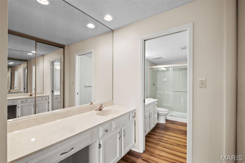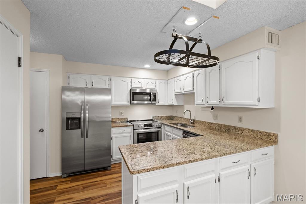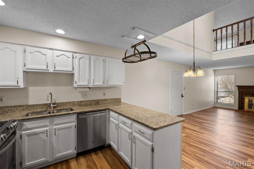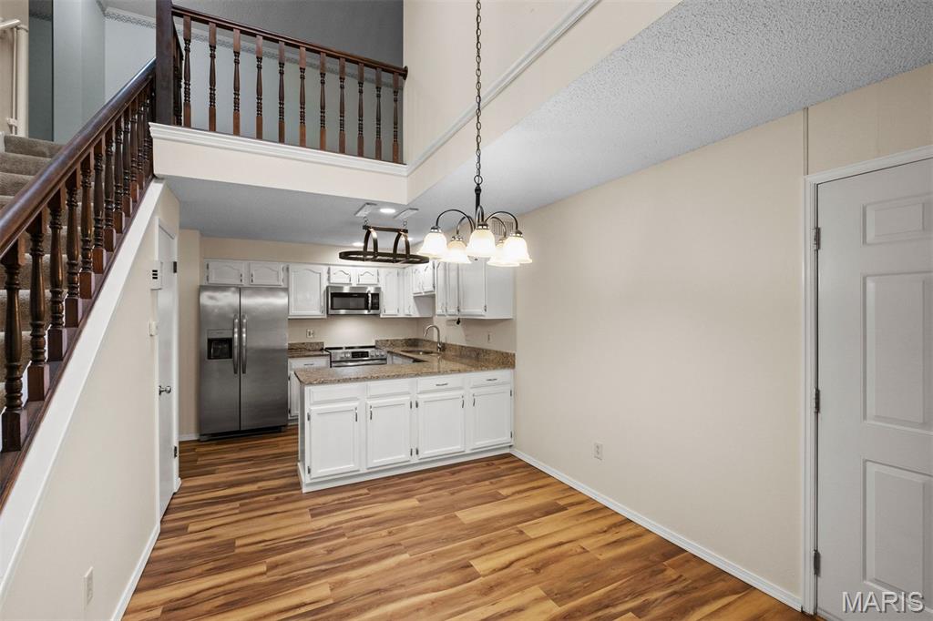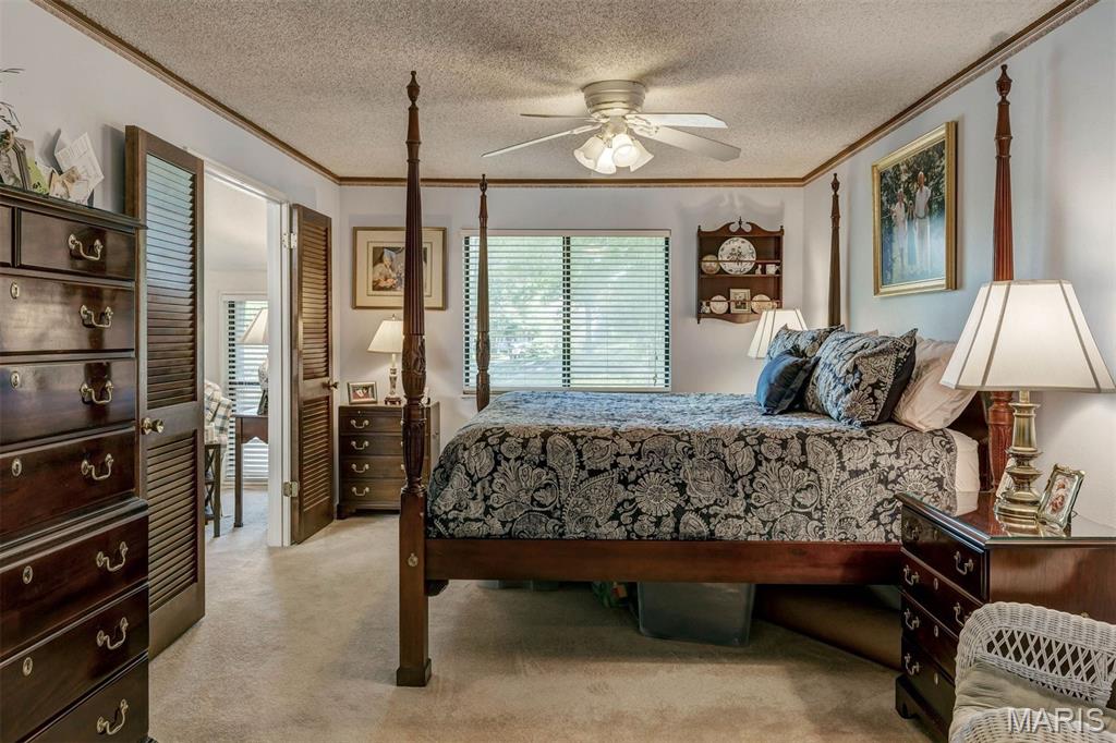 2 Story townhome with private entrance. Great room with decorative fireplace & dining area. Remodeled white kitchen with newer stainless steel appliances, granite counters & breakfast bar opening to the living space. 2 Master Suites. Main level master has built-in bookcases, walk-in closet, full bath & access to patio. Upstairs Master has 2 closets adjoining sitting area/loft with decorative fireplace. Large 2nd floor landing provides add'l flex space & 3rd bedroom. 2 Car basement garage with 8x8 storage unit. Private patio. Across from the unit there is additional parking for guests. Recently remodeled community pool with Clubhouse & tennis/pickle ball courts. HOA covers water, sewer, trash, exterior maintenance & Lawn care. Note: There is an additional $465/yearly fee for the pool, tennis & clubhouse.