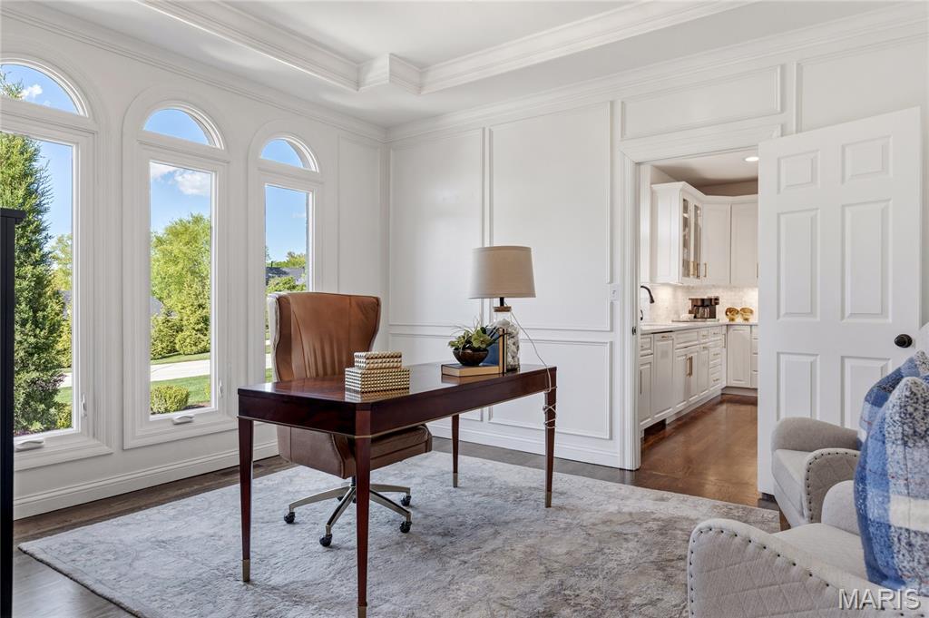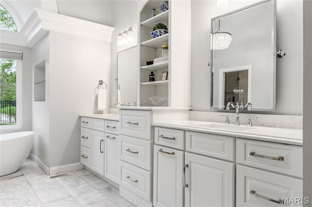 Stunning Italianate 1.5 Sty on Whitmoor Country Club grounds. This Hackett-built home exemplifies classic architecture with a fresh exterior & interior perspective. Impressive 2-sty foyer leads to private study with French doors & vaulted great room with 2-sided marble fireplace & dramatic wall of windows that overlook the 16th hole on the South course. Designer kitchen with 42” custom cabinetry, quartz countertops, premium appliances & 9’ center island adjoins light-filled breakfast room with octagonal ceiling & hearth room with brick fireplace & stunning custom wall unit. Primary bedroom suite offers an appealing retreat with walk-in & triple closets & Carrara marble bath with freestanding tub. Solid wood staircase accesses 3 additional bedrooms & hall full bath. Walk-out Lower Level includes recreation room with bookcase & wet bar, game room, 5th bedroom & full bath. Situated on a .8-ac cul-de-sac lot with paver patio with grilling station & fire pit, pool & outdoor living room with full-height fireplace.