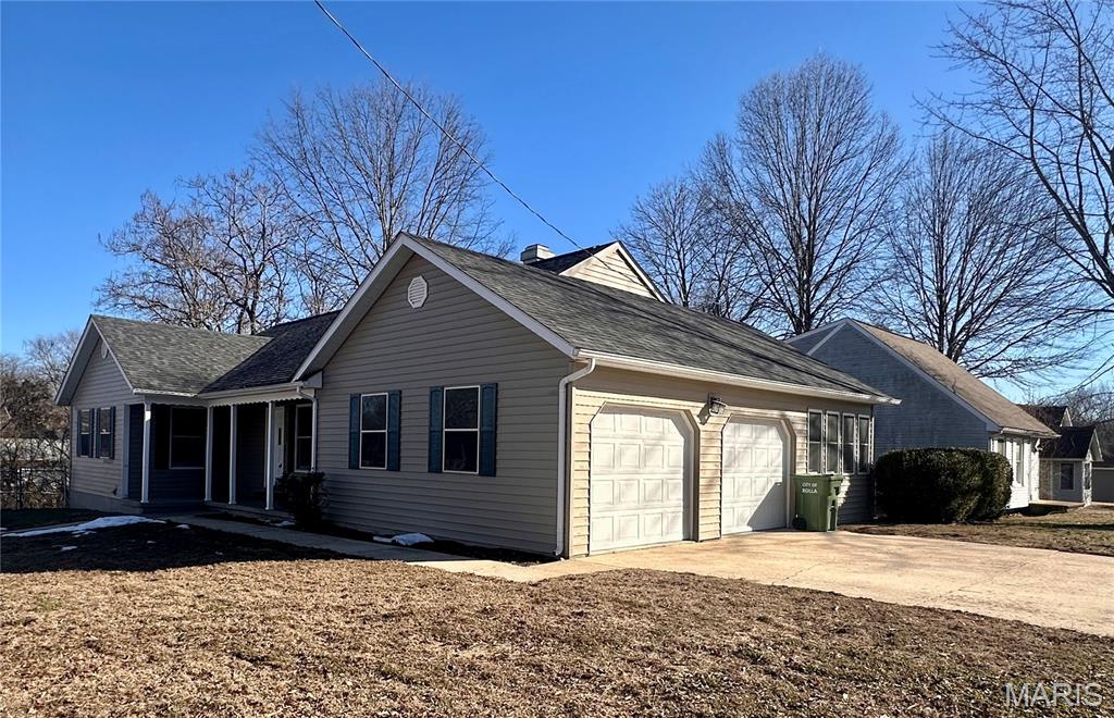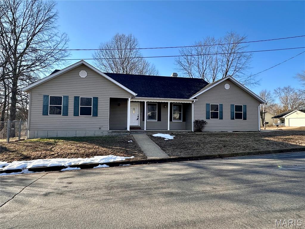 Continue to Show!!! Well-maintained ranch-style home on a corner lot, ideal for a starter home, growing family, or those looking to downsize. This home features 3 bedrooms and 2 full baths, with a comfortable living room centered around a cozy fireplace. The kitchen offers an eat-in dining area, and the home includes a separate laundry area for added convenience. A bright bonus room provides extra living space. Outside, enjoy a covered front porch, a rear deck, and a fully fenced yard. Additional features include vinyl siding for easy maintenance, an attached 2-car garage, and a new roof for peace of mind. A versatile, move-in-ready home with great indoor and outdoor space.
