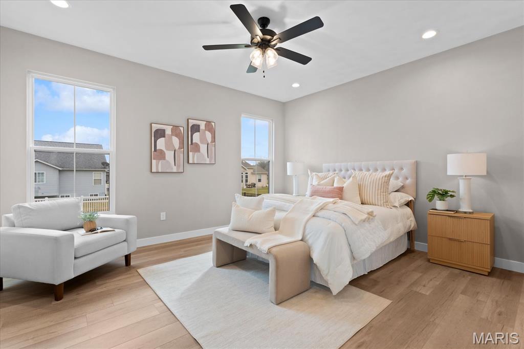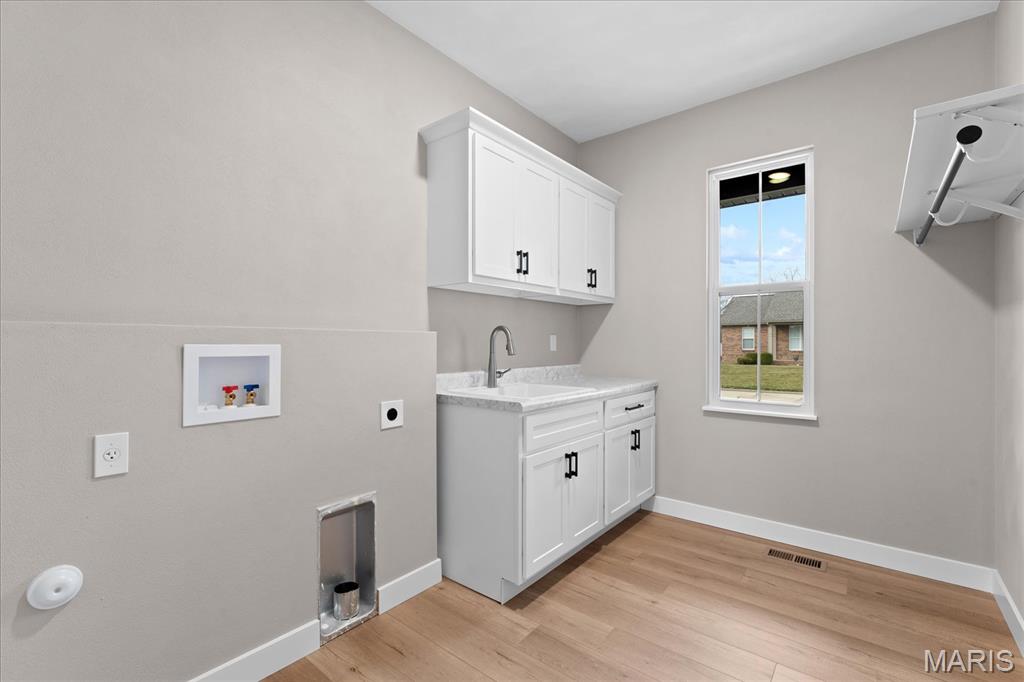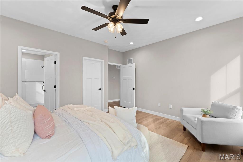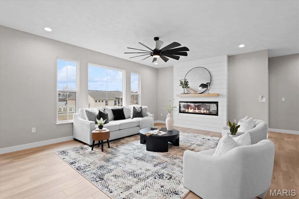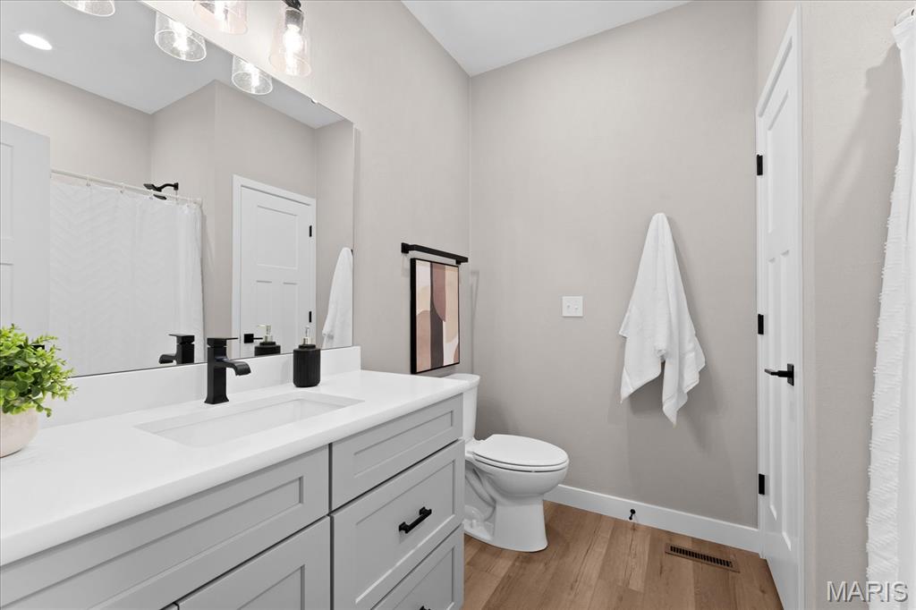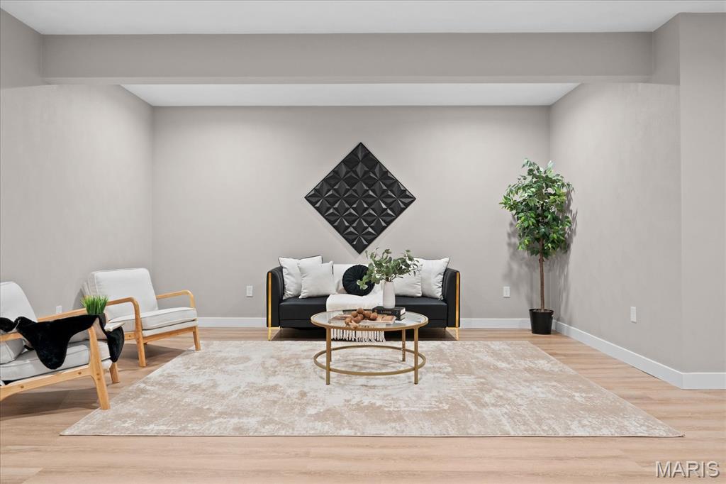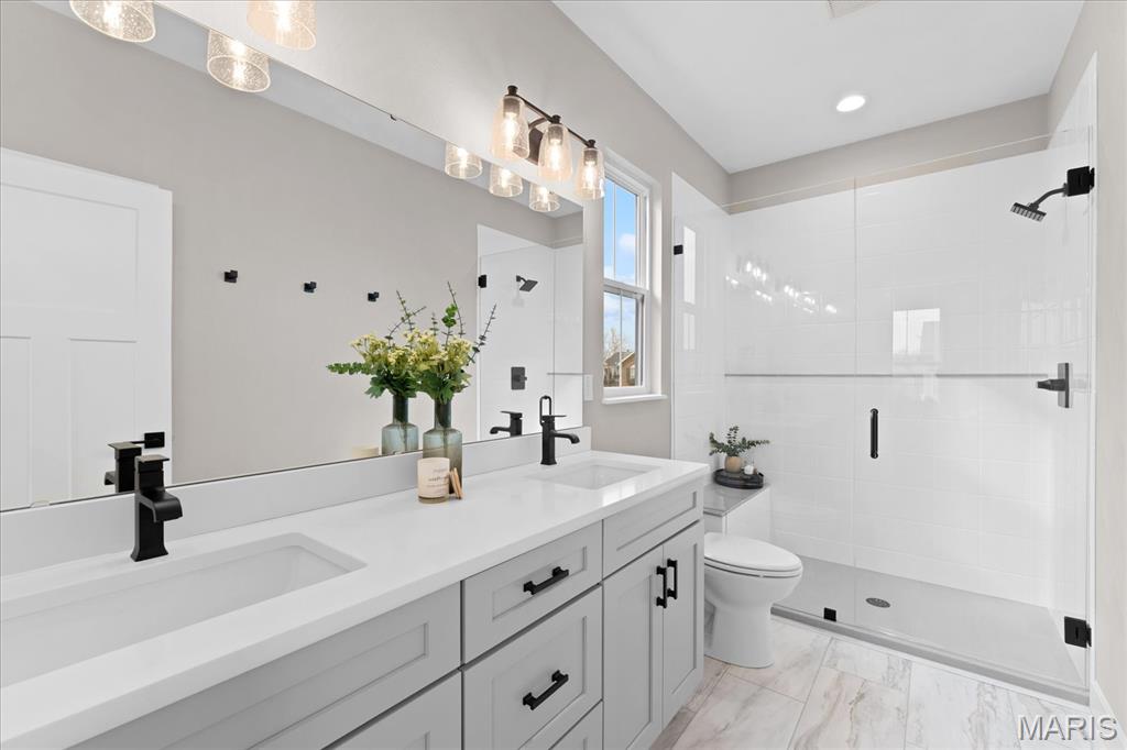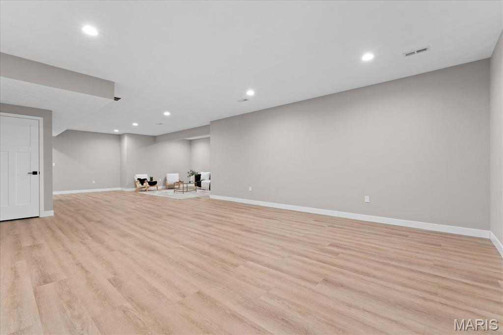 Stunning new construction ranch featuring 4 bedrooms, 3 bathrooms, and a 3-car oversized garage. The crisp white exterior with black accents delivers timeless curb appeal. Step inside this thoughtfully crafted home, to a spacious foyer that opens into a bright and airy living space with luxury vinyl plank flooring throughout and high-end finishes at every turn. The heart of the home is the open kitchen, dining, and living area—bathed in natural light. The show-stopping kitchen boasts floor-to-ceiling custom cabinetry, quartz countertops, a massive island, luxurious hood vent, and a custom walk-in pantry with built-ins. A covered back patio with ceiling fan offers a perfect space to relax or entertain. Off of the massive garage, a mudroom leads to a laundry room with cabinetry, sink, and hanging storage. The primary bedroom features a walk-in closet with custom built-ins, an ensuite bath with a double sink and tile glass shower. Additionally you have two other bedrooms and a full bathroom. The finished lower level adds 900 sq ft of finished living with 9' ceilings, a fourth bedroom, full bath, and storage area. Every inch of this home exudes thoughtful design and quality craftsmanship, don't miss the opportunity to call this home!