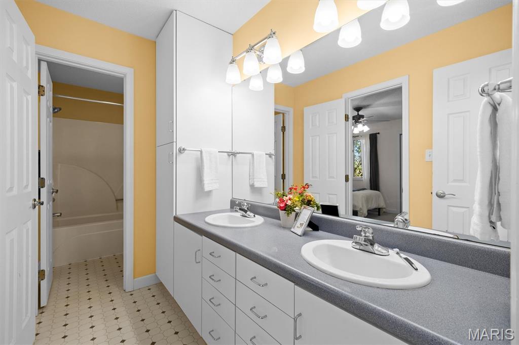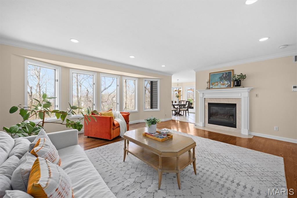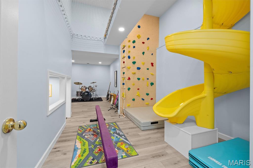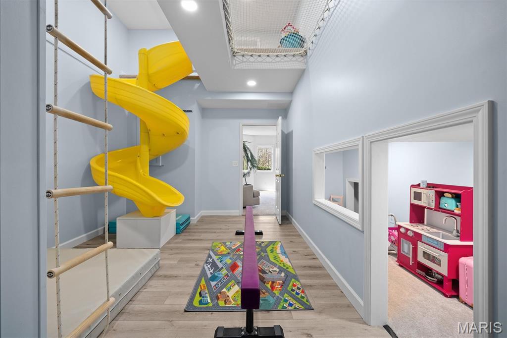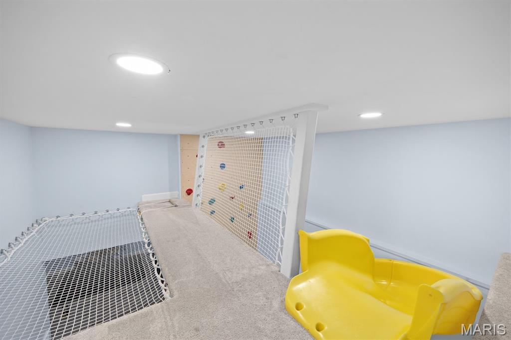 Experience luxury living in this exceptional 5-bedroom custom executive home set on 1.5 acres in a private cul-de-sac. A grand entry welcomes you with a formal office & elegant formal dining room showcasing detailed custom millwork. The chef's kitchen is a standout with dual built-in ovens, Thermador gas range, two-zone island, pantry, & a bright breakfast nook that opens to a large composite deck overlooking a private, wooded backyard. The inviting living room features abundant natural light & is anchored by gas fireplace. The petite bookcase covertly reveals a one-of-a-kind play loft complete with a slide to the lower level, climbing wall, & additional play space. A second office, with privacy, is conveniently located on the staircase landing. Upstairs, the primary suite offers dual closets & a spa-like bath with double vanities, soaking tub with window surround, & a private water closet. Two bedrooms share a Jack & Jill bath, while a third includes its own ensuite. A laundry chute provides added convenience to the main-level laundry room. The finished walk-out lower level is designed for entertaining & everyday living, featuring a kitchenette, full bath, bedroom, & flexible space for recreation, fitness, or hobbies. Enjoy multiple outdoor living areas with natural stone stairs, patio spaces, & mature landscaping including hostas & hydrangeas. Freshly painted, updated lighting, new mailbox & new roof. Ideally located minutes from downtown OFallon, Scott AFB, and St. Louis. No HOA, however the neighborhood pool is members only for $600/yearly. Deadline to sign up for season is mid April. Membership is transferable to new owner.