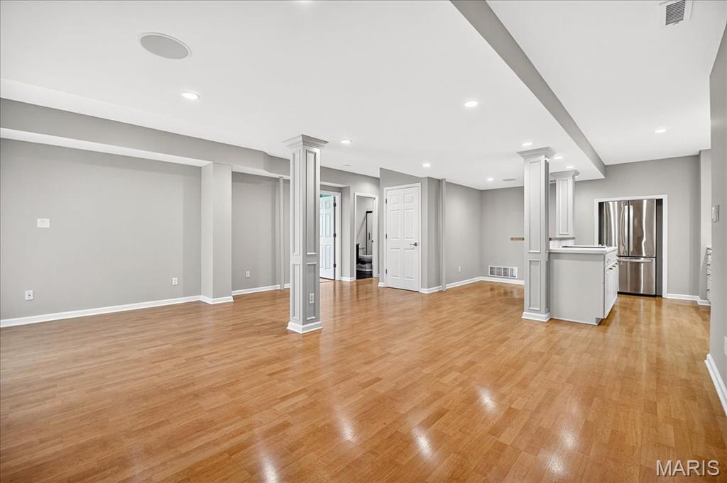 Welcome to 202 Fick Farm Rd, a private retreat set on six lush, wooded acres in the heart of Chesterfield’s sought-after 63005. This impressive 5-bedroom, 4.5-bath residence offers over 7,000 sq ft of flexible, elegant living space—delivering the ideal balance of sophistication, comfort, and privacy. A grand foyer opens to multiple light-filled living areas designed for both everyday living and entertaining. The gourmet kitchen features premium appliances, generous counter space, and a seamless connection to the inviting family room—perfect for gatherings or quiet evenings at home. A formal dining room and cozy breakfast nook provide ideal spaces for everything from special occasions to casual mornings. The expansive primary suite serves as a true retreat, complete with a luxurious en-suite bath and ample closet space. Additional bedrooms are well-sized and versatile, accommodating family, guests, or dedicated work-from-home needs. The partially finished walk-out lower level offers exceptional flexibility, with endless potential for recreation, additional living space, or future customization. Outdoors, the setting is unmatched. Six private, wooded acres create a peaceful escape with mature landscaping—ideal for outdoor entertaining, relaxing on the patio, or enjoying nature year-round. A rare find in West County, this property offers horse-friendly acreage with the space, setting, and flexibility today’s buyers are searching for. The land configuration and open surroundings make it well-suited for equestrian use, hobby farming, or simply enjoying the freedom of usable acreage—while still maintaining close proximity to top-rated schools, shopping, highways, and everyday conveniences. Located in the award-winning Rockwood School District and just minutes from Chesterfield’s premier dining, retail, and recreation, this home delivers rare seclusion without compromise. Refined, private, and exceptionally located—202 Fick Farm Rd is not just a home, but a lifestyle.