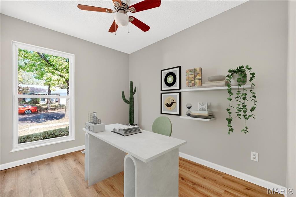 6360 Silver Fox Drive offers unbelievable space, style, and value with modern updates throughout. This move-in-ready home features three spacious bedrooms and two full baths on the main level, including a private ensuite in the primary bedroom, blending comfort and function seamlessly. Enjoy NEWLY refinished hardwood floors, BRAND NEW LVP flooring, NEW paint, NEW windows, and a NEWLY updated kitchen with NEW countertops and NEW appliances. The home also features a BRAND NEW roof, giving you peace of mind for years to come. The big-ticket items are already done with NEW HVAC, NEW air conditioner, NEW boiler, NEW water heater, NEW garage door motor, and NEW appliances. A bright NEW sunroom addition off the back captures beautiful sunrises and sunsets along with peaceful views of deer and surrounding wildlife. The expansive lower level with a half bath offers endless potential for entertaining, recreation, or additional living space. Outside, you will love the flat, fenced backyard backing to common ground, plus an oversized garage and a quiet street setting. This home truly stands out at its price point. Schedule your showing today. Contact 314 805 8440 with any questions.