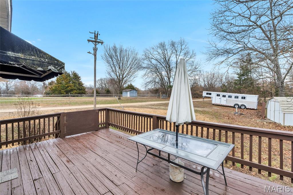 Situated on a beautiful 3.75-acre park-like setting, this property is horse-friendly with plenty of room to roam. Enjoy the perfect blend of peaceful country living and everyday convenience just minutes from town in the R-2 School District. This charming ranch offers 2 bedrooms, 1 full bath, and main-floor laundry. Recent upgrades include a new HVAC system (furnace, heat pump, and central air) with WiFi thermostat, along with a new water heater, front entry door, and storm door. Step outside to the spacious deck overlooking the scenic acreage - ideal for relaxing or entertaining. A 30x30 metal outbuilding with its own separate electric service and 220-volt outlets offers excellent space for storage, equipment, or a workshop. Whether you're looking for space for animals, hobbies, or simply room to spread out, this property offers endless possibilities.