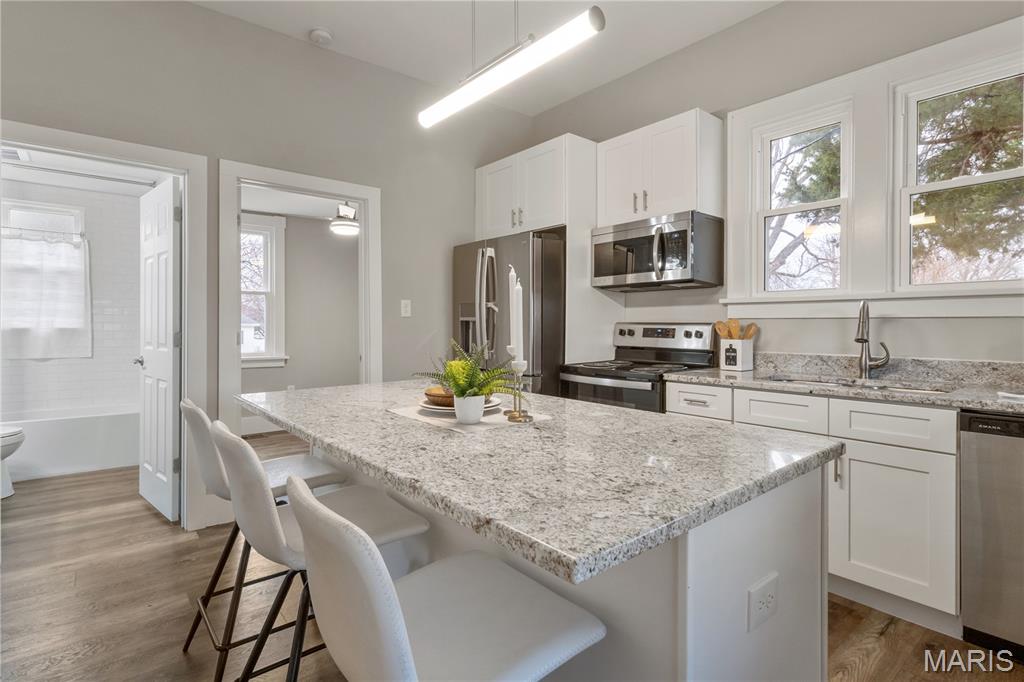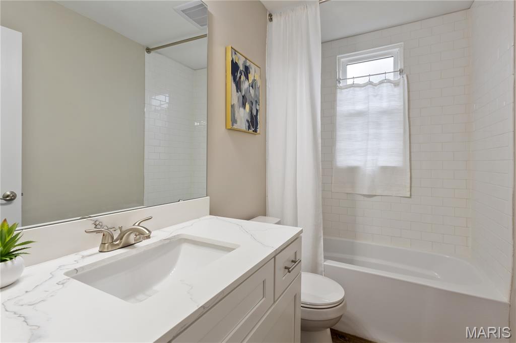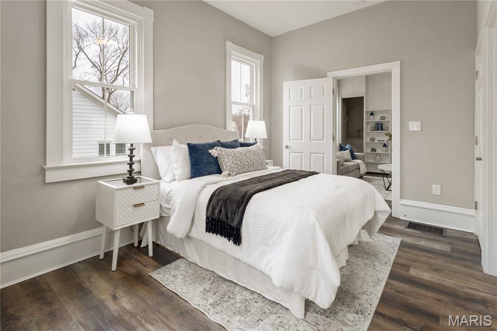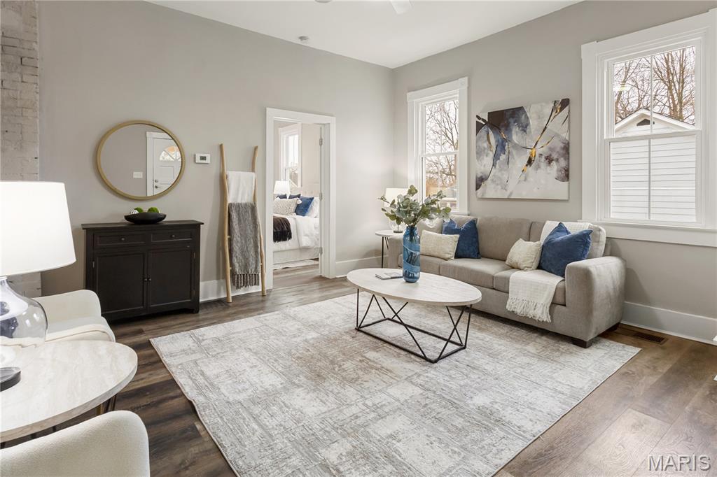 Coming Soon! Welcome home to this beautifully updated gem situated on a rare oversized lot in the heart of historic St. Charles! Blending timeless charm with modern updates, this move-in ready home is sure to impress. Step inside to a spacious living room featuring tall ceilings, abundant natural light, a ceiling fan, and a built-in bookcase that adds character and function. The stunning kitchen boasts granite countertops, newer cabinetry, lighting and fixtures, stainless steel appliances, and a large center island, perfect for entertaining or everyday living. The generous primary suite includes a private bath with a tiled shower and convenient stackable washer/dryer. An additional bedroom (ideal for a home office) and a full bath with tub complete the main level. A hidden staircase leads to a versatile attic bonus room with window, offering endless possibilities for storage, hobby space, or future finishing. The updated dry cellar features newer concrete floor, stairs, and sump pump, providing excellent storage space. Enjoy outdoor living on the covered back porch overlooking the patio and level fenced yard, ideal for pets, play, or gardening. An oversized 2-car carport provides excellent covered parking and additional convenience. Major updates with in last 3 years include kitchen, baths, luxury vinyl plank flooring, newer windows, roof, electrical, plumbing, HVAC, water heater, ceiling fans and fresh paint throughout. Located just a few blocks from Frenchtown and the exciting historic downtown revitalization project, including a new City Hall, Farmer's Market and Rec Center, creating a sought after destination for visitors, locals and students from nearby Lindenwood University. You’ll love being near Main Street’s parades, festivals, unique shops, and restaurants. A rare opportunity to own a fully updated home in one of St. Charles’ most sought-after historic neighborhoods! Showings start March 4th.