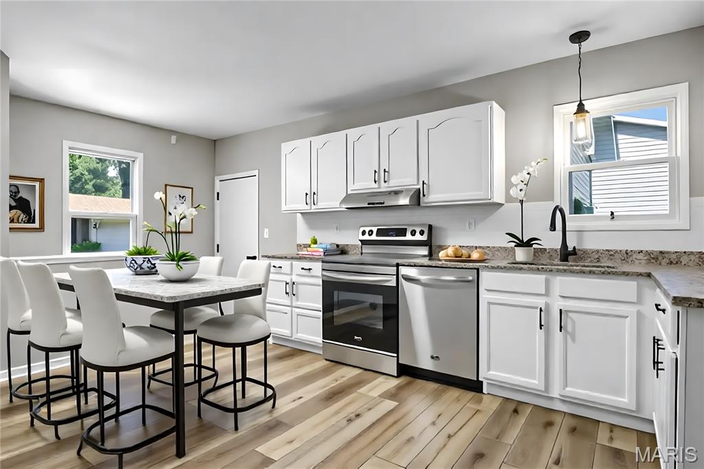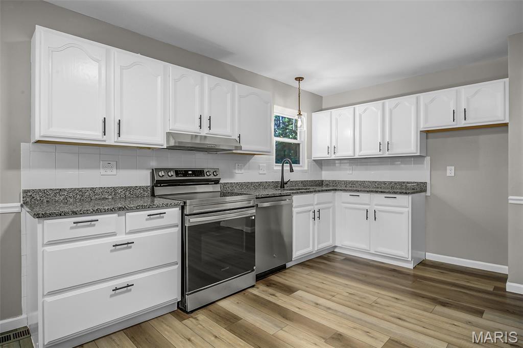 Step into this fully remodeled 3-bedroom, 1-bath home and discover a perfect blend of style, comfort, and modern living. The updated kitchen features granite countertops, new hardware, and sleek stainless steel appliances — ideal for cooking and entertaining. The newly remodeled bathroom and new wood-look LVP flooring throughout, including the bedrooms, give the home a fresh, cohesive feel. Modern two-panel doors, new baseboards, and updated lighting fixtures enhance the home’s inviting atmosphere, while the newly finished basement with its loft-style ceiling and recessed lighting creates a versatile space for work, play, or relaxation. Vinyl siding and windows add durability and low-maintenance appeal. Enjoy the outdoors in the nicely sized, fully fenced backyard — perfect for gatherings, pets, or quiet evenings. This home is move-in ready and designed to make your everyday life feel extraordinary. Don’t miss the chance to make it yours and start your next chapter here!