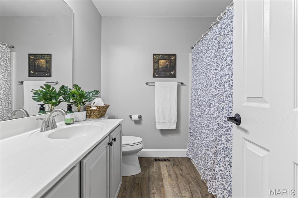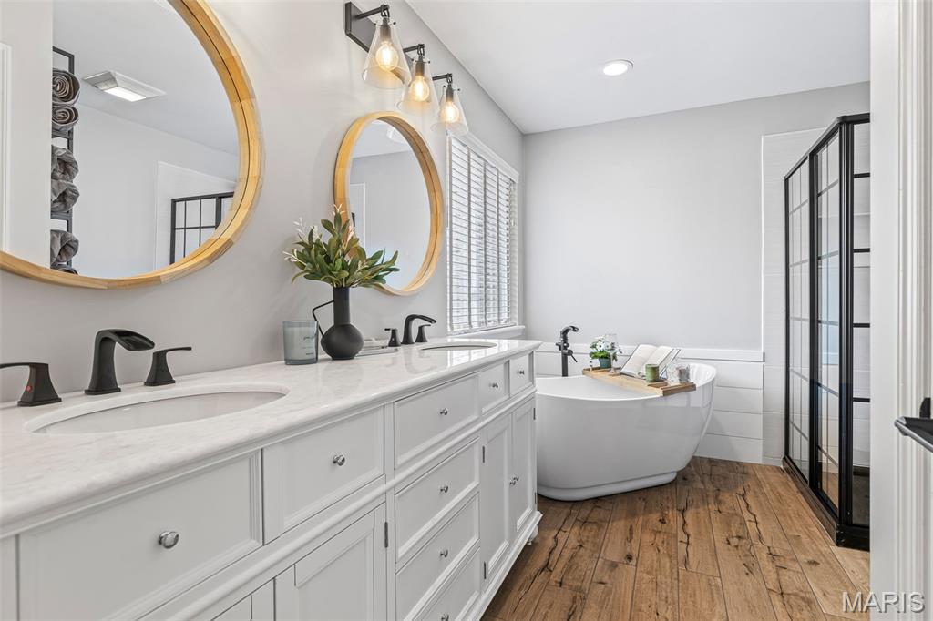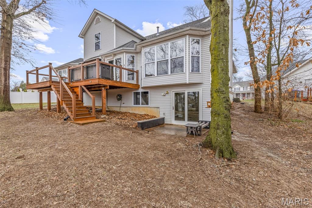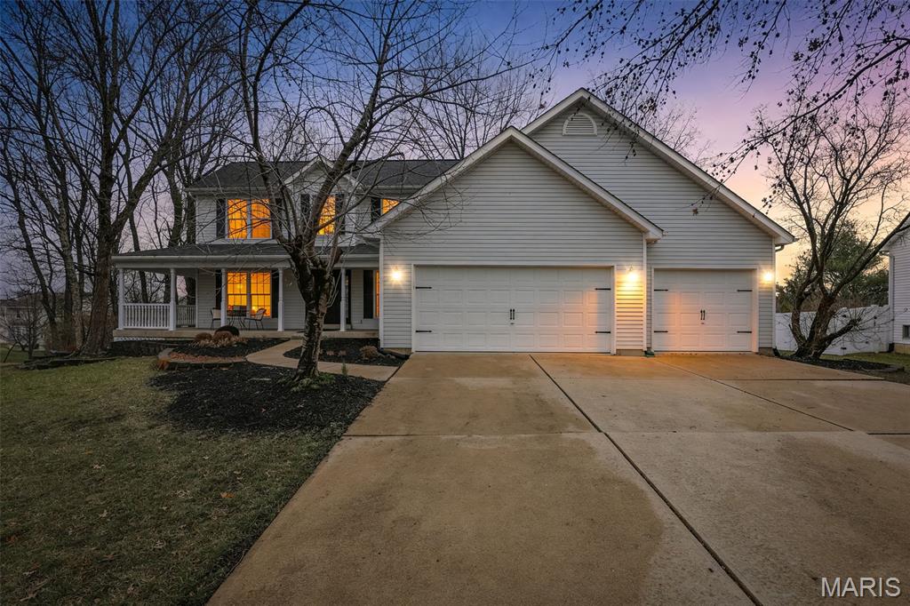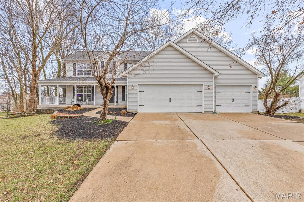 Spacious and beautifully updated 5-bedroom, 3.5-bath home in the highly desirable Fort Zumwalt West School District! Offering 2,600+/-sq ft above grade plus approximately 1,000+/- sq ft of finished LL living space, this home delivers the expansive living for today’s buyers. The kitchen features handcrafted concrete countertops, shiplap backsplash, wine/drink refrigerator, and SS appliances. Walk out the kitchen slider to a lovely deck featuring horizontal cable railing with stairs to the backyard. The main-floor primary suite provides convenience and privacy, with a large walk in closet, and a brand new luxurious retreat with double sinks, stand alone soaking tub, & a custom tiled shower with frameless neo-angle matte black grid doors. Upstairs you will find 3 bedrooms, two with walk-in closets, and an updated hall bathroom. The newly finished lower level features a recreation room, a bedroom and full bathroom — ideal for guests, multi-generational living, or a private office retreat. Completing the LL is a storage area/workshop. This home comes with a long list of updates (please see feature sheet for the full list) to include brand-new sliding glass doors, luxury primary bath, new LL bath, and numerous interior improvements throughout. Impressive curb appeal with established landscaping creates a welcoming exterior, paired with the convenience of a three car garage offering flexibility and ample storage. With generous room sizes, multiple living areas, and over 3,500 sq ft of total finished space, this home offers flexibility, function, and value in one of the most sought-after school districts. Entry cabinet included in sale. Wonderful location, close to shopping, parks, and 364. Please see feature sheet for upgrades.