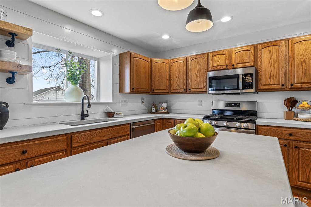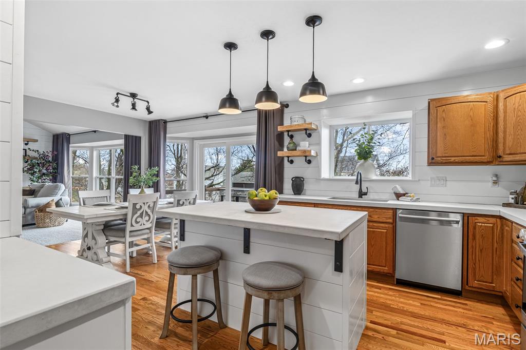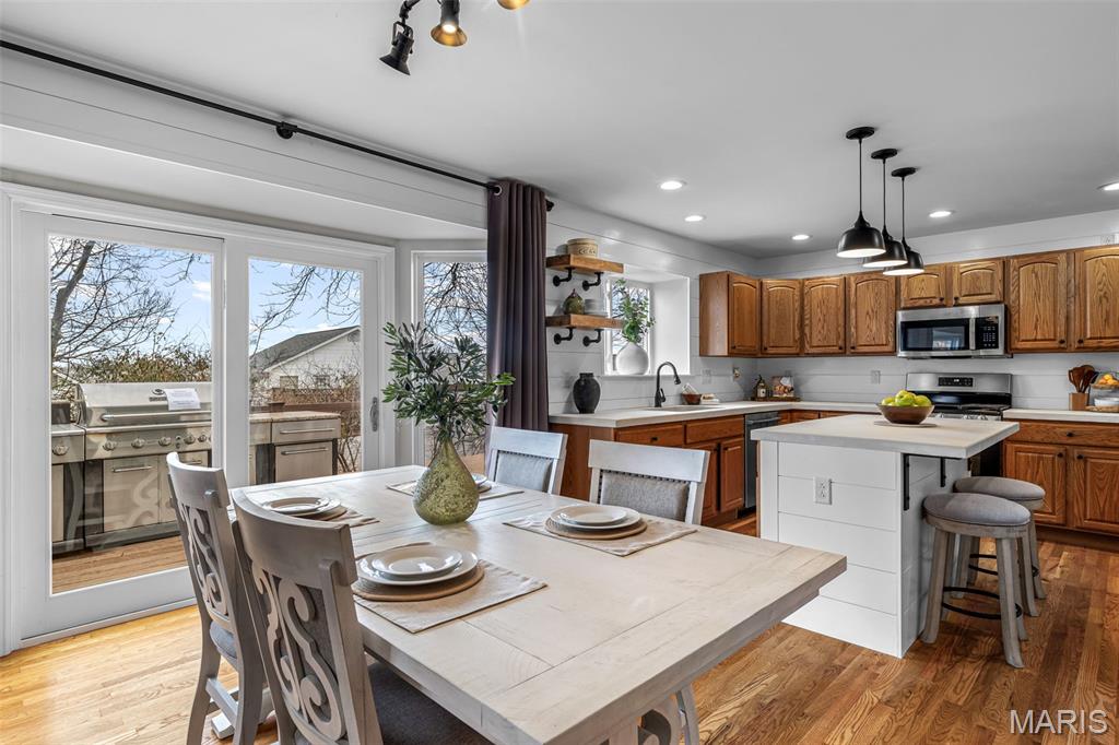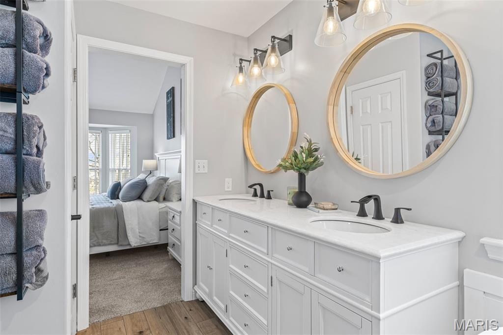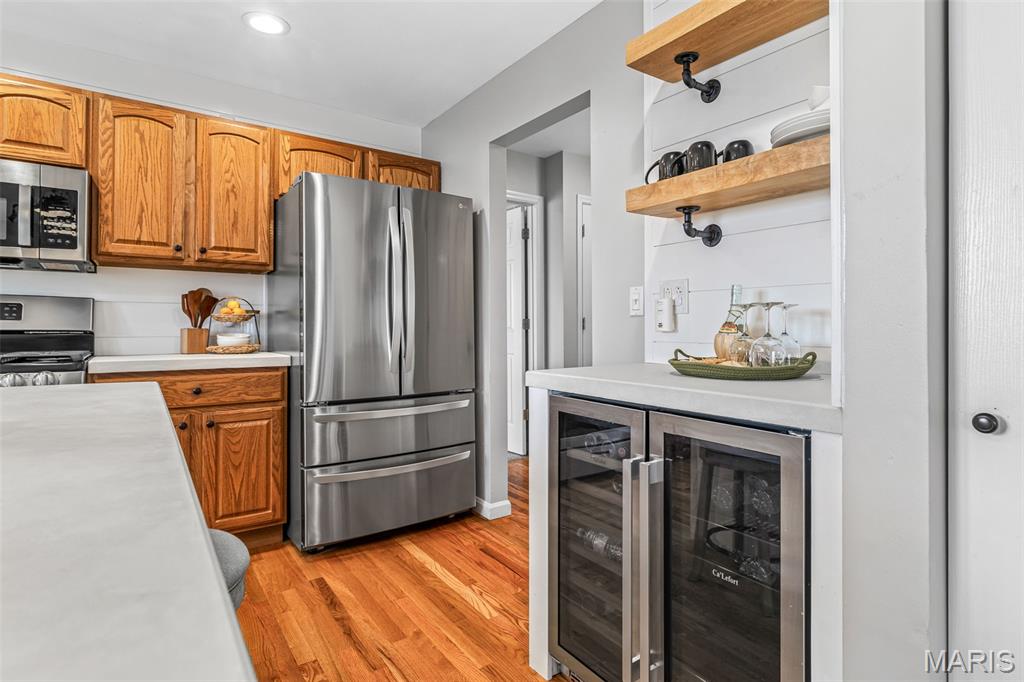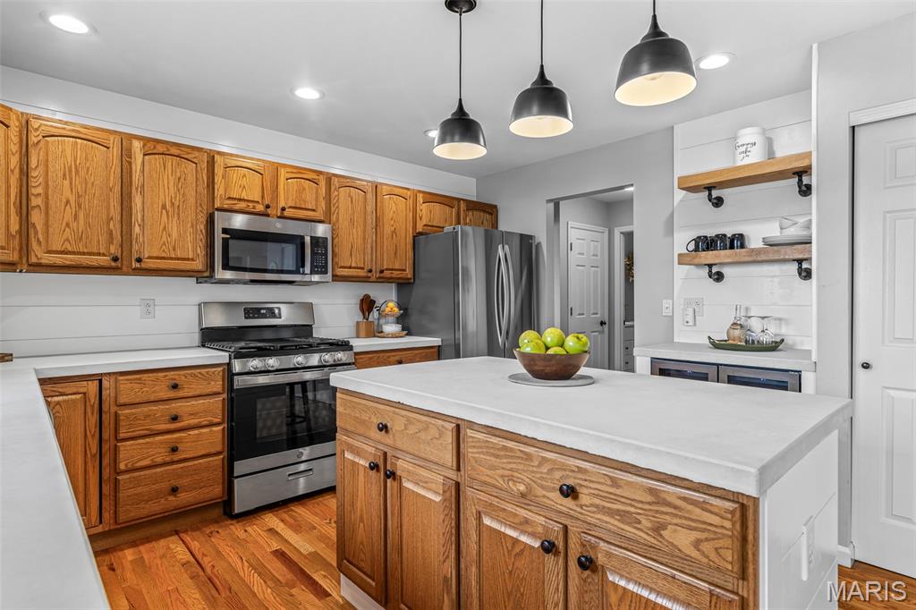 Spacious and beautifully updated 5-bedroom, 3.5-bath home in the highly desirable Fort Zumwalt West School District! Offering 2,600+/-sq ft above grade plus approximately 1,000+/- sq ft of finished LL living space, this home delivers the expansive living for today’s buyers. The kitchen features handcrafted concrete countertops, shiplap backsplash, wine/drink refrigerator, and SS appliances. Walk out the kitchen slider to a lovely deck featuring horizontal cable railing with stairs to the backyard. The main-floor primary suite provides convenience and privacy, with a large walk in closet, and a brand new luxurious retreat with double sinks, stand alone soaking tub, & a custom tiled shower with frameless neo-angle matte black grid doors. Upstairs you will find 3 bedrooms, two with walk-in closets, and an updated hall bathroom. The newly finished lower level features a recreation room, a bedroom and full bathroom — ideal for guests, multi-generational living, or a private office retreat. Completing the LL is a storage area/workshop. This home comes with a long list of updates (please see feature sheet for the full list) to include brand-new sliding glass doors, luxury primary bath, new LL bath, and numerous interior improvements throughout. Impressive curb appeal with established landscaping creates a welcoming exterior, paired with the convenience of a three car garage offering flexibility and ample storage. With generous room sizes, multiple living areas, and over 3,500 sq ft of total finished space, this home offers flexibility, function, and value in one of the most sought-after school districts. Entry cabinet included in sale. Wonderful location, close to shopping, parks, and 364. Please see feature sheet for upgrades.