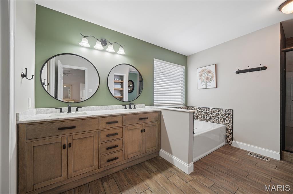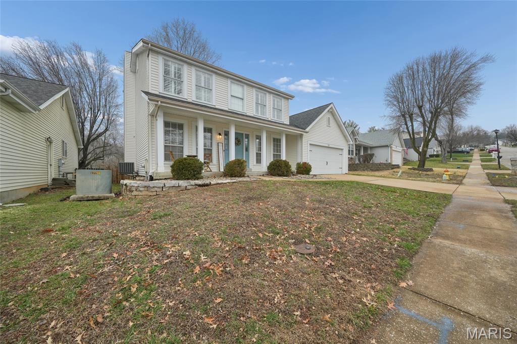 WELCOME HOME! This beautifully updated 2-story in the highly sought-after Rockwood School District, offering approximately 2,200 sq ft of thoughtfully designed living space in an unbeatable location. Framed by mature trees and vibrant landscaping, this home perfectly blends classic charm with today’s most desired updates. Inside, you’ll find sun-filled living spaces, luxury vinyl flooring, and fresh neutral paint throughout. The updated kitchen is truly the heart of the home, featuring 42” cabinetry, quartz countertops, tiled backsplash, stainless steel appliances, center island with breakfast bar, wine fridge, and pantry — all seamlessly opening to the inviting family room with a cozy wood-burning fireplace and bay window with plantation shutters. The main level also offers a formal dining room, sitting area, convenient half bath, laundry room, and mudroom with built-in lockers — designed for both everyday living and effortless entertaining. Upstairs, four spacious bedrooms and two full baths include a vaulted primary suite with walk-in closet and private ensuite boasting dual vanities, soaking tub, and separate shower. The lower level provides excellent potential for future finished living space. Enjoy HOA pool and clubhouse access, walk to parks, minutes to downtown Eureka events, top-rated schools, and easy highway access. This is the one buyers wait for.