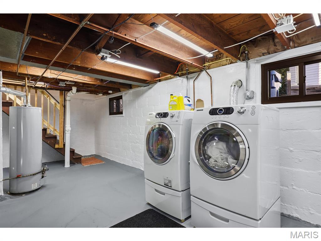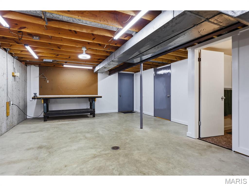 Welcome to 1057 Rockman Place in Rock Hill, Missouri—a beautifully renovated residence featuring three spacious bedrooms, three full bathrooms, and a two-car garage. Enjoy peace of mind thanks to numerous quality upgrades and renovations completed from 2024 to 2026. The primary suite on the main floor offers a private bathroom and stunning hardwood floors. The kitchen is a chef’s dream, with 42-inch painted cabinets, butcher block countertops, stainless steel appliances, recessed lighting, hardwood floors, a walk-in pantry, and a new window above the sink. Highlights include pre-finished oak floors in the hallway and rear bedrooms, new 3-panel doors and hardware, double sliding closet doors, stained glass windows in the living room, and ceiling fans in every bedroom and the living room. The oversized two-car garage features an insulated door, keyless entry, pull-down attic access, and an additional door leading to the fenced backyard. Perfect for entertaining, it includes an expansive 23x20 concrete patio and a double-wide driveway for extra parking. Key updates include a new roof, gutters, and downspouts (2025), 200-amp electrical service and A/C (2024), along with upgrades to the kitchen, bathrooms, interior doors, and hardwood floors. The previous owner upgraded the plumbing, and the water and sewer lines have been updated by MSD. The lower level can easily be transformed into a rec room, a fourth bedroom, or workout space, and already includes some drywall and a full bath. Refrigerator, washer, and dryer remain at no extra charge. Located just steps from parks, shops, and restaurants, this move-in-ready home has already passed Rock Hill occupancy inspection and is an opportunity you won't want to miss! Please see Special Features sheet which provides the extensive list of upgrades completed 2024-2026.