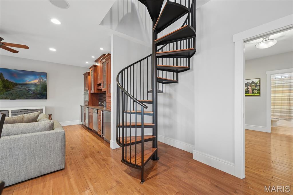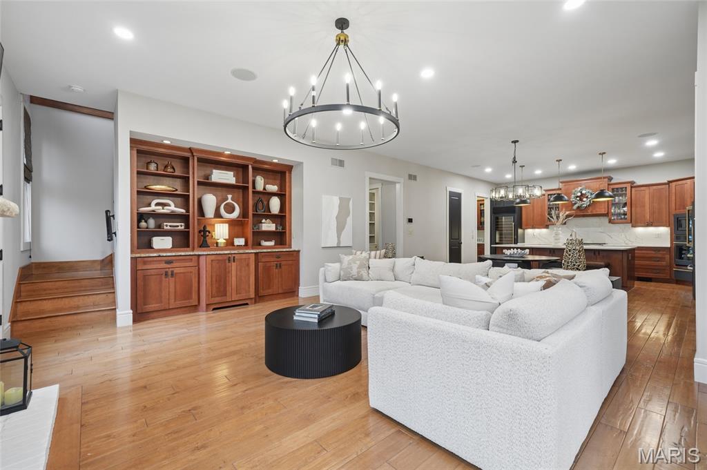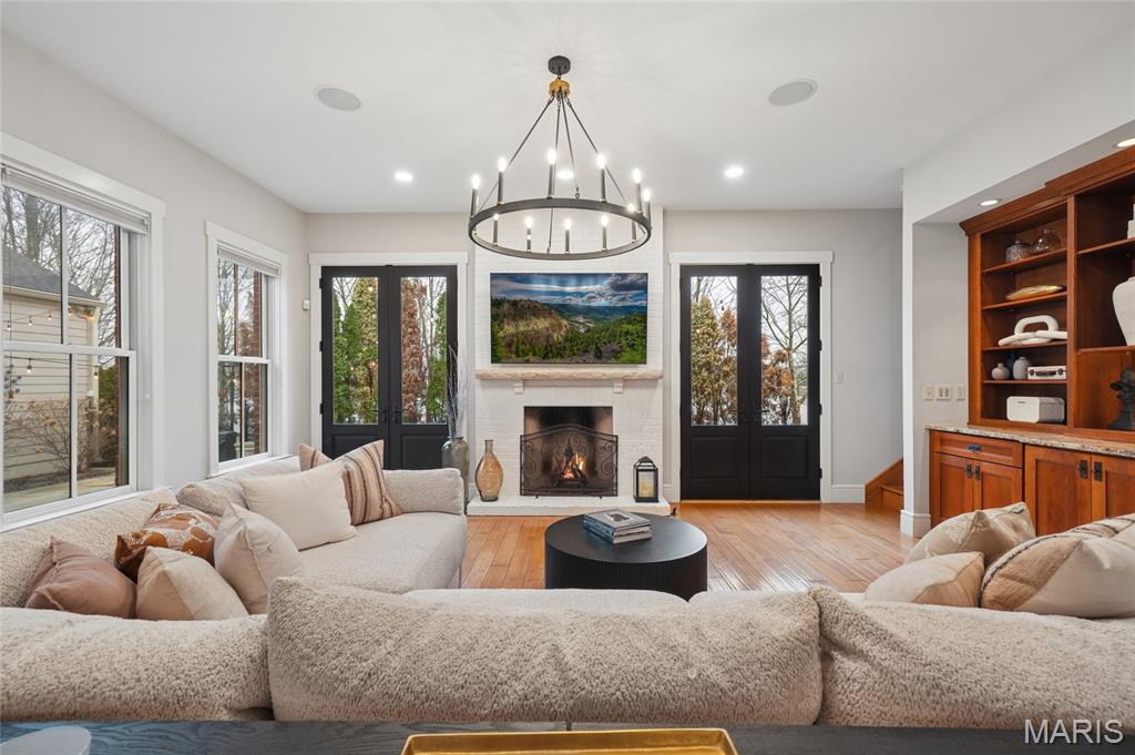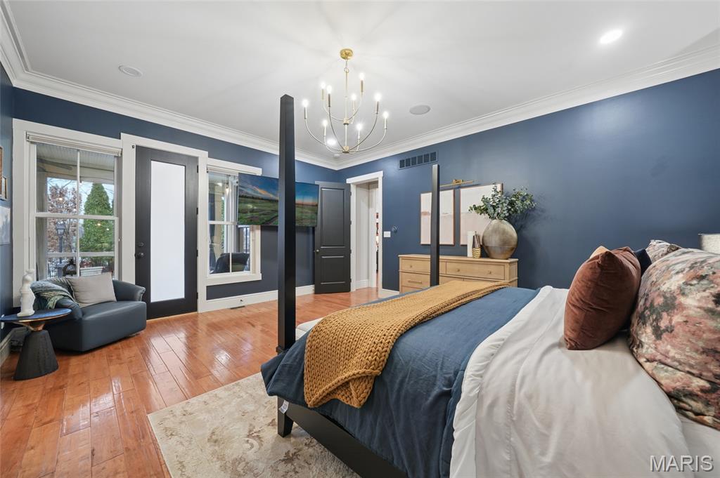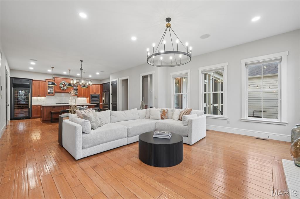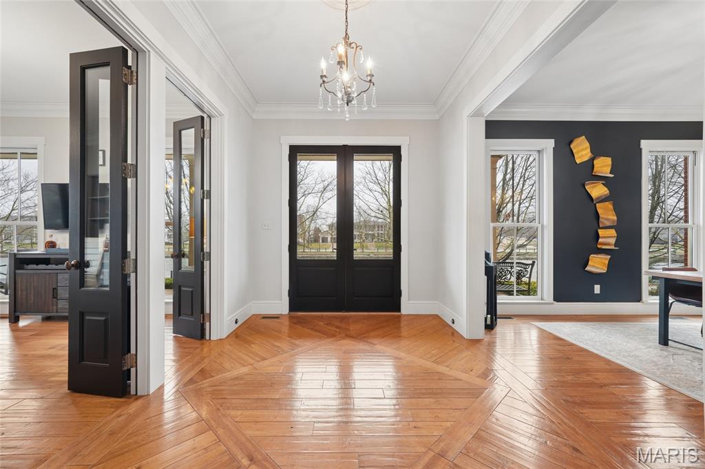 Set on a premier corner waterfront lot, this iconic New Town residence captures some of the finest views in the area. From its double wrap-around porches and private patio to the signature third-floor panoramic sunroom, waterfront and neighborhood vistas unfold in every direction. Recognized for its grand architecture and signature crow’s nest, this custom-built home has long been one of the community’s most admired properties. Take advantage of the rare opportunity to own one of New Town’s true landmark residences. Inside, timeless craftsmanship meets modern luxury. Rich hardwood flooring, fresh millwork, 10’ main-floor ceilings, and updated paint and fixtures set an elegant tone. The great room impresses with built-ins and a beautifully refreshed fireplace. At the heart of the home is a gourmet kitchen made for hosting—complete with custom cabinetry, quartz countertops, Butler’s pantry, center island, wine fridge, and an all-new 2025 Cafe appliance suite including built-in refrigerator, dishwasher, wall oven, warming drawer, and 5-burner gas cooktop. The main-floor primary suite is a serene retreat featuring heated floors, a luxurious marble shower, soaking tub, double vanities, and an oversized walk-in closet. Upstairs, a spacious loft with wet bar, flex space, three bedrooms, two full baths, and a full laundry room offer outstanding functionality. The finished lower level adds even more versatility with three additional finished rooms and a full bath. Outdoors, relax on the screened-in porch or enjoy the peaceful waterfront backdrop from your private patio. A rare 4-car garage with an additional 5th parking pad and EV charger. 4-zone heating system, and laundry hookups on multiple levels every elevate convenience and comfort. What truly sets this home apart is how seamlessly it blends with the vibrant lifestyle of New Town—a community that feels like a little piece of a southern beach town tucked into the Midwest. Here, every day feels like a getaway. Residents enjoy multiple pools (including a lazy river), scenic lakes for fishing and kayaking, sand volleyball courts, walkable restaurants and a neighborhood market, and year-round events and parades that bring the streets to life—often passing right by your front door. It’s a golf-cart community designed for connection, charm, and the kind of everyday moments that feel anything but ordinary. With its iconic architecture, unmatched views, and the best of New Town living woven into every detail, this home is truly one of a kind.
