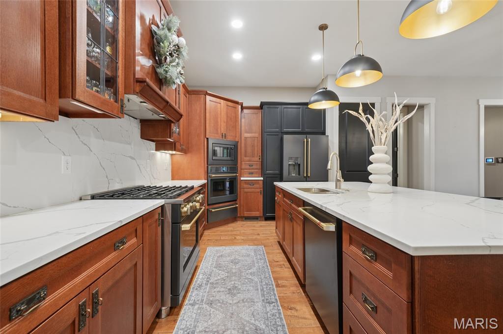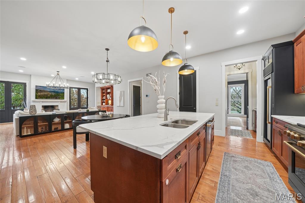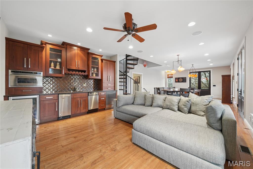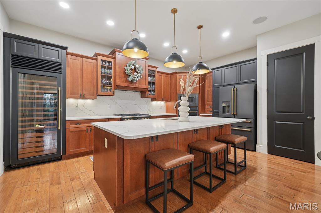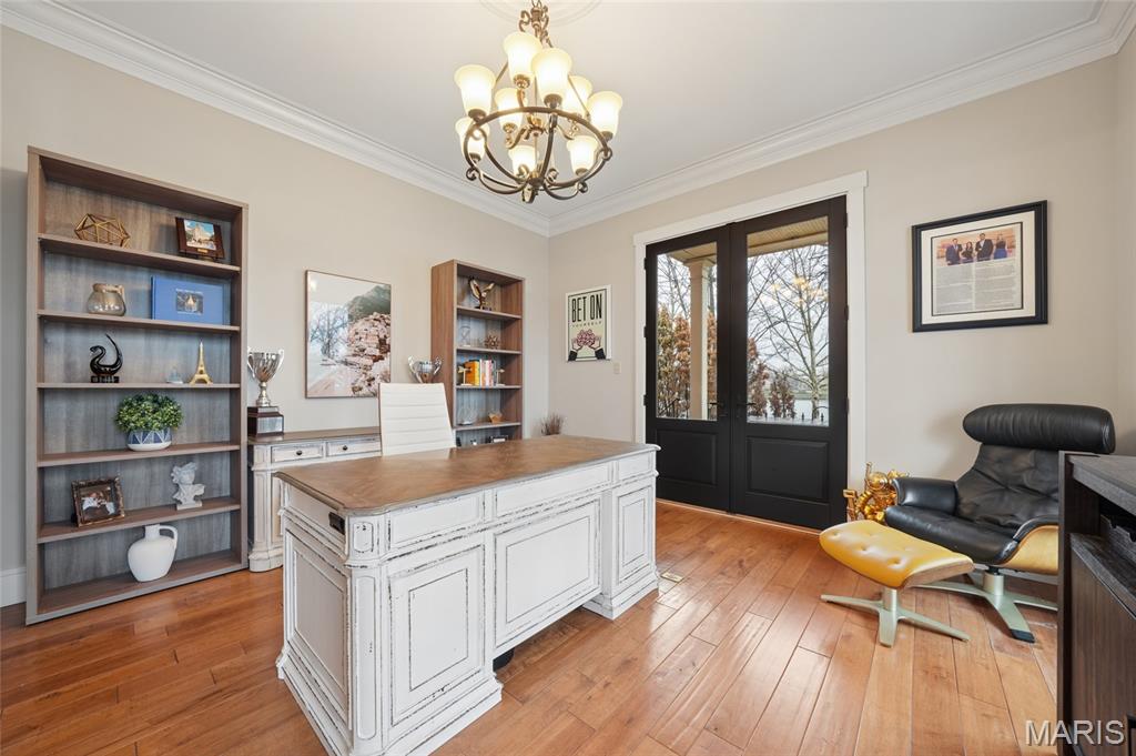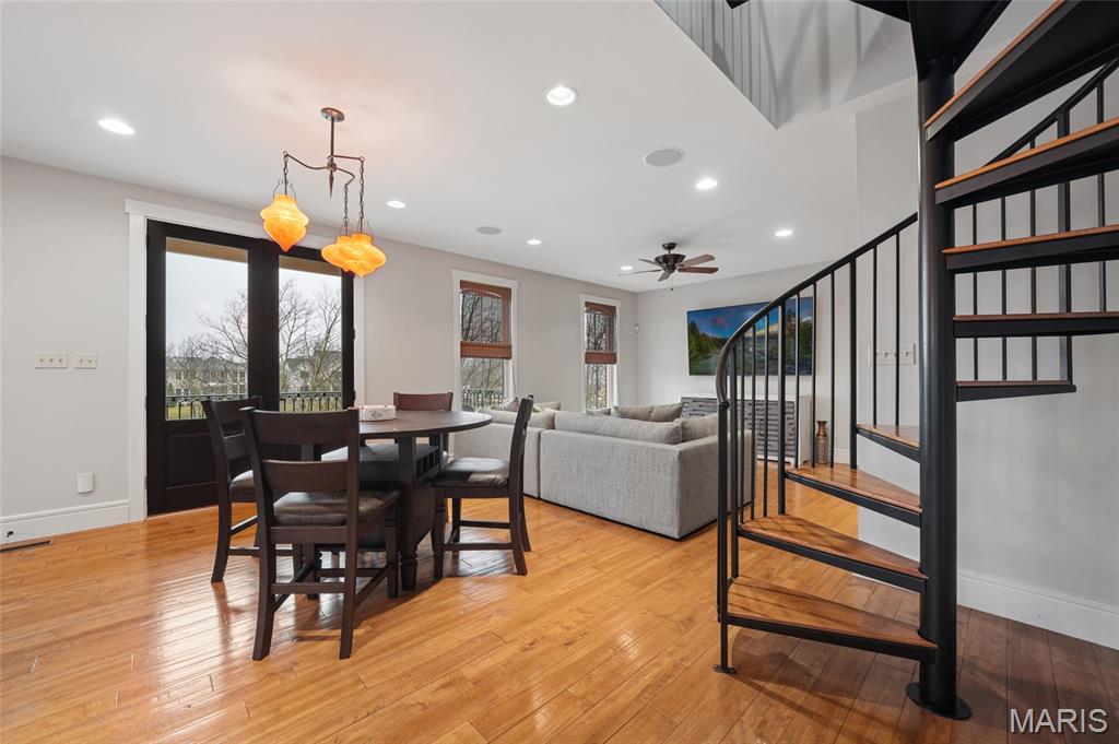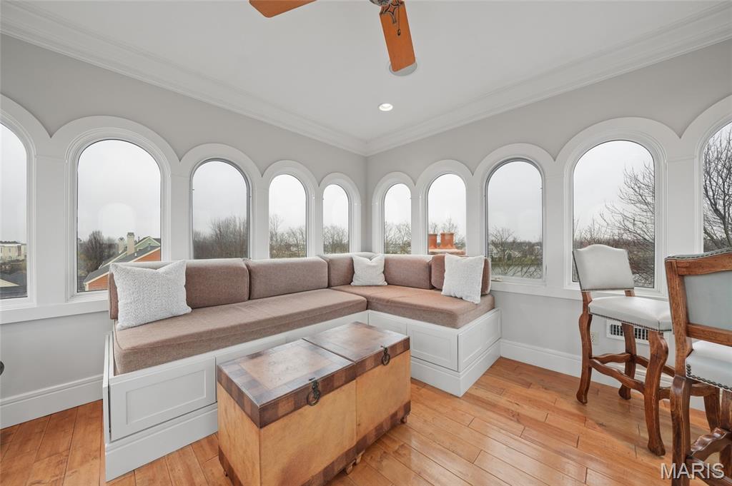 Set on a premier corner waterfront lot, this iconic New Town residence captures some of the finest views in the area. From its double wrap-around porches and private patio to the signature third-floor panoramic sunroom, waterfront and neighborhood vistas unfold in every direction. Recognized for its grand architecture and signature crow’s nest, this custom-built home has long been one of the community’s most admired properties. Take advantage of the rare opportunity to own one of New Town’s true landmark residences. Inside, timeless craftsmanship meets modern luxury. Rich hardwood flooring, fresh millwork, 10’ main-floor ceilings, and updated paint and fixtures set an elegant tone. The great room impresses with built-ins and a beautifully refreshed fireplace. At the heart of the home is a gourmet kitchen made for hosting—complete with custom cabinetry, quartz countertops, Butler’s pantry, center island, wine fridge, and an all-new 2025 Cafe appliance suite including built-in refrigerator, dishwasher, wall oven, warming drawer, and 5-burner gas cooktop. The main-floor primary suite is a serene retreat featuring heated floors, a luxurious marble shower, soaking tub, double vanities, and an oversized walk-in closet. Upstairs, a spacious loft with wet bar, flex space, three bedrooms, two full baths, and a full laundry room offer outstanding functionality. The finished lower level adds even more versatility with three additional finished rooms and a full bath. Outdoors, relax on the screened-in porch or enjoy the peaceful waterfront backdrop from your private patio. A rare 4-car garage with an additional 5th parking pad and EV charger. 4-zone heating system, and laundry hookups on multiple levels every elevate convenience and comfort. What truly sets this home apart is how seamlessly it blends with the vibrant lifestyle of New Town—a community that feels like a little piece of a southern beach town tucked into the Midwest. Here, every day feels like a getaway. Residents enjoy multiple pools (including a lazy river), scenic lakes for fishing and kayaking, sand volleyball courts, walkable restaurants and a neighborhood market, and year-round events and parades that bring the streets to life—often passing right by your front door. It’s a golf-cart community designed for connection, charm, and the kind of everyday moments that feel anything but ordinary. With its iconic architecture, unmatched views, and the best of New Town living woven into every detail, this home is truly one of a kind.