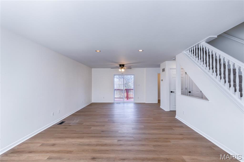Live close to the action without living in the middle of it. This 3-bedroom, 4-bath townhome in University City offers an open floor plan with fresh LVP flooring, updated lighting, fresh paint, and an easy-flow main level. Walk into a large living and dining area that opens to a deck, creating the perfect backdrop for summer evenings. The eat-in kitchen features stainless steel appliances, new countertops, and classic white cabinetry — clean, bright, and ready for your favorite recipes. The powder room and attached garage round out the main level. Upstairs, the primary suite includes two closets and a double-sink en suite bath, while two additional bedrooms and a clean full bath. The finished walk-out lower level gives you bonus living space plus patio access and another half bath — ideal for guests or game day gatherings. Set at the end of a cul-de-sac just minutes from U. City’s newest development and dining, this home delivers both privacy and proximity. Move-in ready and waiting for its next chapter.