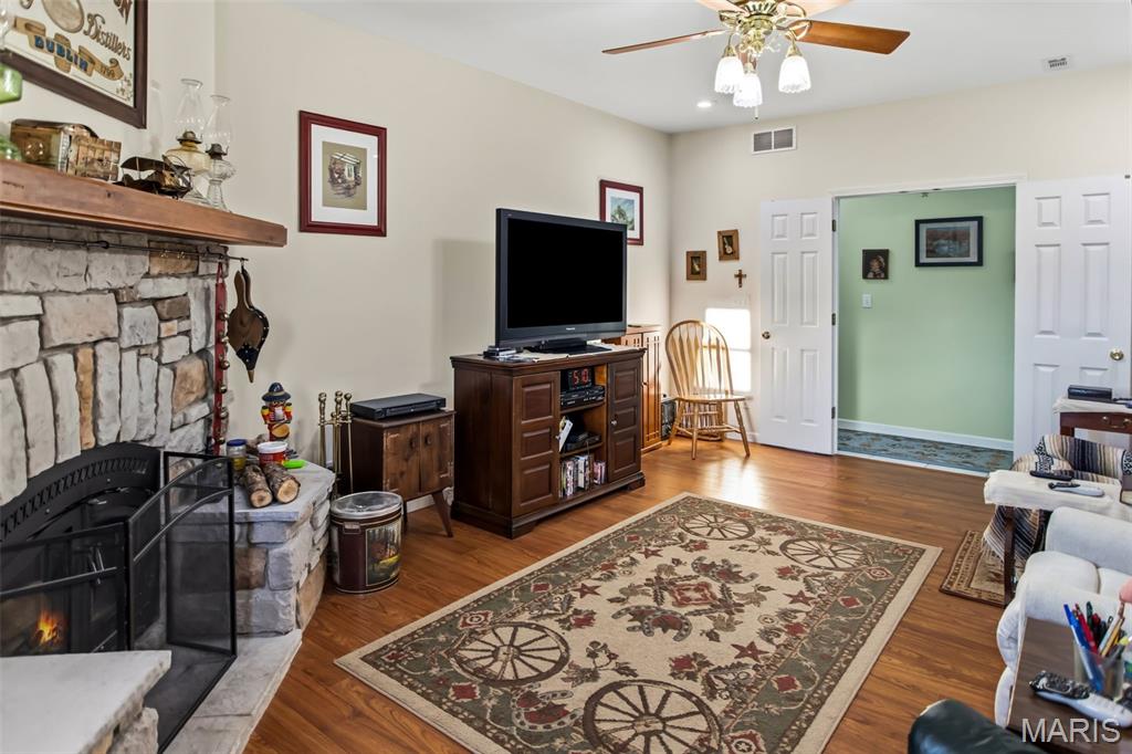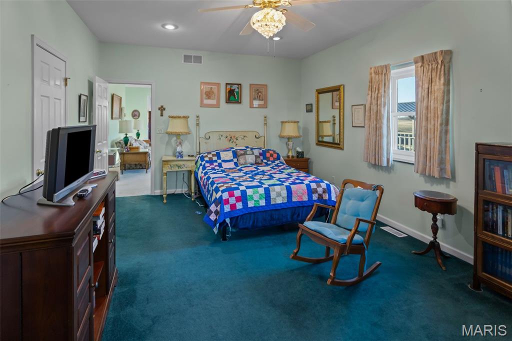 One-of-a-Kind Country Estate in the Rolling Hills of Calhoun County, Illinois. If you’ve been searching for breathtaking views, space to roam, and a property built with intention and quality — this is it. Nestled in the heart of Calhoun County, this former operating farm offers a rare combination of a custom-built primary home, a second residence, and an impressive lineup of functional outbuildings — all surrounded by the stunning rolling hills the area is known for. Custom-Built Main Home (2007) built to last and thoughtfully designed, this spacious 5-bedroom home offers: 9-foot ceilings throughout, two primary suites, each with private bathrooms, cultured marble countertops in both bathrooms, beautiful cherry kitchen cabinetry, eat-in kitchen plus a separate formal dining room, walk-in pantry, new refrigerator & dishwasher, quality Andersen windows, 11-inch thick exterior walls with 2 inches of foam insulation, cozy den with a fireplace, abundant storage and walk-in closets in every bedroom, one bedroom currently used as a home office, one-car attached garage, and secure concrete crawlspace. Every detail reflects a well-planned build focused on longevity, efficiency, and comfort. Second Home (Built 1948). This additional brick residence offers incredible flexibility: 3 bedrooms, 1 bath, sunroom, eat in kitchen, separate dining room, living room, mud room, and a large unfinished basement. Perfect for a mother-in-law suite, guest house, long-term rental, or Airbnb opportunity. Former Operating Farm is ready for Your Vision. Whether you're looking to run cattle, board horses, create a hobby farm, or live more self-sufficiently, this property is set up and ready. Outbuildings include: 40’ x 50’ barn, 18’ x 30’ granary, Machine shed, Corn crib, Wood shed, Blacksmith shop, Office Building, additional garage, 36’ x 36’ outbuilding, 45’ x 20’ machine shop, Chicken coop, hay shed, and additional outbuildings. Panel Saw will convey. The property also features fruit and nut trees, adding to the self-sustaining potential and country charm. This is more than a home — it’s a lifestyle. Space, views, functionality, and opportunity all wrapped into one truly unique Calhoun County property. If you’ve been dreaming of country living with room to grow, this is your chance.