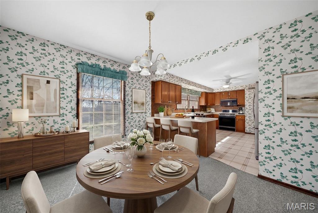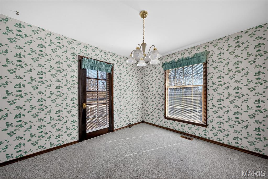 You are going to FALL IN LOVE with the potential of this estately home situated on over 3/4 acre circle cul-de-sac lot in a great St. Charles location! Three bedrooms with a possible main floor 4th bedroom, 2.5 baths, oversized 2 car garage, over 2400+ sq ft & a .830 acre premium lot with mature trees, this home is going to blow you away! As you step in the two-story entry foyer you will notice the soaring ceiling, large living room & separate dining room. Kitchen that could be fit for the Chef of the family with a stainless steel refrigerator, an electric stove/oven, microwave, dishwasher & tile backsplash. The family room is going to be your favorite room in the house! Step down but look up at the floor-to-ceiling brick fireplace with gas logs, bar that is set for entertaining, vaulted ceiling with wood beams, bay window & french doors that walk right out to the huge wood deck overlooking the massive private park like backyard! There is a possible main floor 4th bedroom, or you could use it as a work-from-home office, den, study, playroom - you choose! Upstairs you will find three large bedrooms with two bathrooms, all with lots of bright, cheery light that will make you smile. The walk-out lower level is unfinished & ready for your vision to come to life with future equity gains & additional total living area. Architectural shingle roof that is 5 years new, newer vinyl siding, high-efficiency HVAC installed in 11/2024 & desirable Anderson wood windows. This home is a GEM & its bones are solid! This one is going to sell fast, so schedule your appointment for your private showing today.