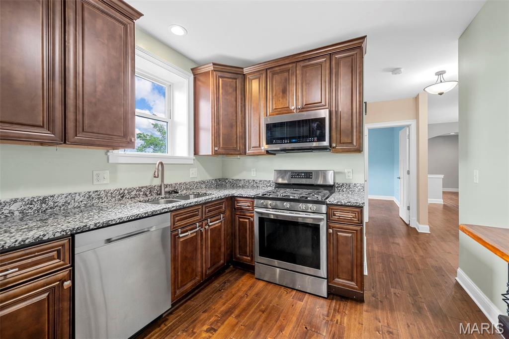Great opportunity to own a flexible income-producing property in the heart of Dogtown just minutes from Forest Park and close to restaurants, highways, and major St. Louis attractions, including Washington University and the St. Louis Zoo. This beautifully updated duplex is zoned for three families, offering excellent potential for investors or owner-occupants looking to offset their mortgage with rental income. Each unit features 2 bedrooms and 1 full bath, high ceilings, granite countertops, hardwood floors, and fully updated plumbing and electrical systems and new HVAC. Both units include bright sunrooms with new hardwood flooring, ideal for a home office, reading nook, or additional living space—perfect for today’s remote work lifestyle. Units offer separate utilities and two dedicated laundry areas, providing convenience for both occupants. Property also includes one off-street parking space plus a spacious two-car garage with unfinished apartment space above, presenting potential for future additional income or expanded living space. Ideal for house-hackers living in one unit while renting the other, investors seeking a strong rental property, or buyers interested in living in the property as a spacious single-family home. A prime blend of historic charm and modern upgrades—ideal for owner-occupants or savvy investors alike!