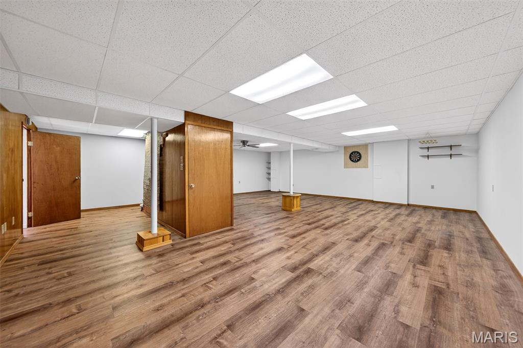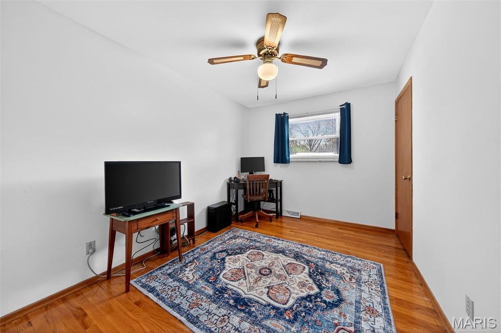 Welcome to this all-brick ranch offering single-level living plus a spacious finished lower level — over 1,900 SF of comfortable space. The home includes 4 bedrooms, 3 full baths, warm hardwood floors, and a 2-car garage. A large eat-in kitchen opens to a covered patio and level, fully fenced yard with a shed — ideal for entertaining, kids, and pets. The versatile lower level adds living space for a media room, recreation area, or guest suite with a full bath, plus ample storage. Convenient to schools, shopping, and parks, this home combines classic durability with everyday comfort. Recent updates: new HVAC (2023), upgraded 200-amp electrical panel (2022), new water heater, stove, kitchen refrigerator, garbage disposal and faucet (2021). Bonus: Kitchen and basement refrigerators, washer and dryer all stay with the home!
