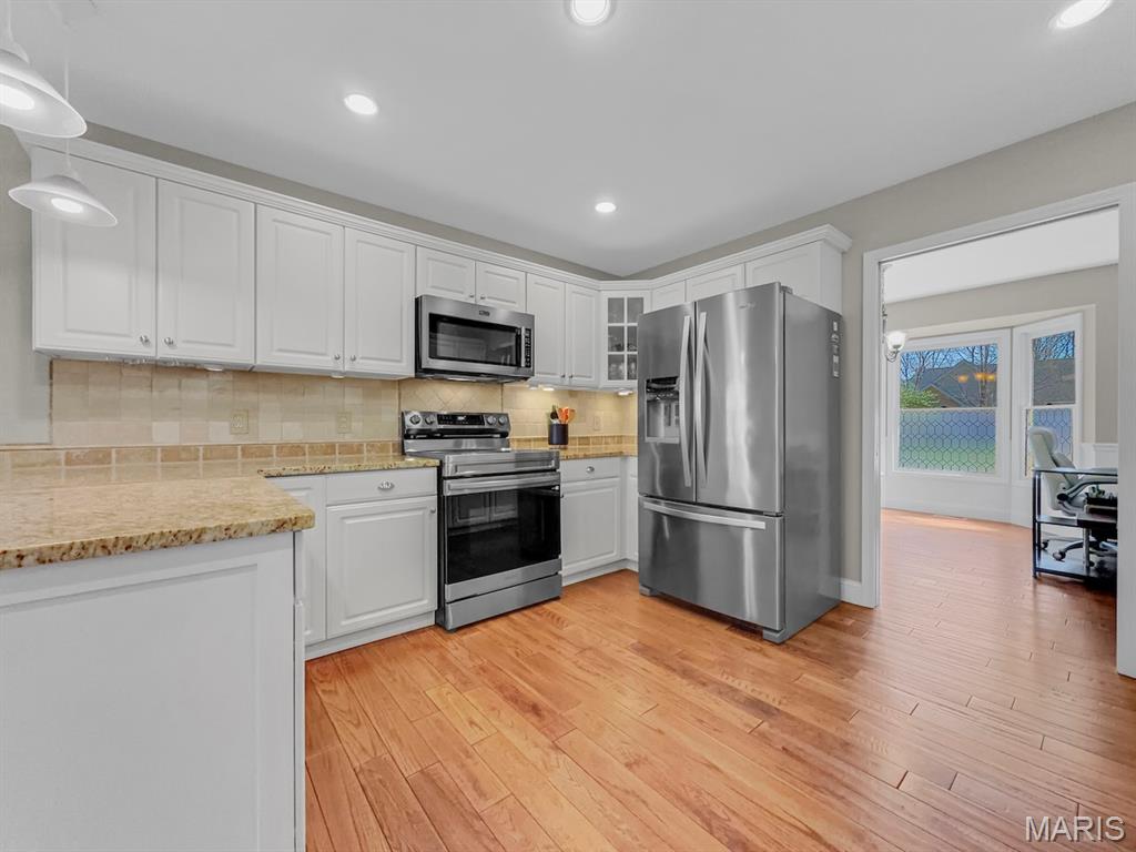 Living is easy on Easy Street, where comfort, convenience, and scenic golf course views come together in this beautifully maintained ranch home located in the sought-after Raintree Plantation community. The main level offers approximately 1,600 square feet with an open, functional layout highlighted by vaulted ceilings, abundant natural light, and expansive windows that showcase the golf course views. The spacious living area flows seamlessly into the well-appointed kitchen featuring granite countertops, updated finishes, and a comfortable dining space—creating an ideal setup for both everyday living and entertaining. The main floor includes a primary suite with vaulted ceilings, private balcony access, and a well-appointed bath, designed for comfort and relaxation. Major updates have already been completed, including newer roof, siding, windows, fresh paint, and updated bathrooms, providing peace of mind and a true move-in ready experience. Step outside to one of the home’s most impressive features—a multi-level outdoor living space designed for both relaxation and entertaining, featuring an expansive deck, screened-in porch, and lower patio overlooking the golf course with no rear neighbors. The finished walkout lower level adds exceptional additional living space, including additional bedrooms, a full bath, a dedicated media room—perfect for movie nights or game day—as well as a spacious recreation area where the pool table is included, making it ready for entertaining from day one, along with additional storage space. Additional highlights include a spacious 3-car garage, mature landscaping, and a setting that truly sets this home apart from others in the neighborhood. Located in Raintree Plantation, residents enjoy access to a private lake, golf course, beach, clubhouse, and gated community amenities, offering a lifestyle that blends recreation and relaxation while still being conveniently located to everyday needs. If you’ve been looking for a home where the setting, updates, and lifestyle come together effortlessly—this is it.