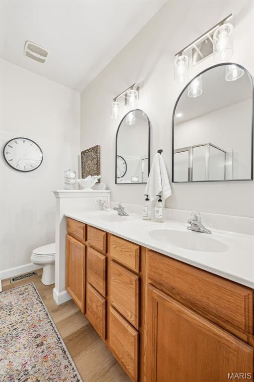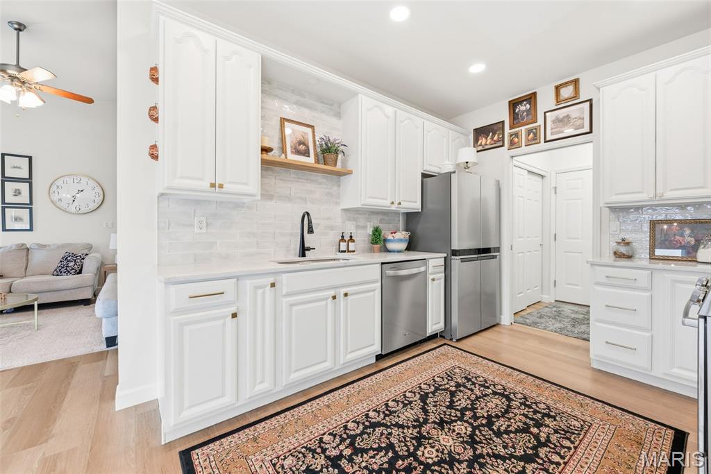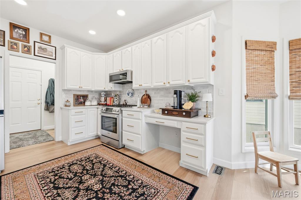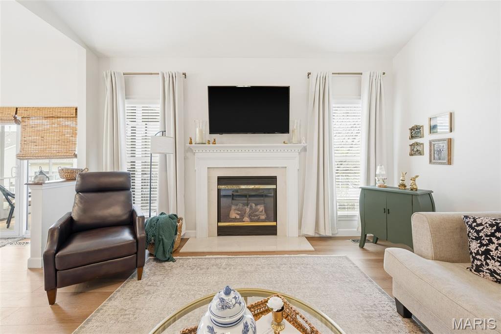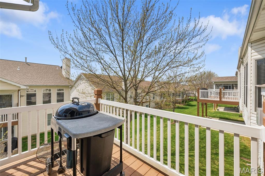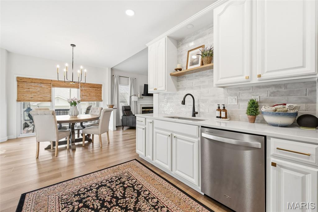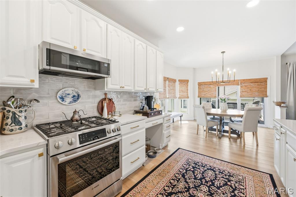 Beautifully updated three bedroom, three bath villa in desired Saint Andrews Village! Many improvements made three years ago to include LUXURY VINYL PLANK flooring on both main and finished lower levels. Beautifully improved kitchen with GORGEOUS QUARTZ COUNTERTOPS, elongated, subway tile backsplash, painted 42"white cabinetry and high-end appliances to include 5 BURNER BOSCH STOVE (only 6 months old)! Open concept floor plan with vaulted great room dining room areas! Great room features bricks surround GAS FIREPLACE! Spacious breakfast room with bay window leads to screened in porch area with the adjoining open deck area for barbecues! Spacious primary suite with four window bay and vaulted coffer ceiling. Luxury primary bath features, whirlpool, soaking tub, separate shower and double bowl vanity with double mirrors. Upgraded lighting fixtures! Professionally finished walk out lower level with huge family room w/2nd GAS FIREPLACE - perfect for entertaining. Lower level also features "party kitchen" with weT bar, built-in microwave and refrigerator! Third bedroom and third full bath plus tons of storage complete lower level. Come relax and enjoy carefree lifestyle with neighborhood walking trails plus convenient location to local shopping, highways, airport & entertainment.