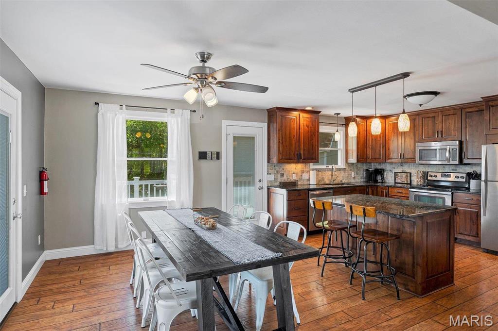 MOTIVATED SELLER! Enjoy Heavenly Views at 7th Heaven Guesthouse! 7th Heaven provides one of the most popular Guest House experiences in Hermann, offering up to 12 ppl accommodations. An active Guest House on Airbnb & VRBO, this vacation rental is zoned for a quick turnkey continued rental or primary residence for the growing family. The home offers 5 beds & almost 5 baths, over 3,300 total SF, Quartz Kitchen Counters, dual water heaters, fully furnished (interior & exterior) BRAND NEW HVAC & reserved mostly weekends with great income! The guests have raved about their stays, extra large spaces, multiple entertaining areas, cozy beds & "THAT VIEW" off the huge deck, a courtyard perfect for group games, superior cleanliness & attention to detail. TWO living areas & dining spaces make for great group gathering featuring 2 entry options. STEPS FROM THE ACTION & A MUST SEE!! Situated on almost a .50 AC lot at the end of 7th St & backs up to wooded property. CALL TODAY TO BE A NEW VACATION RENTAL HOST!