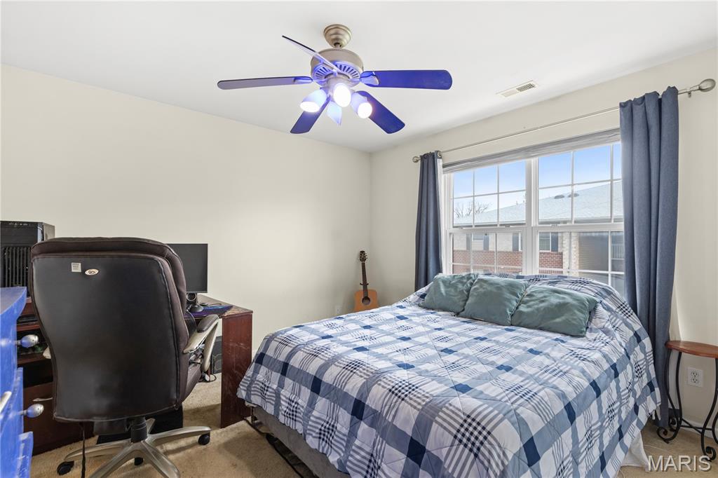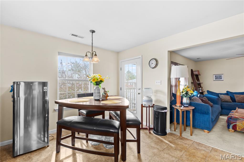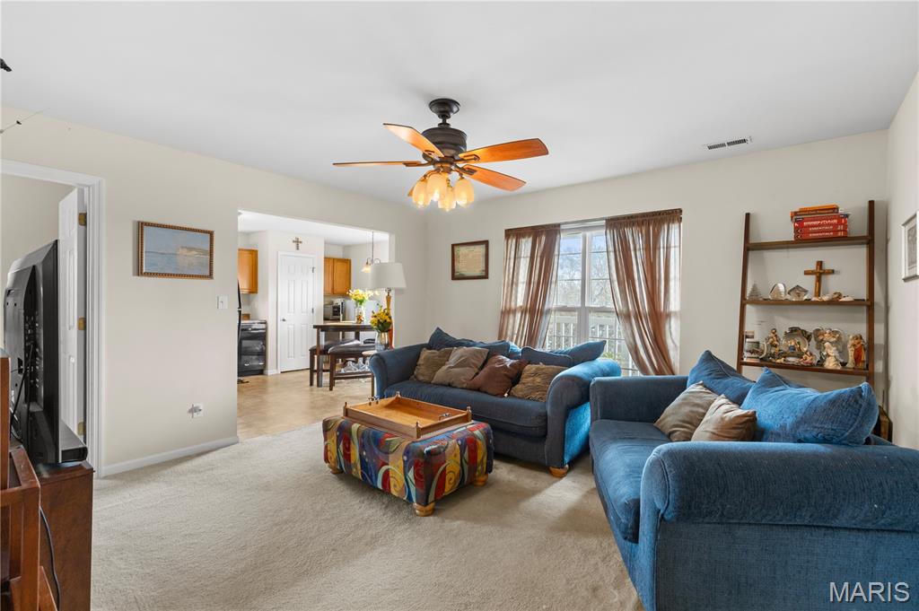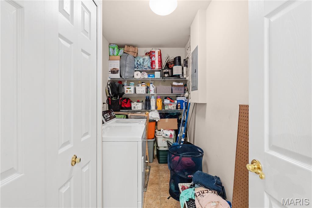 Bright and inviting 2-bedroom, 2-bath second-floor condo featuring a desirable split-bedroom layout and open floor plan, perfect for comfortable living and entertaining. Enjoy an abundance of natural light throughout, along with an eat-in kitchen complete with pantry and direct access to your own private balcony—ideal for morning coffee or relaxing evenings. The spacious primary suite offers a walk-in closet and full en-suite bath, while the second bedroom enjoys convenient access to a guest bathroom with shared hall entry—perfect for visitors or flexible living arrangements. A separate laundry room adds everyday convenience, complete with extra storage and a utility closet. This home also includes a dedicated covered parking space. Ideally located near shopping, dining, and with quick access to I-70, this condo offers both comfort and accessibility. Being sold as-is, with repairs needed to the primary bathroom subfloor and shower—priced accordingly and full of potential for the right buyer!