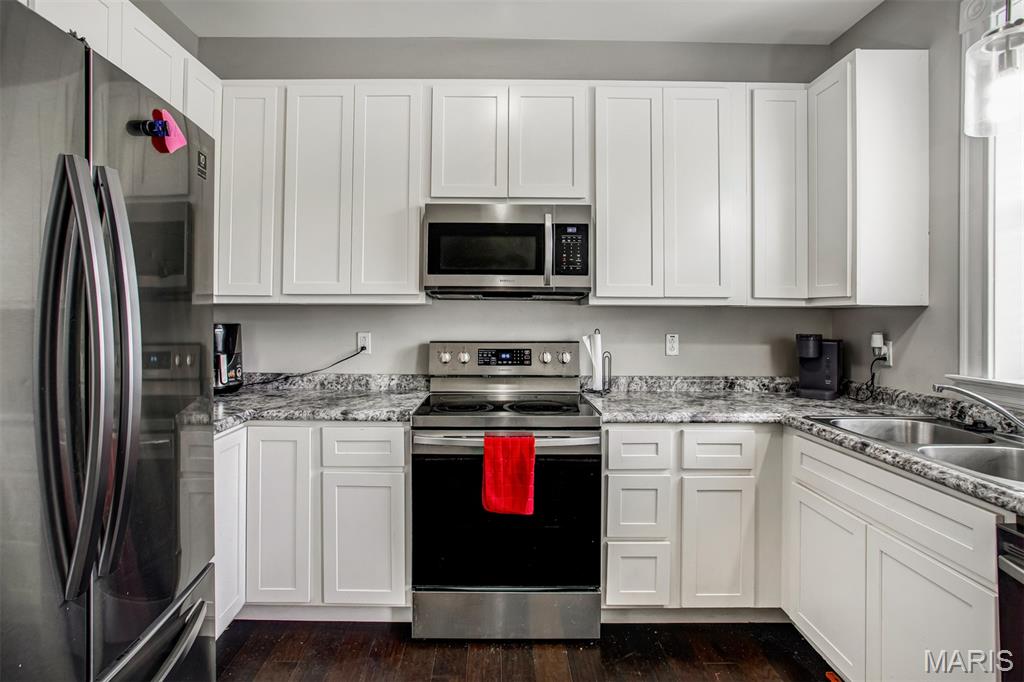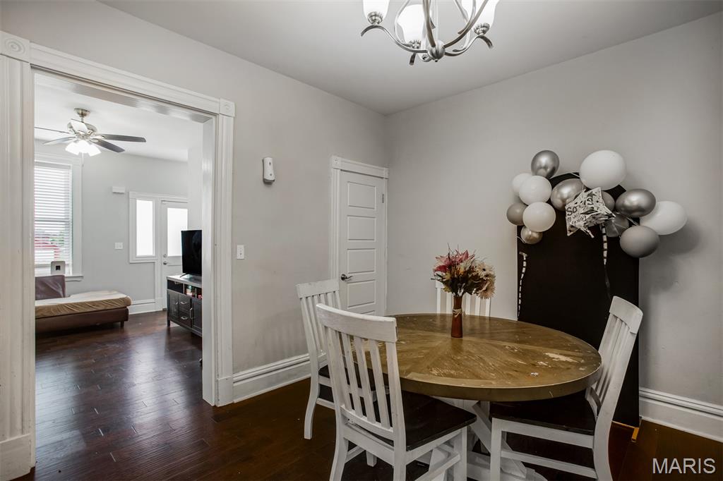 Welcome home! Beautifully updated 3-bedroom, 2-bath townhome with over 1,400 sq ft of living space. Renovated within the last five years, enjoy peace of mind with newer HVAC, plumbing, electrical, roof, water heater, tuckpointing and windows. The main level features a large living room, separate dining area, engineered hardwood floors and a custom eat-in kitchen with stainless steel appliances, A full bathroom completes the main floor. Upstairs, you'll find three generously sized bedrooms and a second full bath. The walk out basement includes a laundry/utility area with plenty of storage. Outside, you'll find a large backyard with a patio and a one-car parking pad.