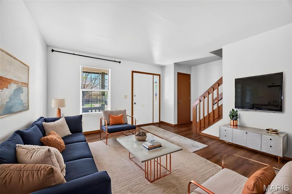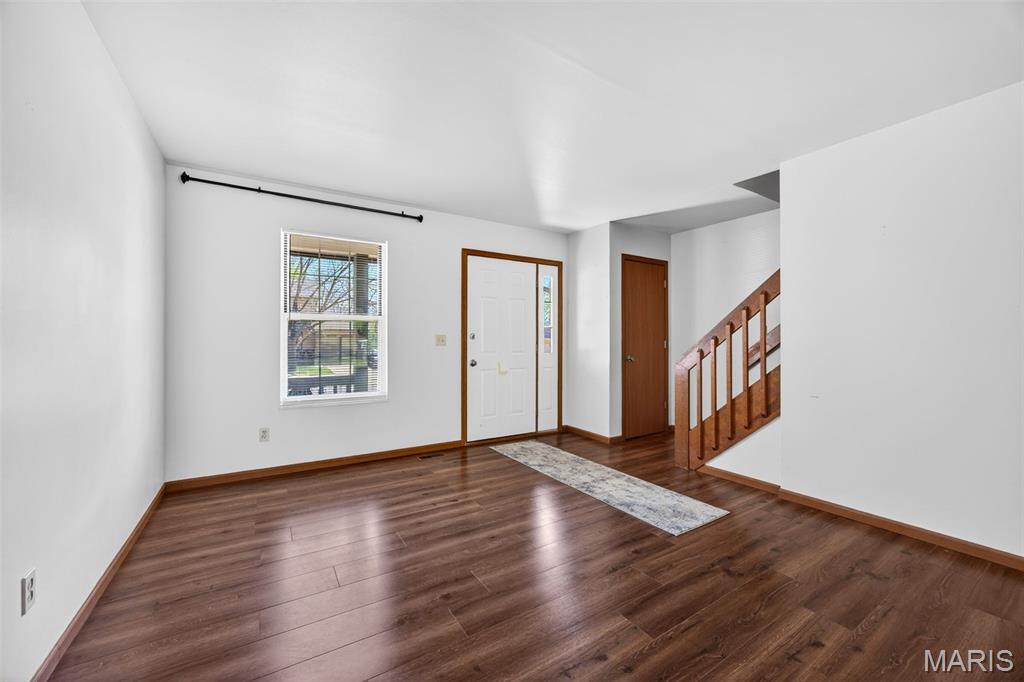 Cute townhouse with 2 generous sized bedrooms with walk in closets. 1 and 1/2 baths. 1 car garage. Large fenced yard. Partially finished lower level. Located on a quiet cul de sac. Excellent location close to 364 and across the street from Wapplehorst Park. All Electric Unit. Affordable utilities. Credit check. 2-year lease minimum. Some pets OK with non-refundable pet deposit. Restrictions apply. Agent/Owned