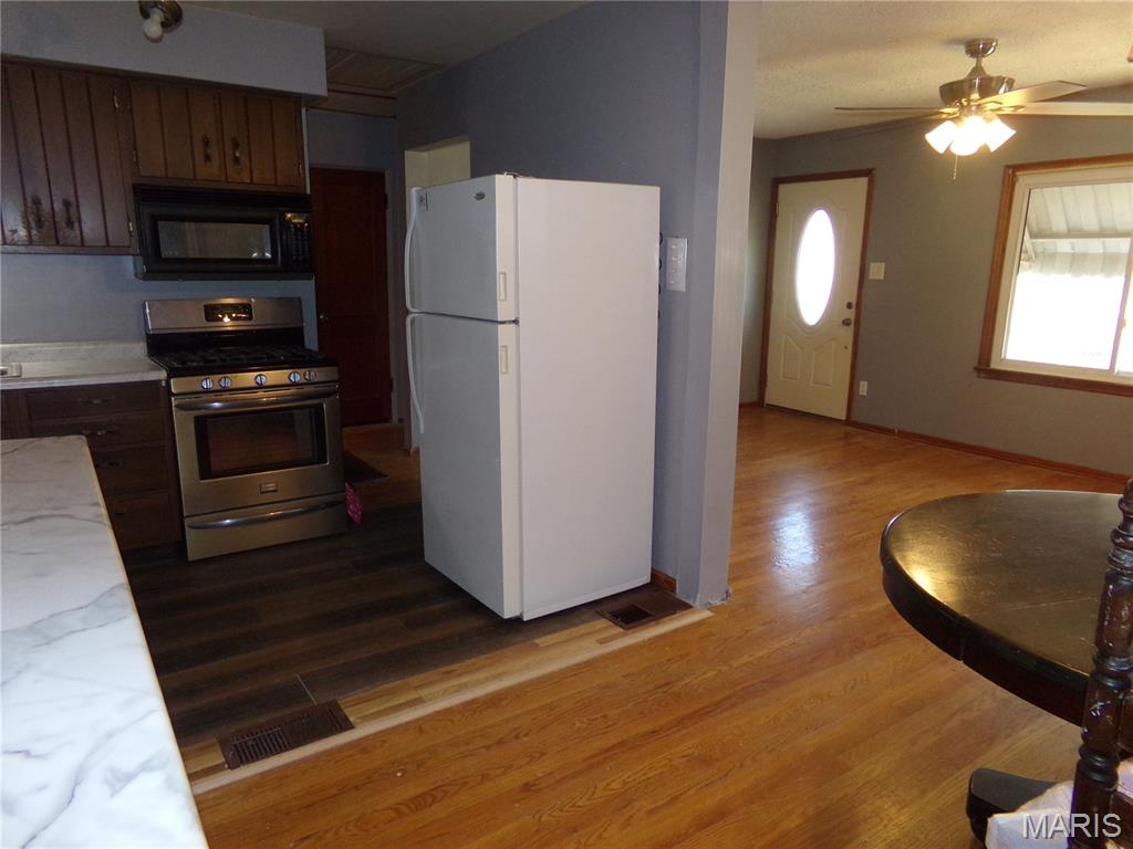 UPDATE! Seller has completed a beneficial, convenient re-configuration of the kitchen/dining room. Kitchen now opens to the dining/living room area for a great open-concept feeling. And a very cool feature in a folding snack bar that adds dining space! This home has multiple options. Are you looking for your first home, or maybe downsizing or an investment rental property? Home is currently, vacant , but, recently was rented at $1,250/month. Large living room leads to a dining area. Kitchen is just off of the dining area. Two bedrooms and a bath complete the main floor. Beautiful wood floors throughout most of the main floor. The basement will surprise you with a small kitchen area with microwave, a dining area, family room, bonus non-conforming sleeping area and a full bathroom! Unfinished area of the basement is where you will find the washer, dryer, HVAC and water heater. Plenty of storage as well. There's a one-car attached garage and an oversized one-car detached garage. Backyard is spacious with a wooden privacy fence! And a nice comfortable, covered deck greets you as you walk out of the backdoor from the kitchen! Location provides easy access to I-270. Call your favorite Real Estate Agent to schedule a tour of this home!!! Seller will provide $500 towards buyers closing costs.