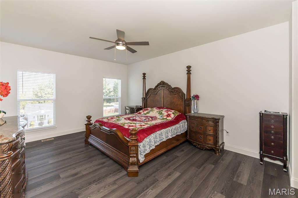 Don’t wait to build… this fabulous 2-year-old home is move-In ready now! An impressive brick & stone elevation highlights the exceptional curb appeal of this McBride-built 1.5 Sty. Covered porch entrance leads to 2-sty foyer, formal dining room and spectacular great room highlighted by dramatic wall of windows. Spacious chef's kitchen with 42'' gray cabinetry, quartz countertops, stainless steel appliances & 7' center island adjoins light-filled breakfast room. Main floor primary bedroom suite with 2 closets & luxury bath offers an appealing retreat. The 2nd floor extends the living quarters with 3 additional bedrooms, 1 with ensuite bath & 2 with Jack n' Jill bath. Lower Level entertainment space includes family room & recreation room with wet bar plus 5th & 6th bedrooms & full bath. Situated on a professionally landscaped lot with patio that spans the rear of the house & oversized 3-car garage. Award-winning Parkway School district.