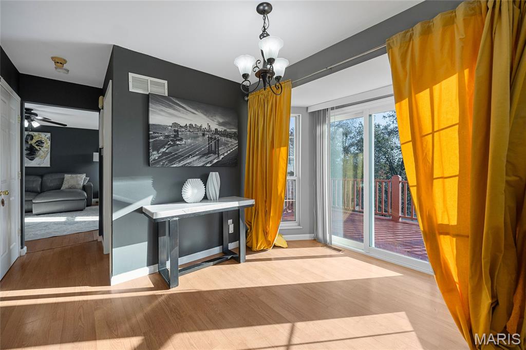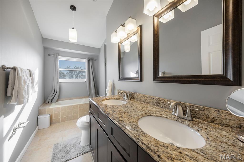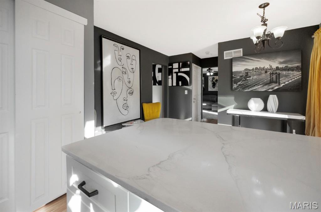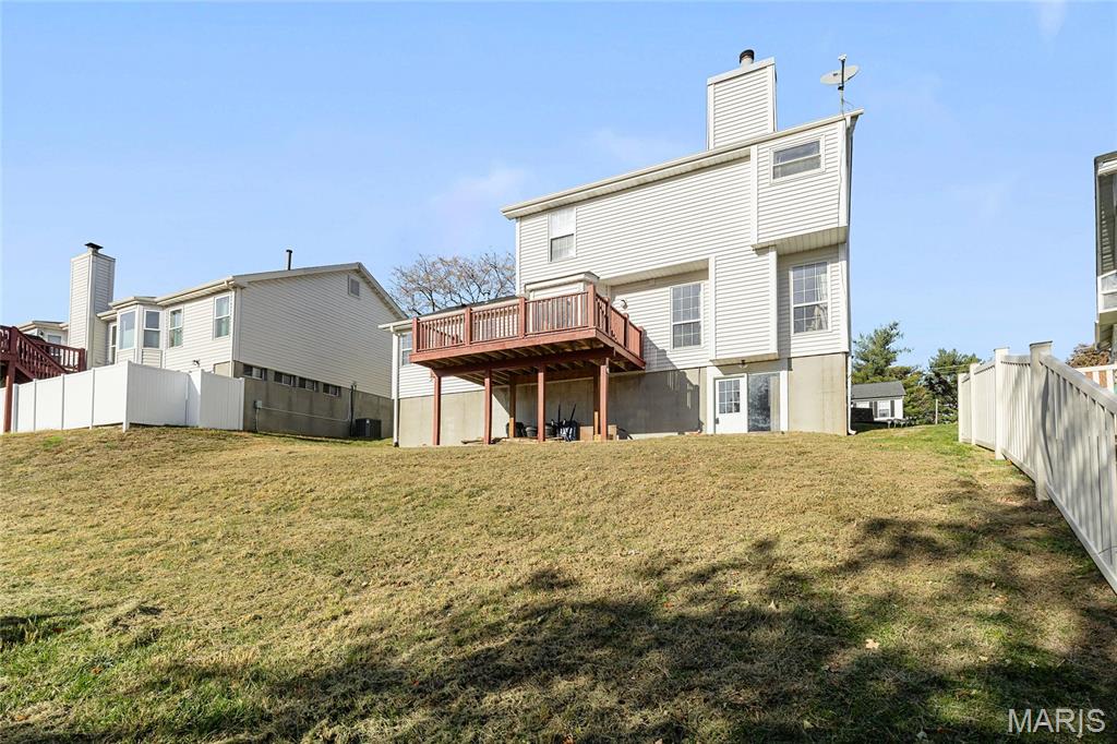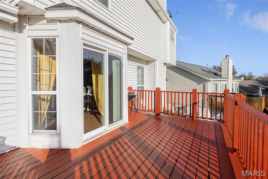 Beautifully Updated Polo Parc 2-Story with Walkout Lower Level! Welcome home to this lovely 3-bedroom, 3.5-bath residence offering nearly 2,700 sq ft of finished living space—just minutes from Creve Coeur Park! You’ll love the full brick front elevation, low-maintenance vinyl siding, and great curb appeal. Step inside to find a spacious living room with a brick-hearth wood-burning fireplace and a separate dining room—perfect for entertaining. A completely new kitchen with marble counters and backsplash, custom crown-molded cabinetry, stainless steel appliances, and a bright breakfast bay area with deck access. Upstairs, the primary suite boasts vaulted ceilings and a bath with dual sinks, soaking tub, and separate shower. The finished walkout lower level serves as a perfect in-law suite, complete with a private 4 bedroom, full bath, fully equipped kitchenette with refrigerator, oven, and dishwasher, and a large open living space ideal for relaxation or guests.The drywalled garage adds versatility for storage, hobbies, or comfort year round. Conveniently located near shopping, restaurants, and highways, with access to award-winning Parkway Schools and all the great amenities of Maryland Heights. All offers due Monday 11/24 7pm.