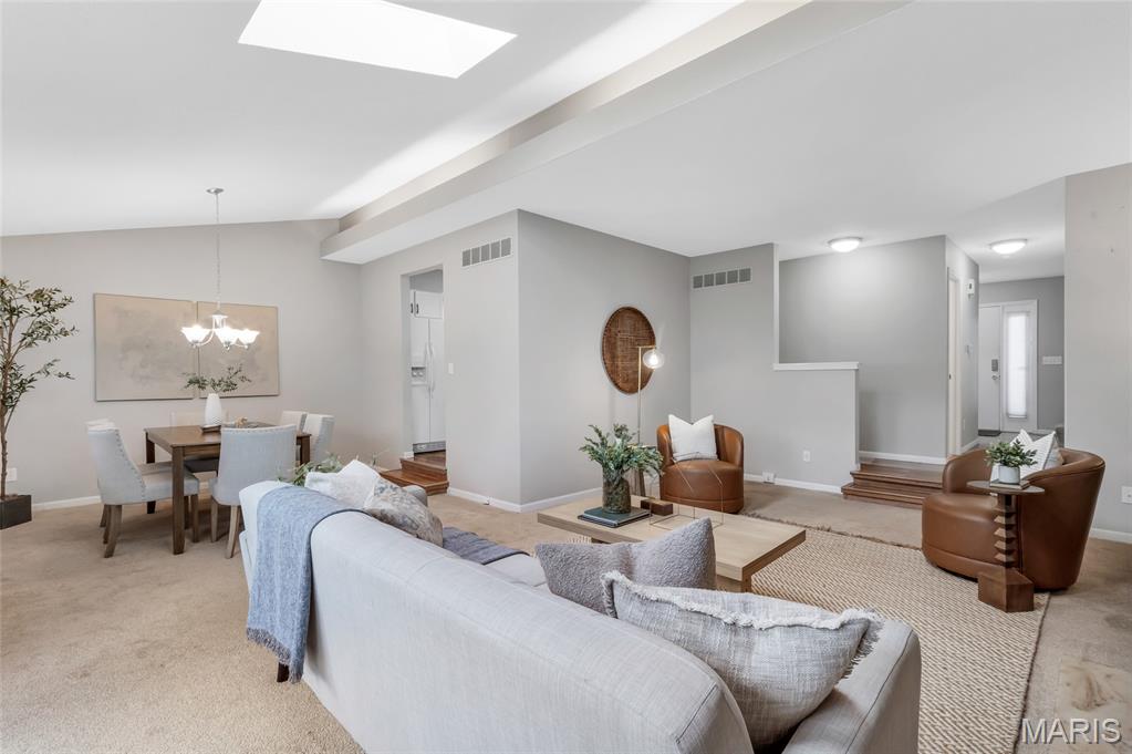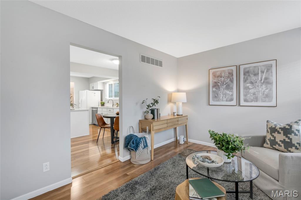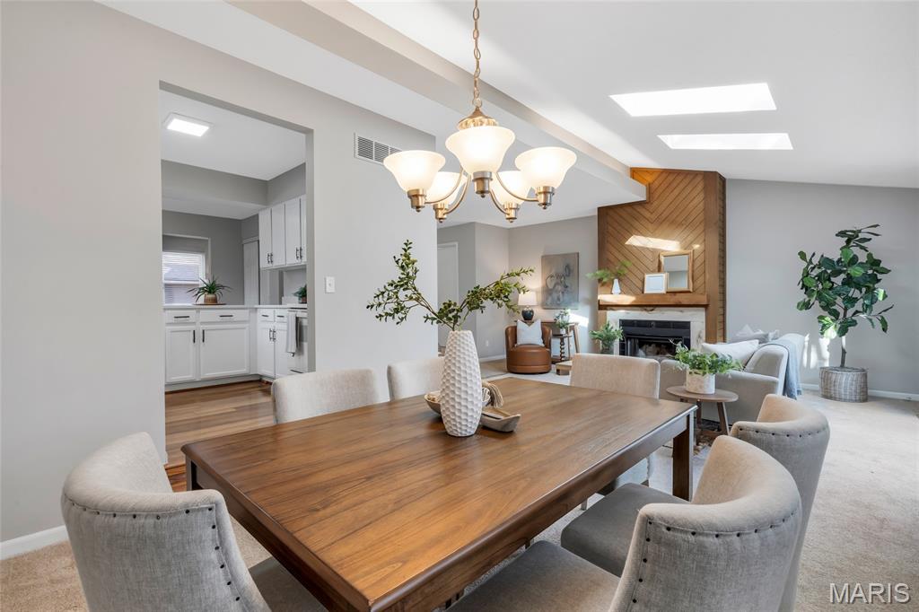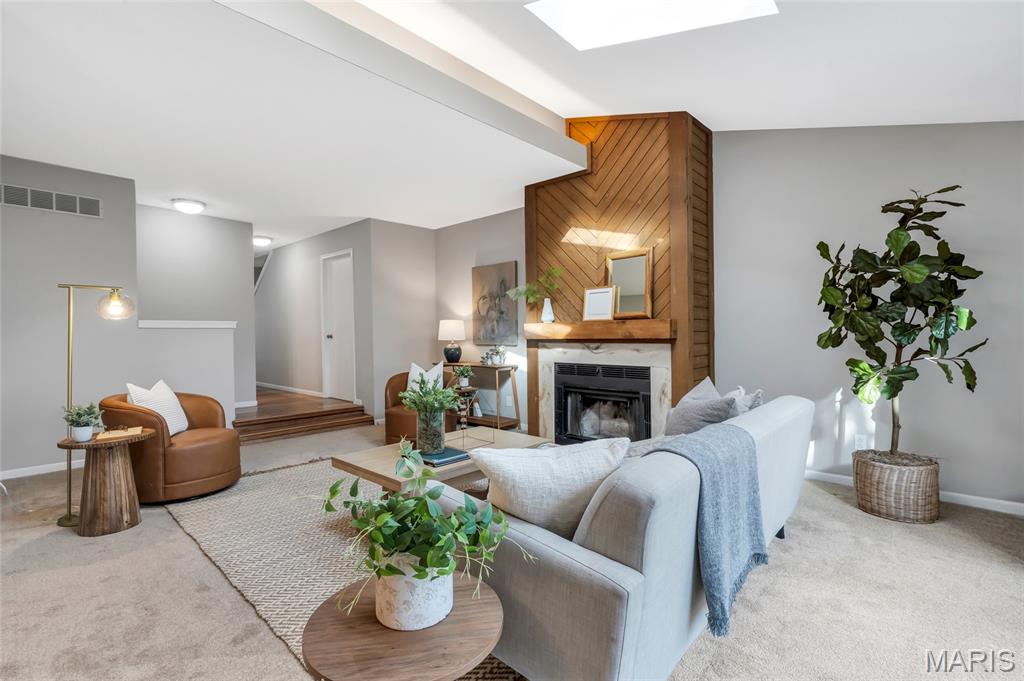 Set in the serene Royal Pines community and just minutes from Creve Coeur Park, this bright and airy end-unit townhouse blends refined updates with effortless, low-maintenance living. Natural light fills the vaulted main floor, highlighting newer thermal windows, fresh finishes, and a cozy wood-burning fireplace that anchors the space. The updated kitchen delivers clean, timeless style with white cabinetry, new quartz counters, and a comfortable breakfast room that flows seamlessly into the main living areas. With 3 bedrooms, 3.5 baths, and nearly 2,500 sq ft of well-designed space, this home offers both function and flexibility. The primary suite feels like a private retreat, complete with a walk-in closet, additional double closet, skylight, and refreshed ensuite bath. The finished lower level extends your living options with a spacious family room, dry bar area, bonus room, and full bath—ideal for hosting, working, or unwinding. Outside, your private patio provides a quiet place to relax, while the community’s amenities bring a resort-inspired feel to everyday life. Enjoy summers by the sparkling pool, challenge friends to pickleball or tennis, sharpen your short game on the putting greens, or unwind at the clubhouse—all surrounded by beautifully maintained green space. With a new roof, new HVAC, fresh paint and carpet, and an oversized 2-car garage, this move-in-ready home delivers the clean lines, modern comfort, and easy lifestyle today’s buyers want. Association fee includes water, sewer and some insurance. Maryland Heights pays for trash service. Come see why homes in Royal Pines go fast!