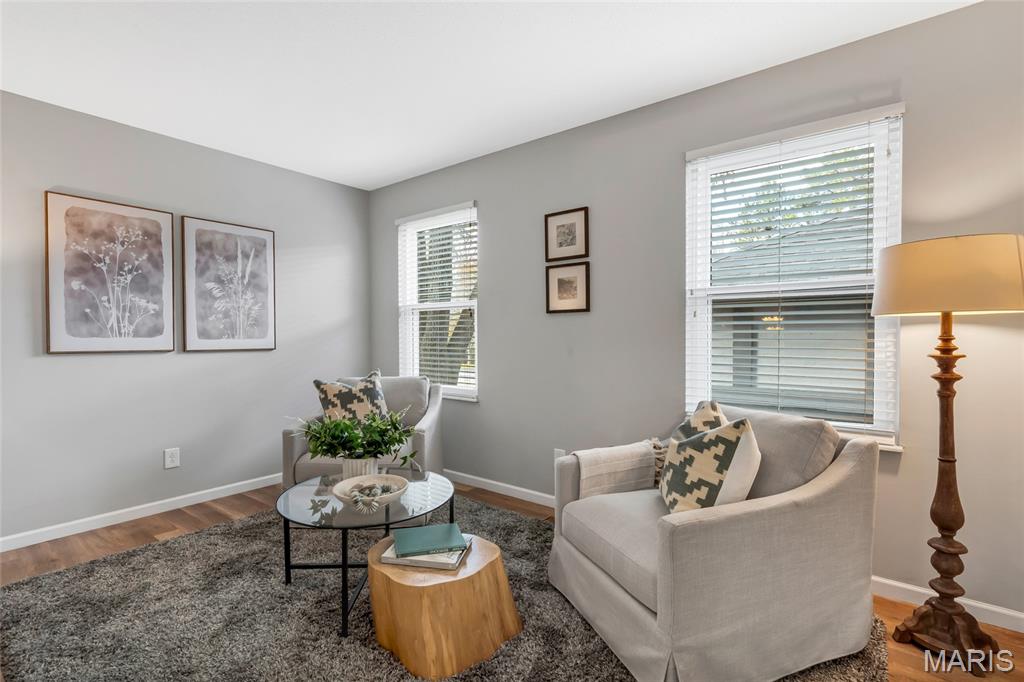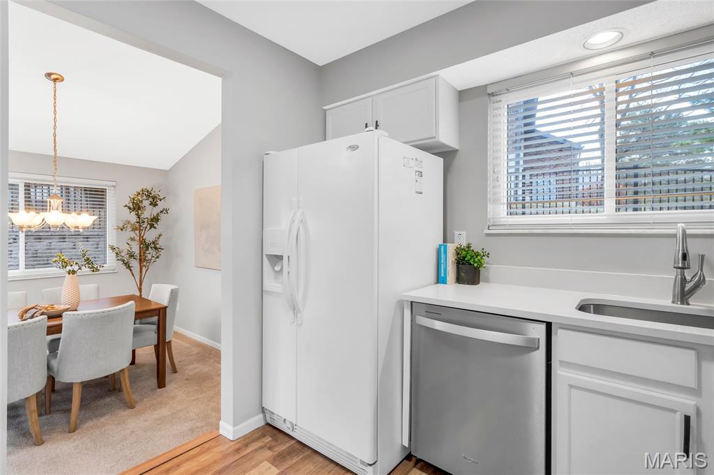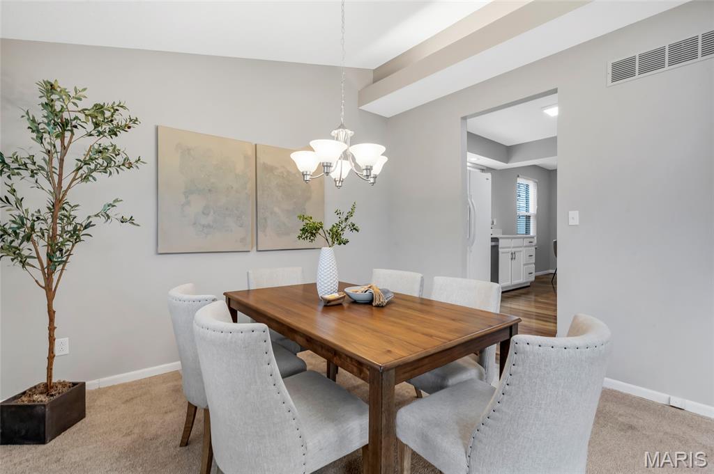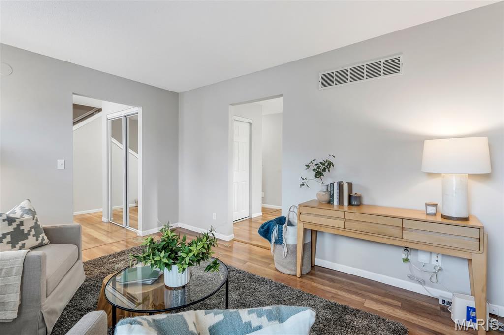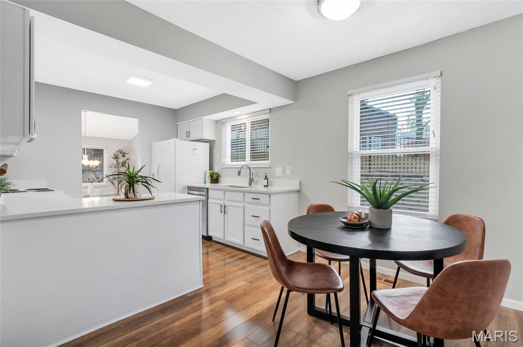 Set in the serene Royal Pines community and just minutes from Creve Coeur Park, this bright and airy end-unit townhouse blends refined updates with effortless, low-maintenance living. Natural light fills the vaulted main floor, highlighting newer thermal windows, fresh finishes, and a cozy wood-burning fireplace that anchors the space. The updated kitchen delivers clean, timeless style with white cabinetry, new quartz counters, and a comfortable breakfast room that flows seamlessly into the main living areas. With 3 bedrooms, 3.5 baths, and nearly 2,500 sq ft of well-designed space, this home offers both function and flexibility. The primary suite feels like a private retreat, complete with a walk-in closet, additional double closet, skylight, and refreshed ensuite bath. The finished lower level extends your living options with a spacious family room, dry bar area, bonus room, and full bath—ideal for hosting, working, or unwinding. Outside, your private patio provides a quiet place to relax, while the community’s amenities bring a resort-inspired feel to everyday life. Enjoy summers by the sparkling pool, challenge friends to pickleball or tennis, sharpen your short game on the putting greens, or unwind at the clubhouse—all surrounded by beautifully maintained green space. With a new roof, new HVAC, fresh paint and carpet, and an oversized 2-car garage, this move-in-ready home delivers the clean lines, modern comfort, and easy lifestyle today’s buyers want. Association fee includes water, sewer and some insurance. Maryland Heights pays for trash service. Come see why homes in Royal Pines go fast!