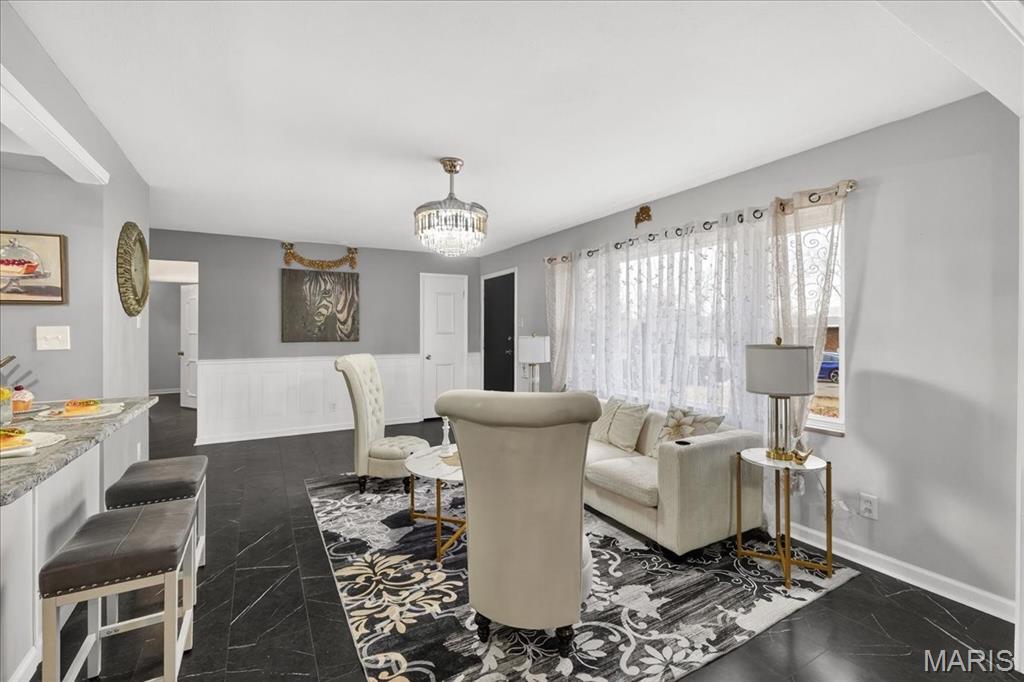 Do you need a 3 to 5 bedroom home, with 2 full bathrooms, a main floor family room, new kitchen with appliances, all furnish living room dining room and bedroom set, a full finish basement, all brick home with a two car garage? Here you go! Be the first to see before it's gone!! See all the benefits this property provides! Schedule showings with your real estate agent. Great location. East side of Hwy 367 close to school. Privet subdivision. Tree line streets. Lots of updates. Almost a new house. Compare to property in Florissant or Hazelwood. One look and your hooked!!. We got you! Pulled up and see all new 1331 Norchester Dr. A brand new driveway and sidewalk. Brand new garage door outside lights* walk into the house from inside the 2 car garage* Room for parking a total of 6 cars. Enter house from the garage to a Open stairwell to lower level. Brand new thermal windows thru-out* brand new 25+ year roof and gutters* you will feel safe in the all brick structure* Fence in back yard for pets to play. Trees for shade. Step inside and fall in love with the open floor plan* Beautiful living room, 3 bedrooms, open kitchen with all new appliances and granite counter top*All appliances will stay. Gas range, microwave, garbage disposal, stainless steel refrigerator and dishwasher. Plenty of room for cooking. main floor spacious family room*a bathroom to LIVE for* (no dyeing here) All new luxury vinyl flooring, light gray paint, wainscot paneling, beautiful lighting fixtures with fans installed*. You have to see the basement for yourself* Extra room for sleeping, office etc. New sump pump around entire basement. 6 panel doors in lower level. New carpeting thru-out basement. Extra kitchen area with refrigerator and microwave. Great area for watching all kinds of sports with many friends. Amazing!!! Ladies! We have a special bonus make up room for you!! Could be an extra bedroom. The basement consist of a huge recreational room, extra full bathroom, Extra room for sleeping, a ladies make up room and a enclosed laundry room. Notice the care and love put into making this home for you to live care free. Need to move in right away!! We can make it happen. Got questions? Call us today!