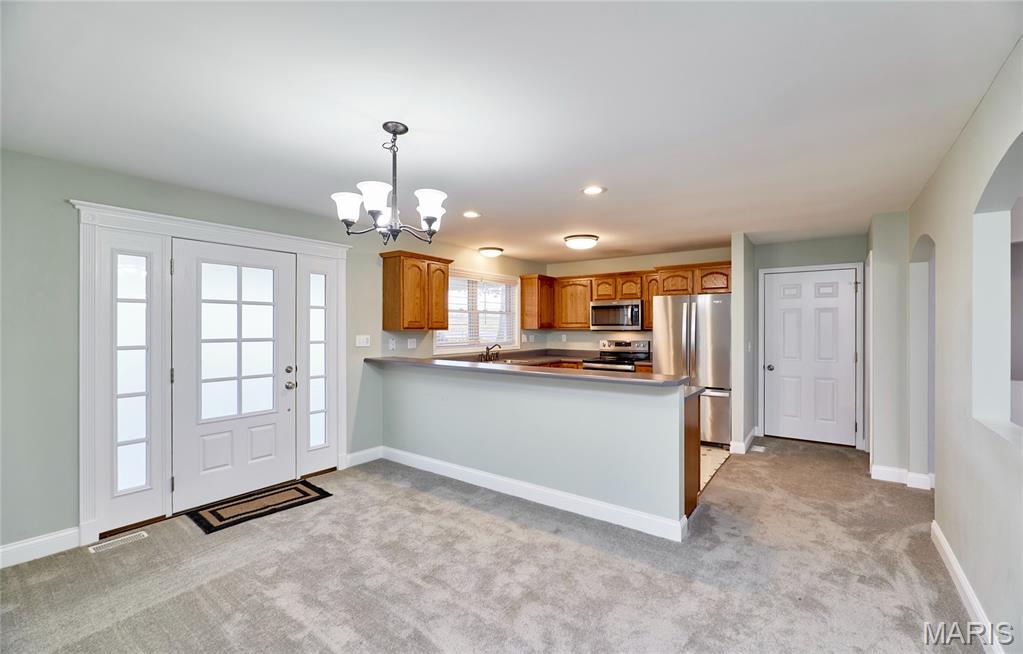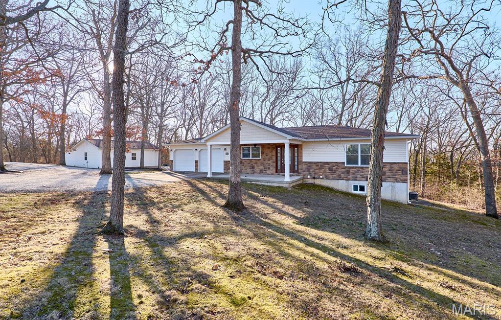 Welcome to this spacious 2 bed, 1 bath home built in 1983, situated on 7.55 mostly wooded acres in a quiet setting within the highly sought after Campbellton School District. The tasteful kitchen features oak cabinetry, stainless appliances, a good-sized breakfast bar, and a cozy dining area. The comfortable living room offers lots of natural light through the sizeable windows and has a door leading out to the deck. The home offers many recent upgrades within the last 1–5 years, including new carpet throughout most of the house, new trim, newer windows and doors, all newer stainless appliances, newer hot water heater and furnace, rock siding on the front of the home, and roof replacement on both the house and detached garage. Enjoy the covered front porch addition and a new large wraparound composite back deck with aluminum railing. The large walkout basement is ready for expansion, with space to add another bedroom in place of the current bar area if desired. There is also plumbing roughed in for a second full bath. A big storage room with ample shelving provides lots of additional storage as well. Amenities include an oversized attached two-car garage measuring 23' x 26'10", a detached 24'8" x 30'8" garage with an attached 8' x 13' walk-in cooler area (cooling unit not included), and an open-faced 12' x 12' shed. The home is surrounded by mature oak trees offering shade and privacy during those warm summer months. Additionally, there are abundant signs of wildlife throughout the timber offering tons of recreational potential. Don't miss your opportunity to check out this well-kept and inviting home just 15 minutes from Washington and New Haven.