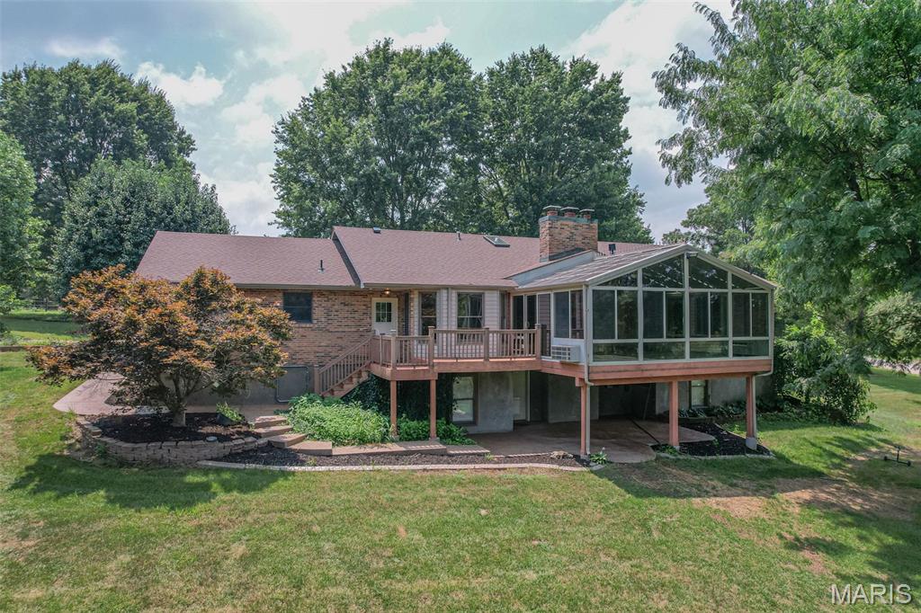*CHECK OUT THIS NEW PRICE!” What a package! 11 acres- Full brick ranch home with custom millwork throughout. Glass 4 Seasons sunroom with thermostat controlled heated floors, fireplace and amazing views of the property. Front lawn irrigated, extensive landscaping including a waterfall into your private pond with covered dock - awesome! Property also boasts a 60 x 40 insulated outbuilding with electric, water, oversized doors and concrete floors, lawn shed, utility shed, trails through the woods, wet weather creek, black berry & elderberry orchard! So much to mention - this is a must see! Must remember the beautiful 3-4 bedroom custom home where so much quality abounds, all wood trim and solid wood doors, spacious rooms, great lower level office and rec room, main floor laundry and best yet- 2023 installed solar panels are paid in full and you reap the benefits of mainly approx. $0 - $15 monthly electric bills!!! Words cannot describe all this package offers- please call to see for yourself!