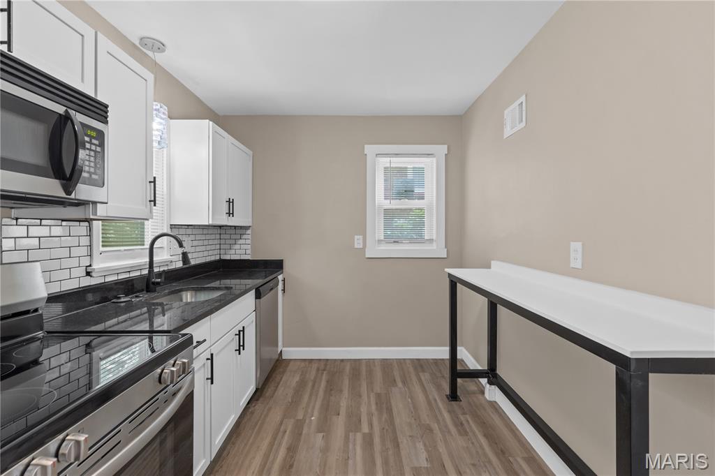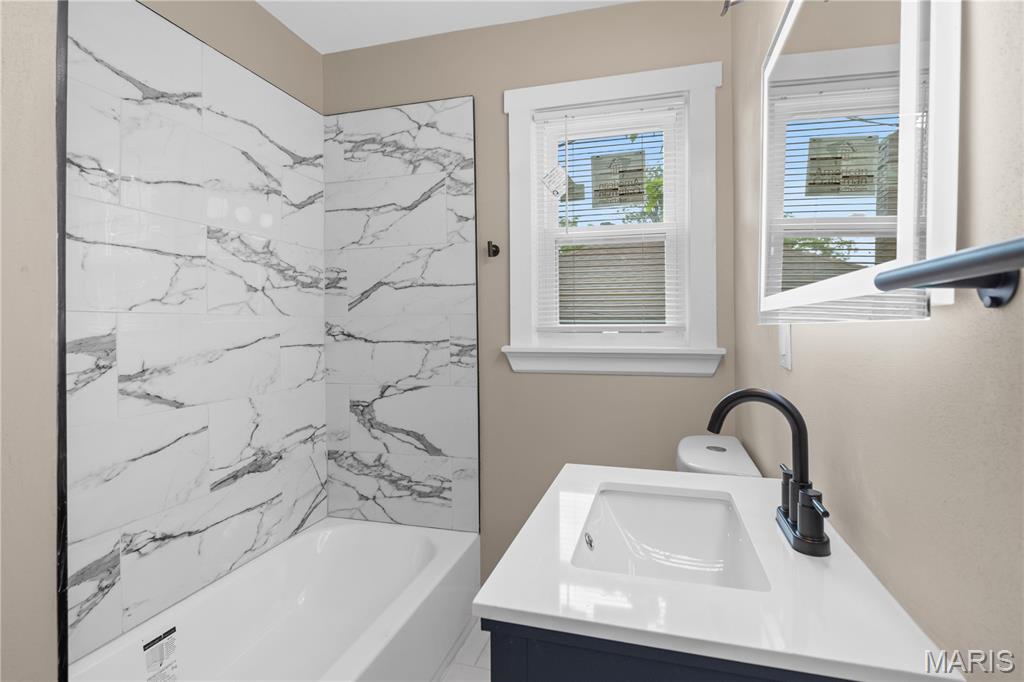 Fully renovated & move-in ready! Step inside to a stunning transformation with all new mechanicals, windows, doors, and luxury vinyl plank flooring. The kitchen is a showstopper with custom cabinets, 3cm granite countertops, undermount sink, and a custom breakfast bar perfect for entertaining. The bathroom feels like a spa retreat with a light-up LED mirror, modern fixtures, new tub, and sleek finishes. Enjoy the glow of new lighting throughout, including recessed lights in the living room. Outside, a brand-new porch with fresh railing and planter adds curb appeal, while matte black hardware and stylish details tie the home together. Every inch has been thoughtfully upgraded — just move in and enjoy!