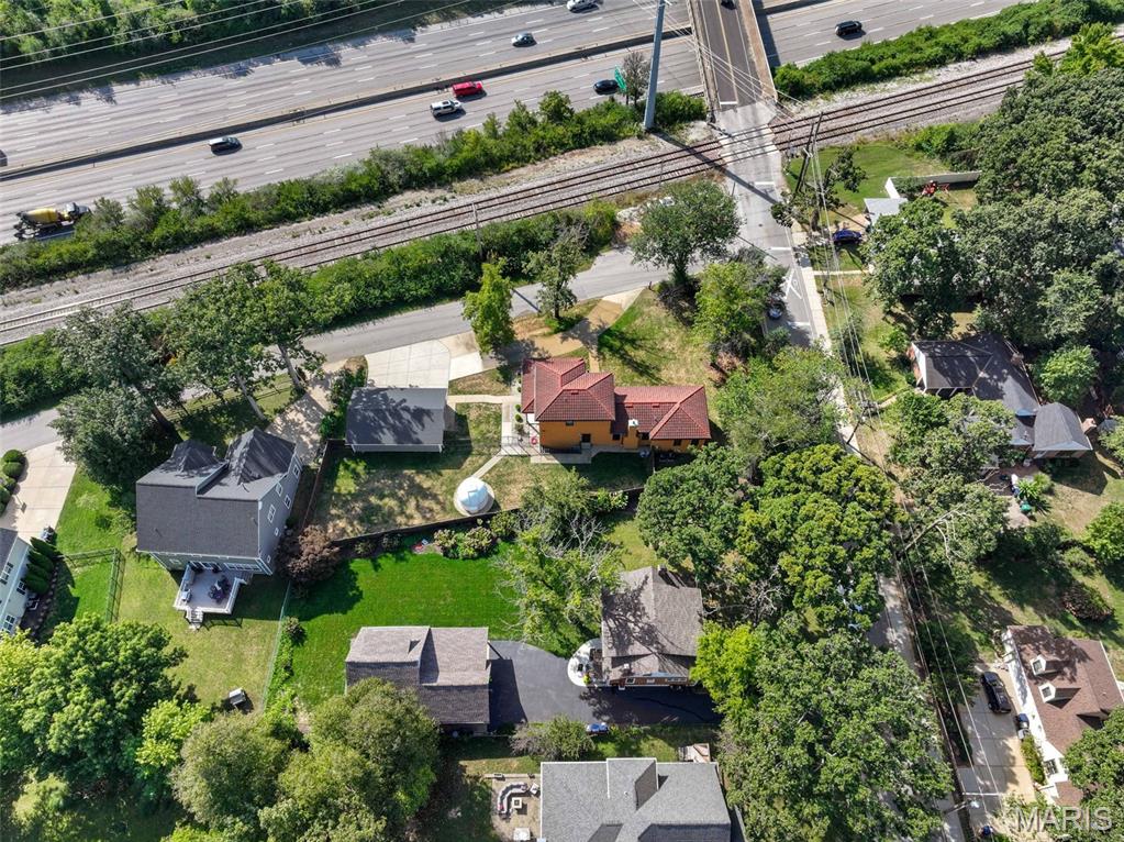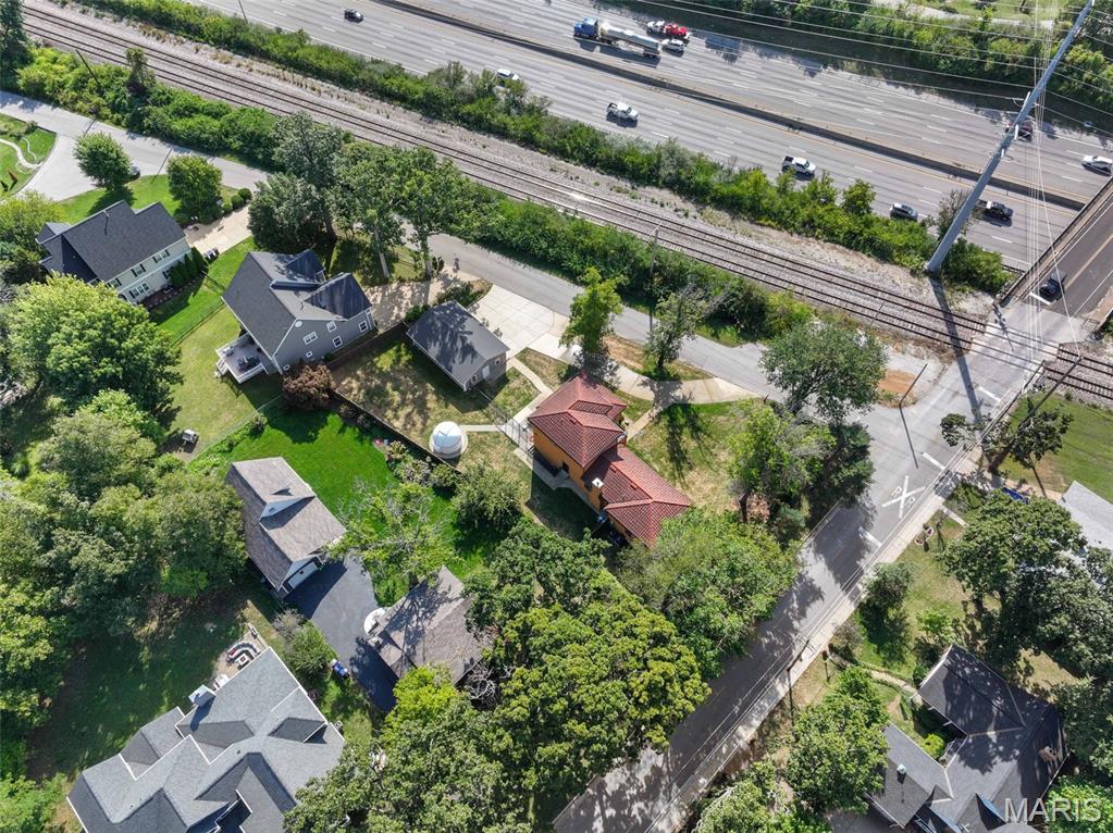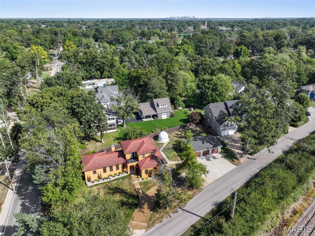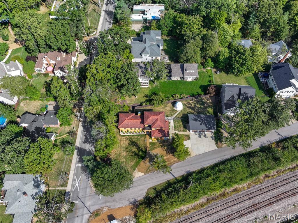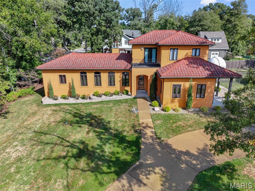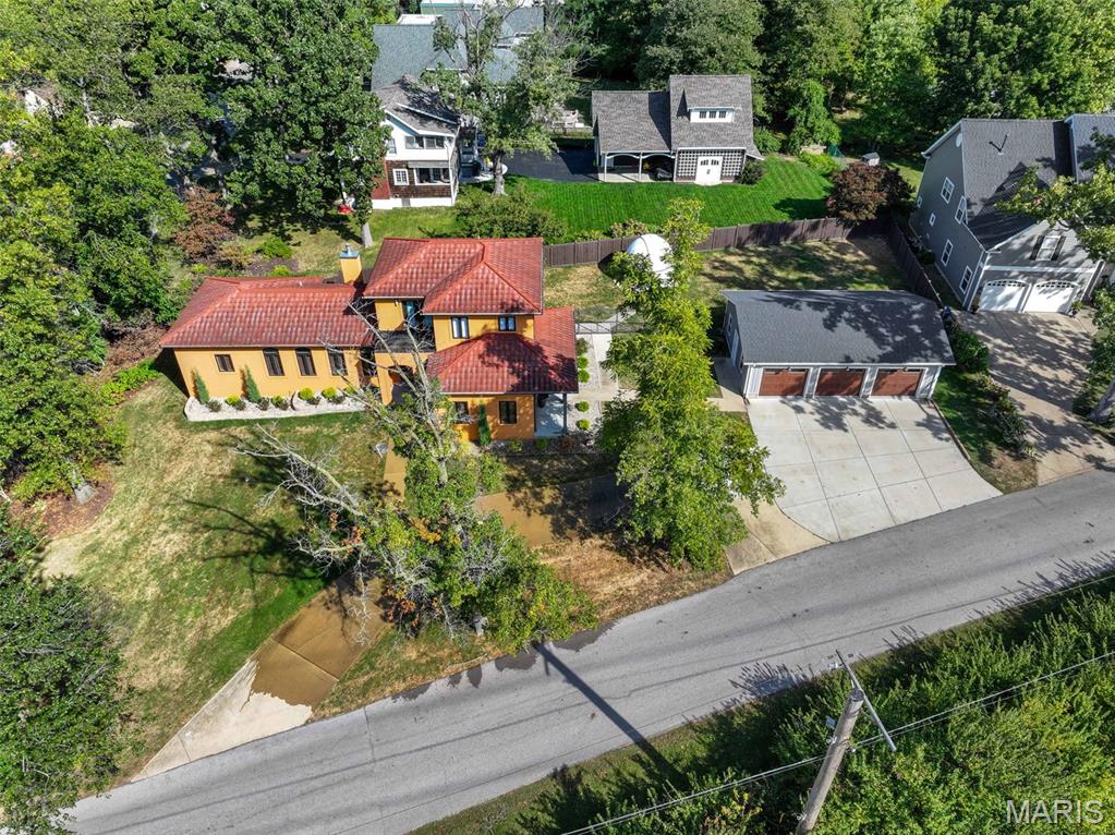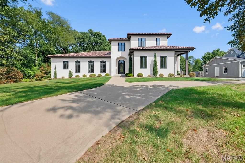 Welcome to this meticulously maintained Spanish-style home featuring timeless character and modern luxury in Kirkwood Schools. The main level offers a spacious main level primary suite, a warm family room with gas fireplace, and a chef’s kitchen with custom cabinetry, concrete counters, Wolf gas stove/oven, commercial-grade Frigidaire side-by-side refrigerator, all new stainless steel appliances, & custom Saltillo tile. Special-order Anderson casement windows with a crank-out feature are showcased throughout the home, enhancing both style and function. Upstairs, two bedrooms with walk-in closets share a fully renovated luxurious full bath. The expansive finished basement provides endless opportunities for recreation, entertaining, or fitness. With a laundry room and half bath on the main level, this home blends elegance, functionality, and lasting quality. The backyard is fully fenced with a concrete pad with electricity ready for a hot tub or gazebo. Ample parking featuring a detached oversized 3-car garage with polyaspartic flooring and a transferrable 15-year warranty and circle driveway. Don’t let the nearby train tracks keep you from making this beautiful home yours! The solid concrete walls offer excellent sound insulation, creating a peaceful and quiet interior environment while you enjoy all the comfort and charm this home has to offer. Welcome home!