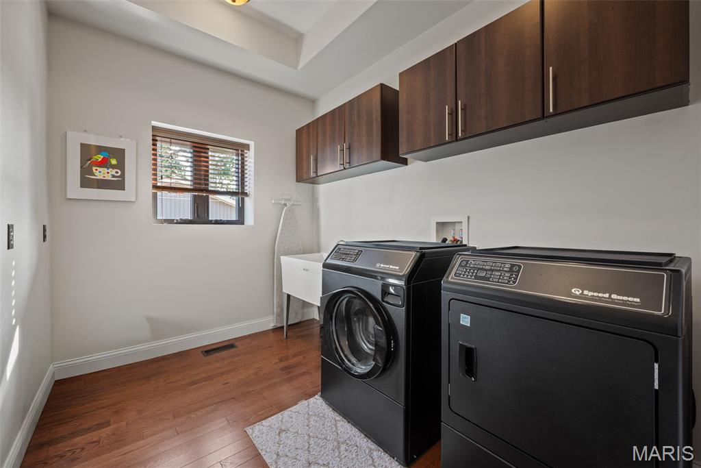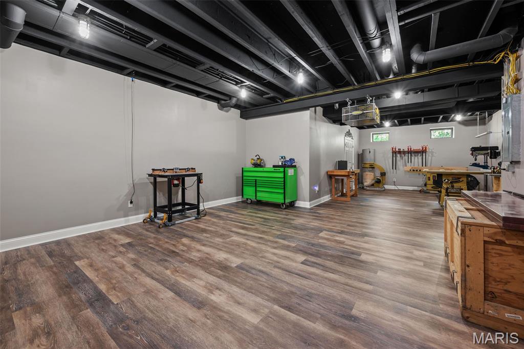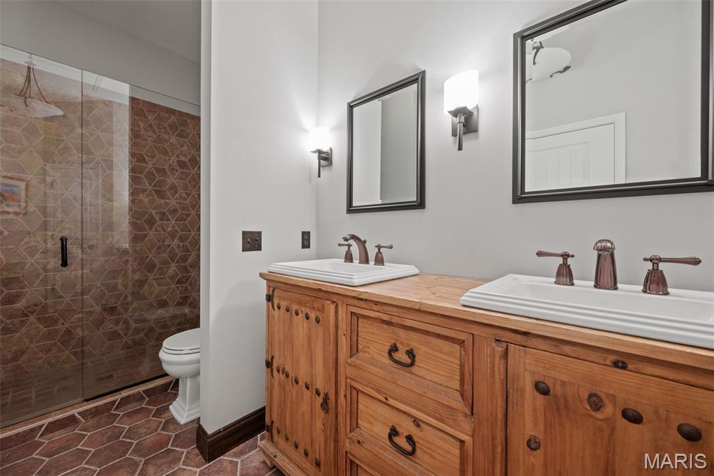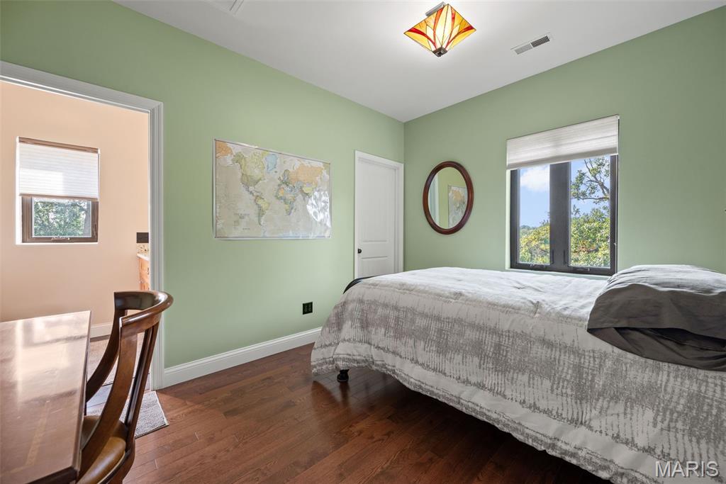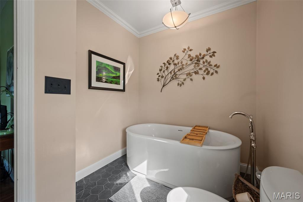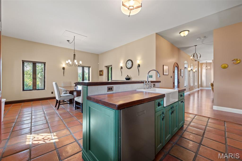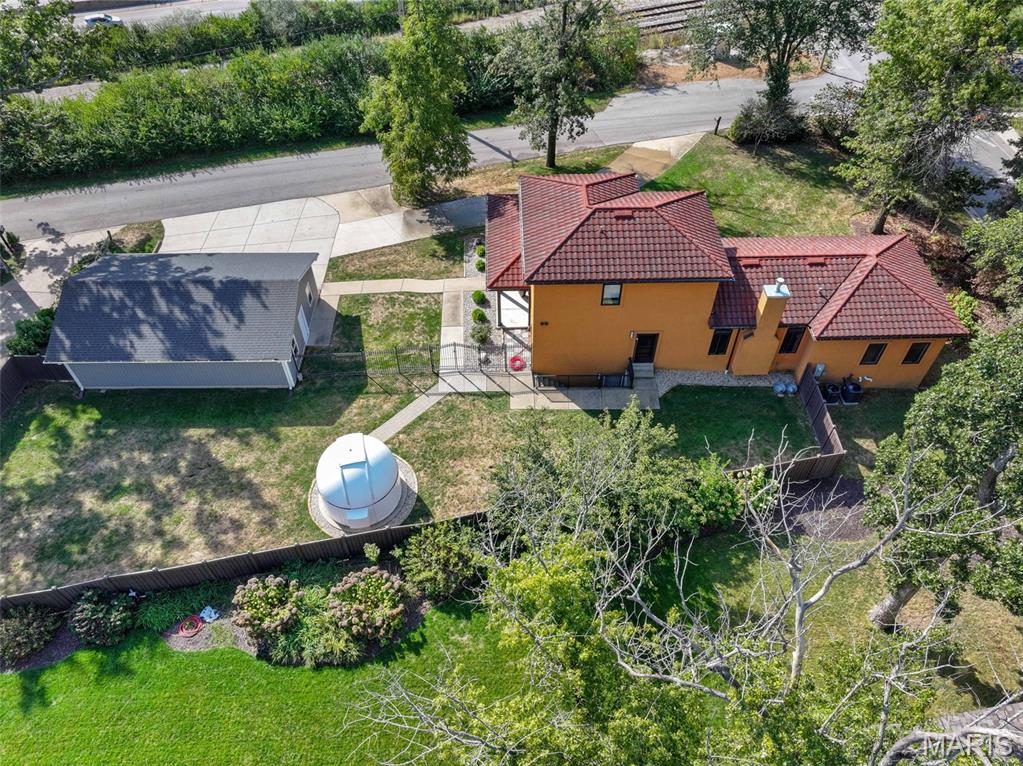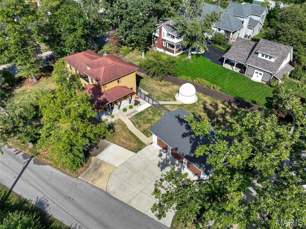 Welcome to this meticulously maintained Spanish-style home featuring timeless character and modern luxury in Kirkwood Schools. The main level offers a spacious main level primary suite, a warm family room with gas fireplace, and a chef’s kitchen with custom cabinetry, concrete counters, Wolf gas stove/oven, commercial-grade Frigidaire side-by-side refrigerator, all new stainless steel appliances, & custom Saltillo tile. Special-order Anderson casement windows with a crank-out feature are showcased throughout the home, enhancing both style and function. Upstairs, two bedrooms with walk-in closets share a fully renovated luxurious full bath. The expansive finished basement provides endless opportunities for recreation, entertaining, or fitness. With a laundry room and half bath on the main level, this home blends elegance, functionality, and lasting quality. The backyard is fully fenced with a concrete pad with electricity ready for a hot tub or gazebo. Ample parking featuring a detached oversized 3-car garage with polyaspartic flooring and a transferrable 15-year warranty and circle driveway. Don’t let the nearby train tracks keep you from making this beautiful home yours! The solid concrete walls offer excellent sound insulation, creating a peaceful and quiet interior environment while you enjoy all the comfort and charm this home has to offer. Welcome home!