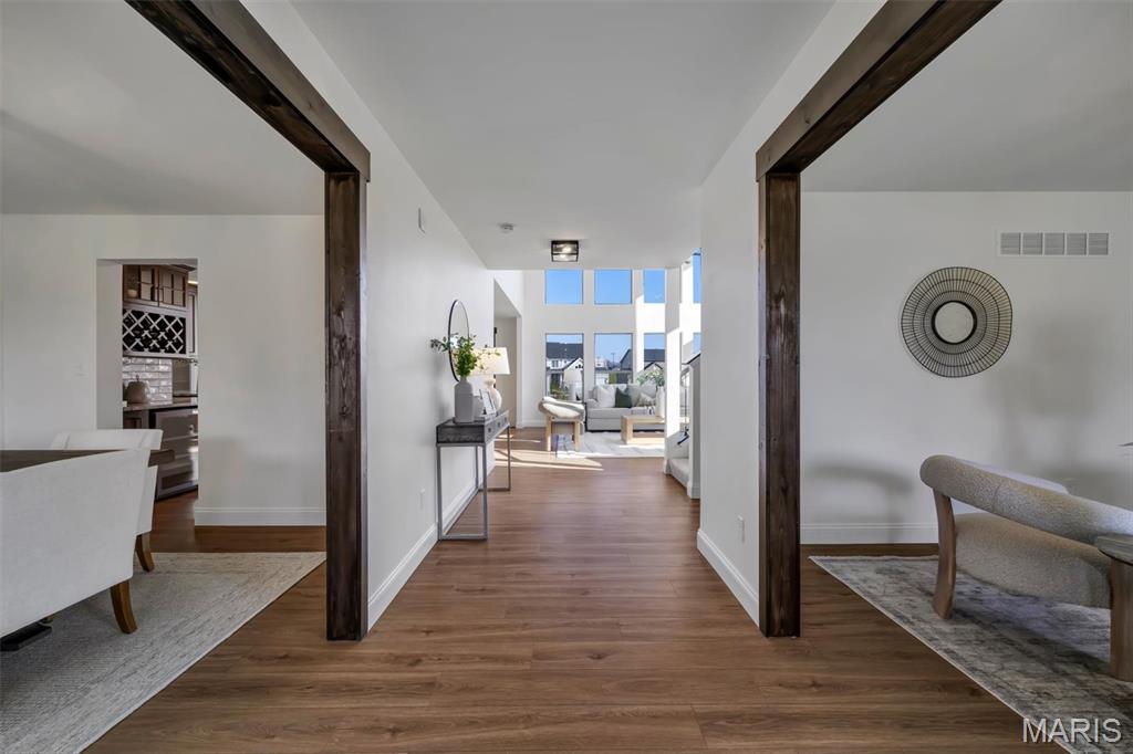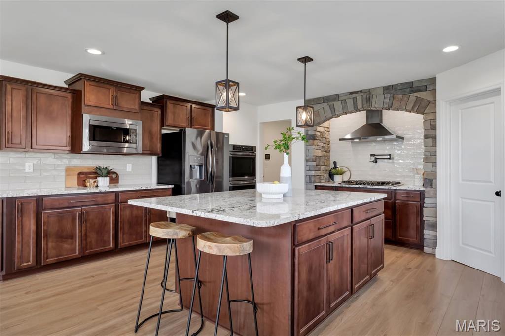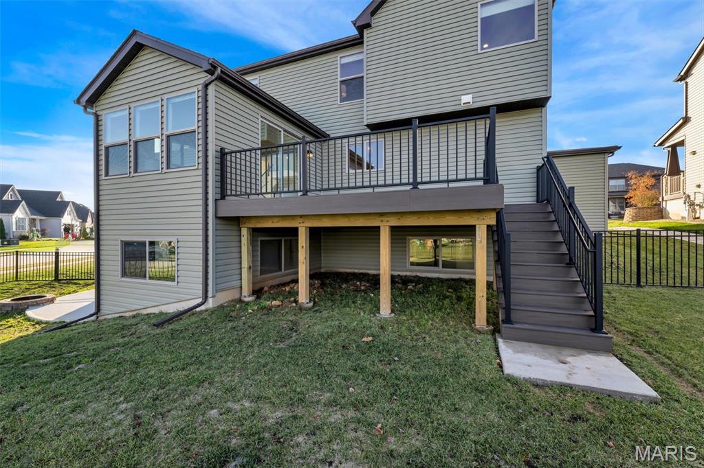 Welcome to your dream home nestled in the Streets of Caledonia subdivision! This exquisite 5-bed, 4.5-bath Lombardo home which was recently remodeled is the epitome of modern living, showcasing impeccable craftsmanship & luxurious finishes throughout. As you enter, you'll will find a separate dining room, office & soaring great room. The gourmet kitchen features granite countertops, beautiful stonework, soft-close custom cabinetry & impressive butler’s pantry along with a spacious walk-in pantry, perfect for your entertaining needs. Off the kitchen is the inviting sunroom which is bathed in natural light & opens up to a brand-new deck (Voyager dekorators deck boards), offering a seamless transition to outdoor living. There are 4 bedrooms upstairs including a primary suite with custom tile shower. Let's not forget the $30,000 worth of flooring including, laminate flooring & carpet with an 8lb pad. Finished basement adds even more value, featuring a 5th bedroom, theater room, full bath & recreation area. Large corner lot provides ample space to play in the private, fenced-in backyard with paved patio and fire pit. With superb community amenities, including a sparkling pool, gym, playground, bocce ball, pickle ball, & walking trails this neighborhood caters to anyone seeking an active lifestyle. Don’t miss this incredible opportunity to experience the best of suburban living in a community that feels like home! Close to shopping, dining & sought-after Wentzville Schools!